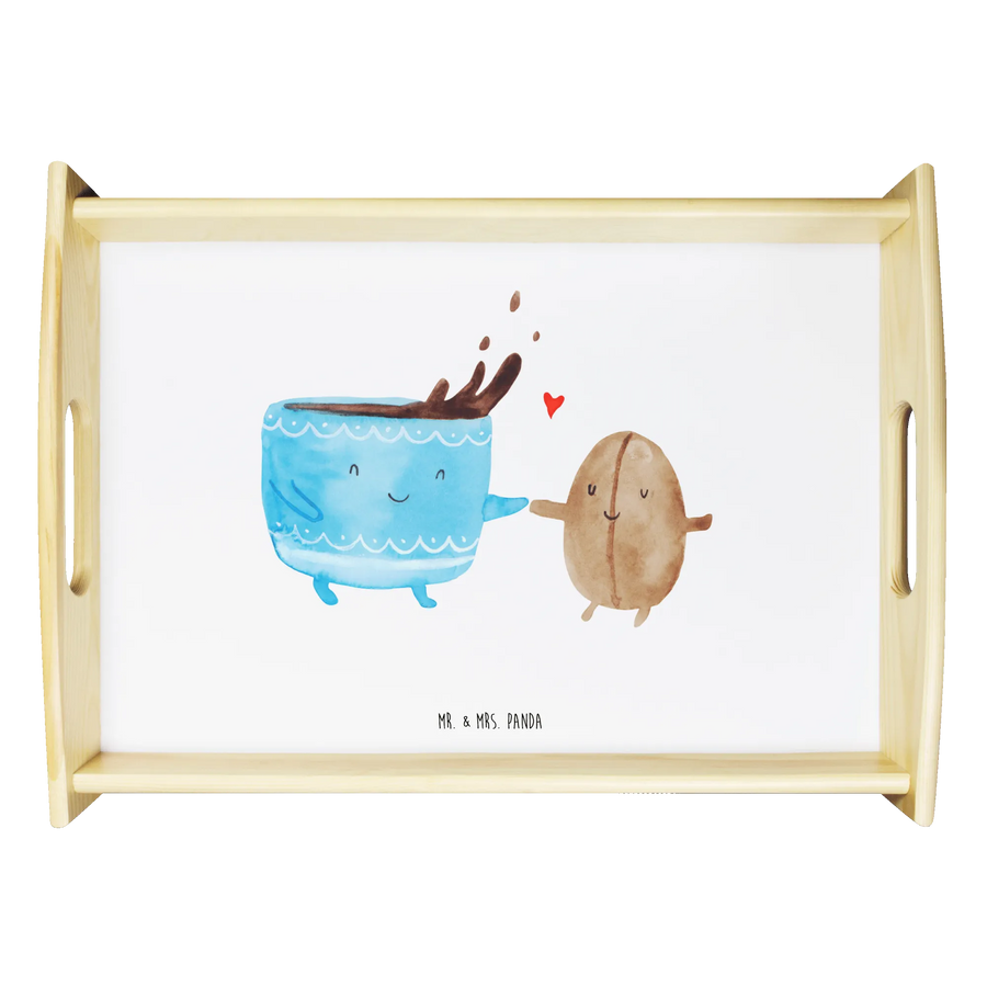 Das einzigartige Serviertablett von Mr. & Mrs. Panda wird dein Frühstücksbuffet zum Erlebnis machen! Mit seinen großzügigen Maßen von 480 mm x 480 mm x 65 mm und einem Gewicht von 925 g ist es die perfekte Kombination aus Funktionalität und Stil. Aus hochwertigem, lasiertem Echtholz gefertigt, verzückt das Tablett mit einem strahlenden Druck, der für gute Laune sorgt. Ob im Bett oder auf dem Sofa, die seitlichen Griffmulden garantieren ein angenehmes Handling. Die spezielle Anti-Rutsch Beschichtung sorgt dafür, dass alles sicher an seinem Platz bleibt. Dank der kratzfesten Oberfläche ist das Tablett sehr pflegeleicht – einfach mit einem feuchten Tuch und etwas Spülmittel abwischen. Bitte nicht einweichen! Denke daran, dass die Anfertigung wegen der hohen Qualität etwas Zeit in Anspruch nimmt.