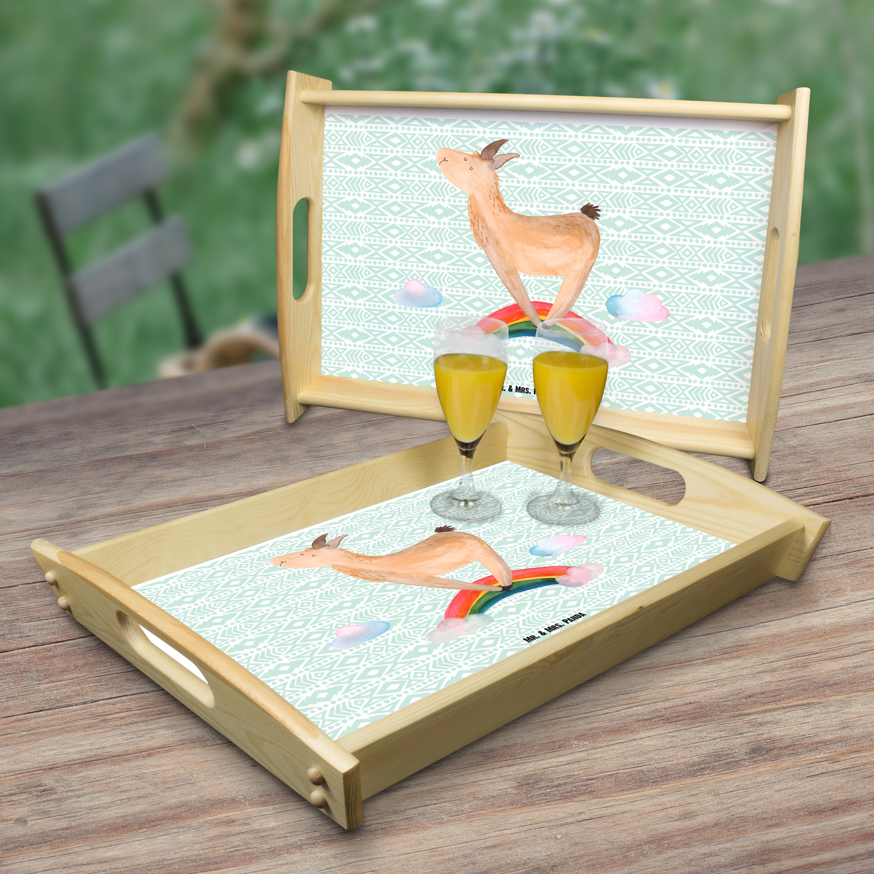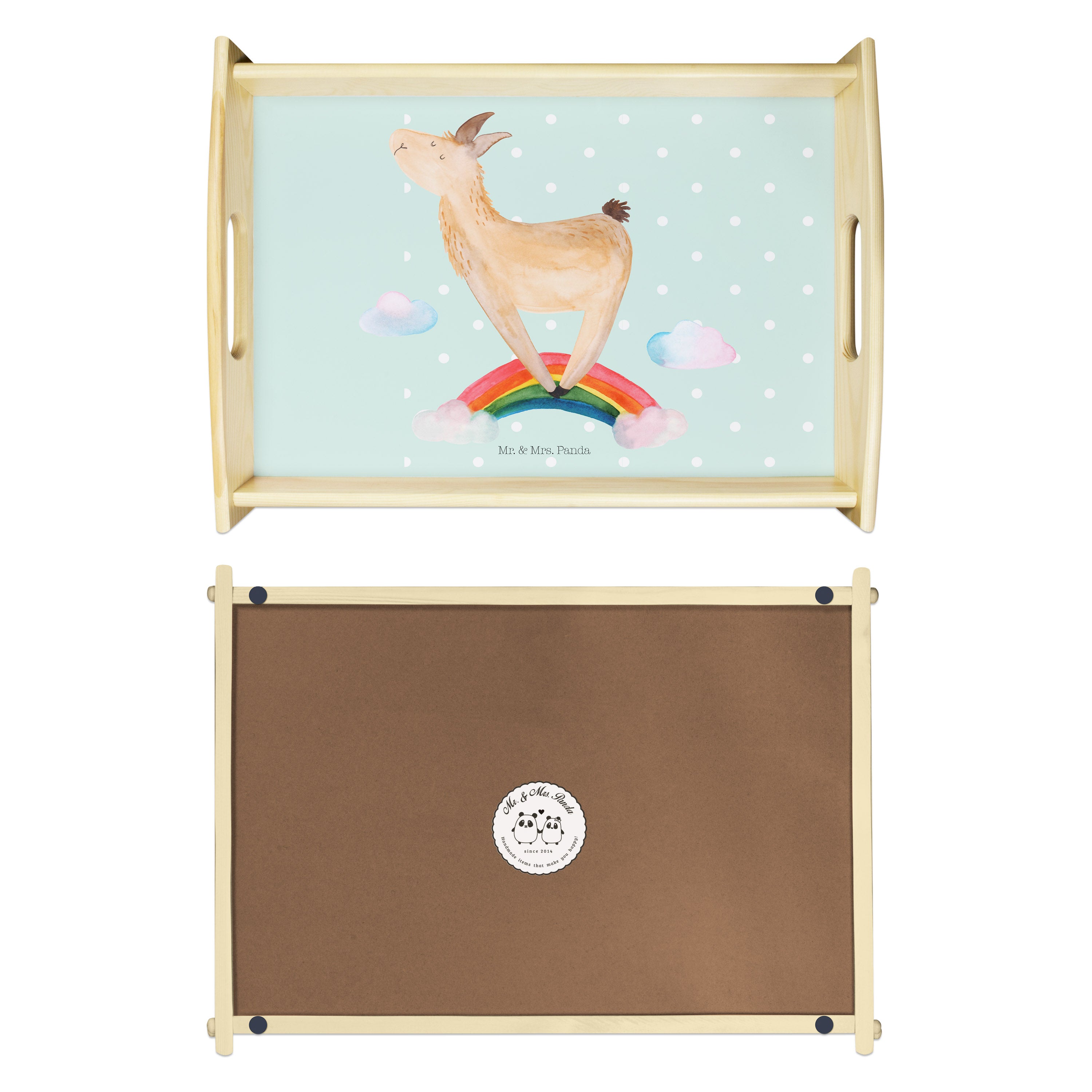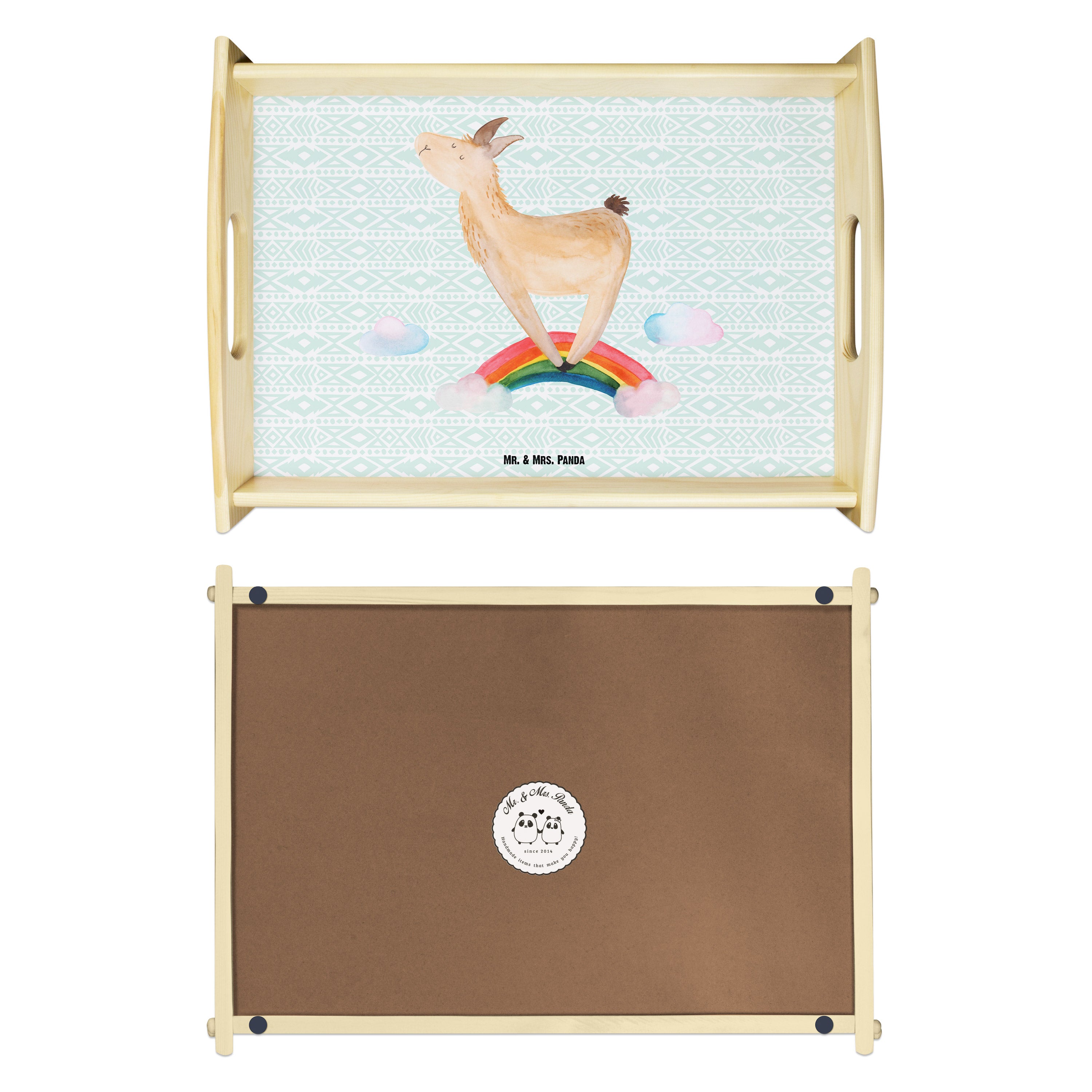 Serviertablett Lama Regenbogen - mit Spruch - Aztekenblau