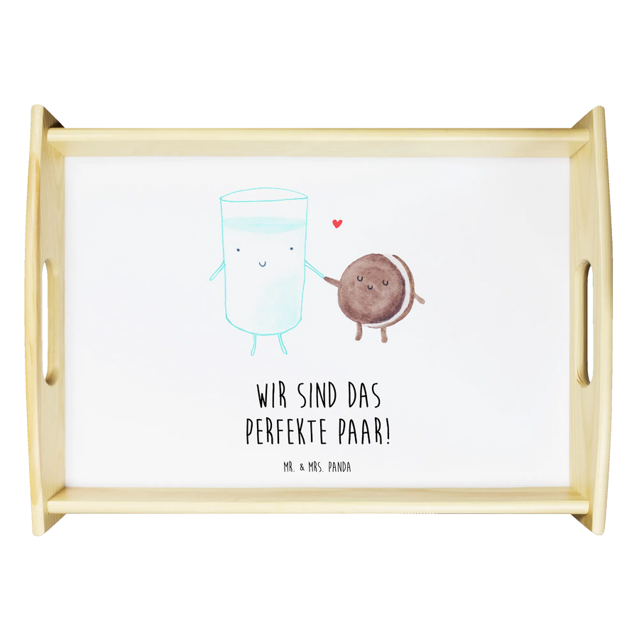 Dieses liebevolle Serviertablett ist ein echter Gute-Laune-Bringer. Das handgezeichnete Motiv zeigt ein Glas Milch und einen Keks, die Händchen halten und sofort für ein Lächeln sorgen. Ideal als Frühstückstablett, Kaffeetablett oder Betttablett – ein Herzstück für gemütliche Momente.