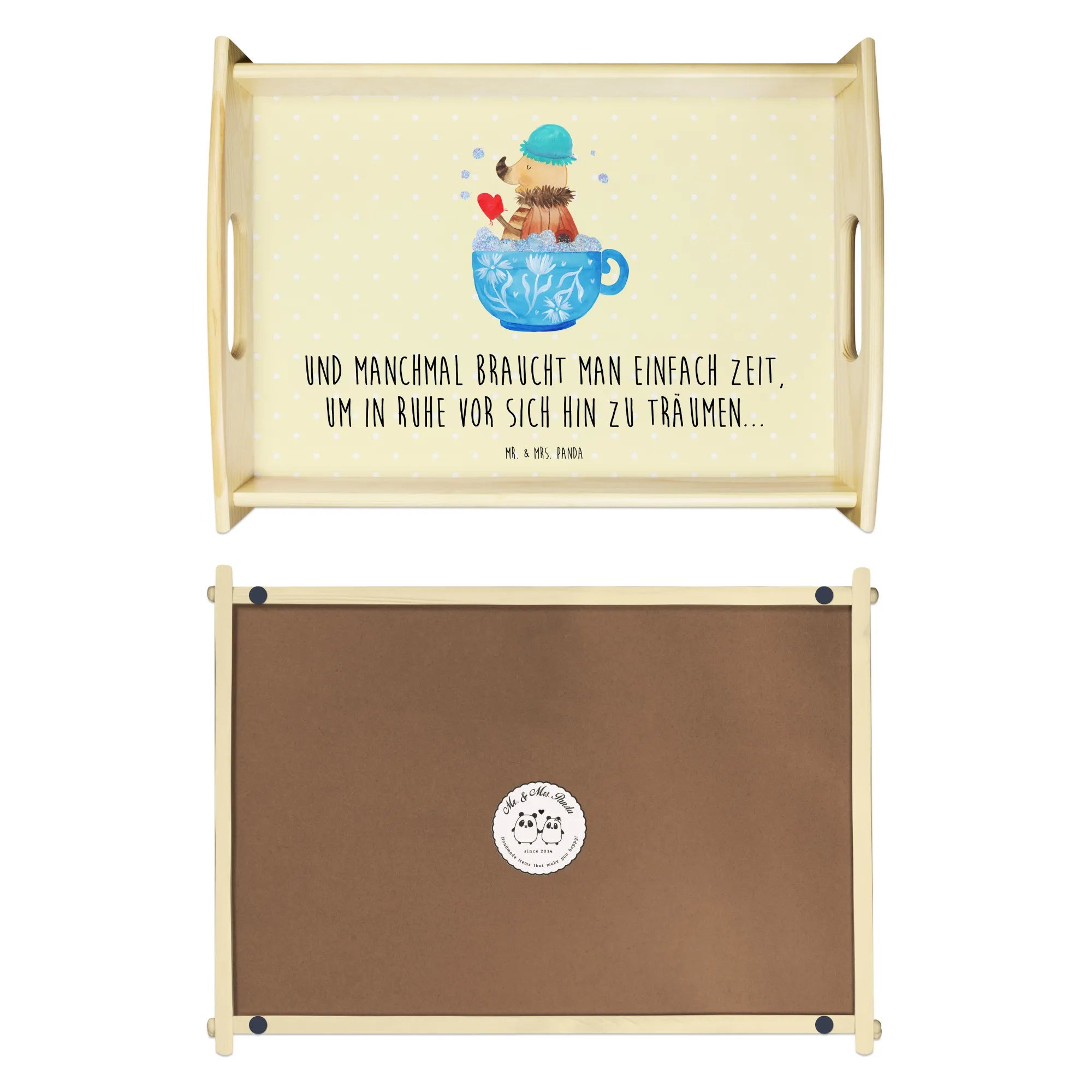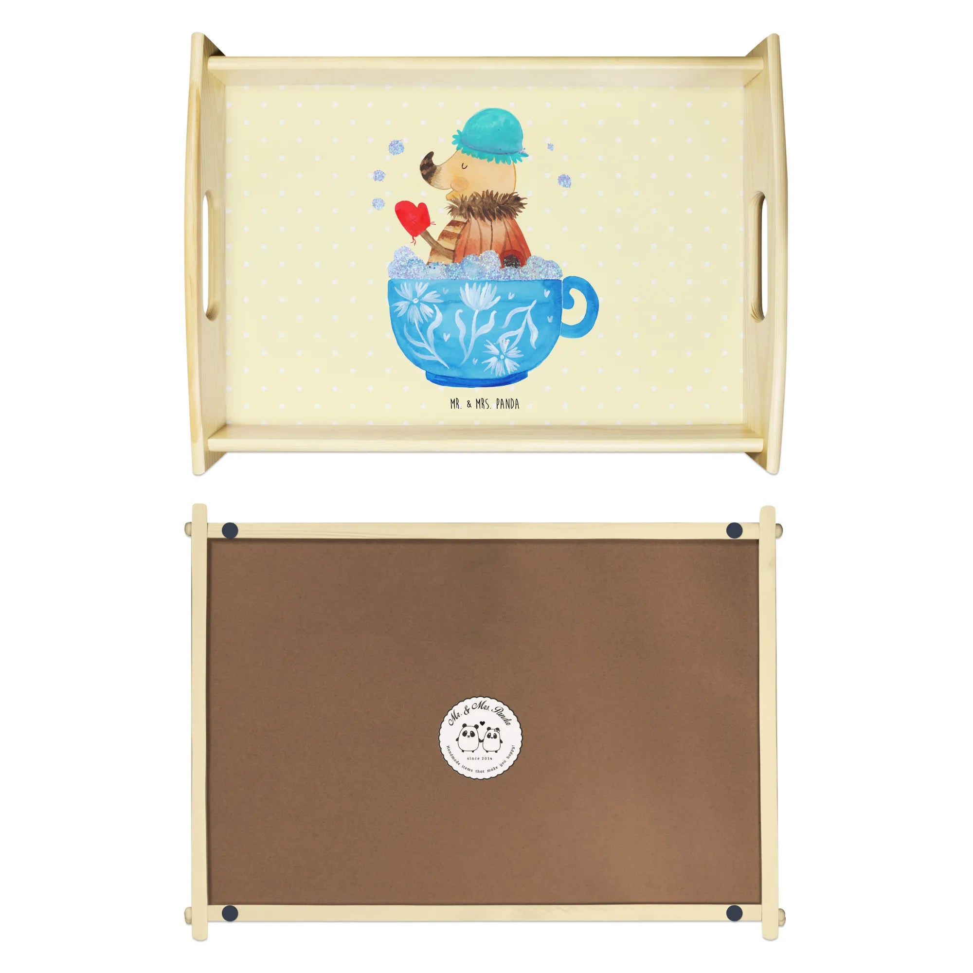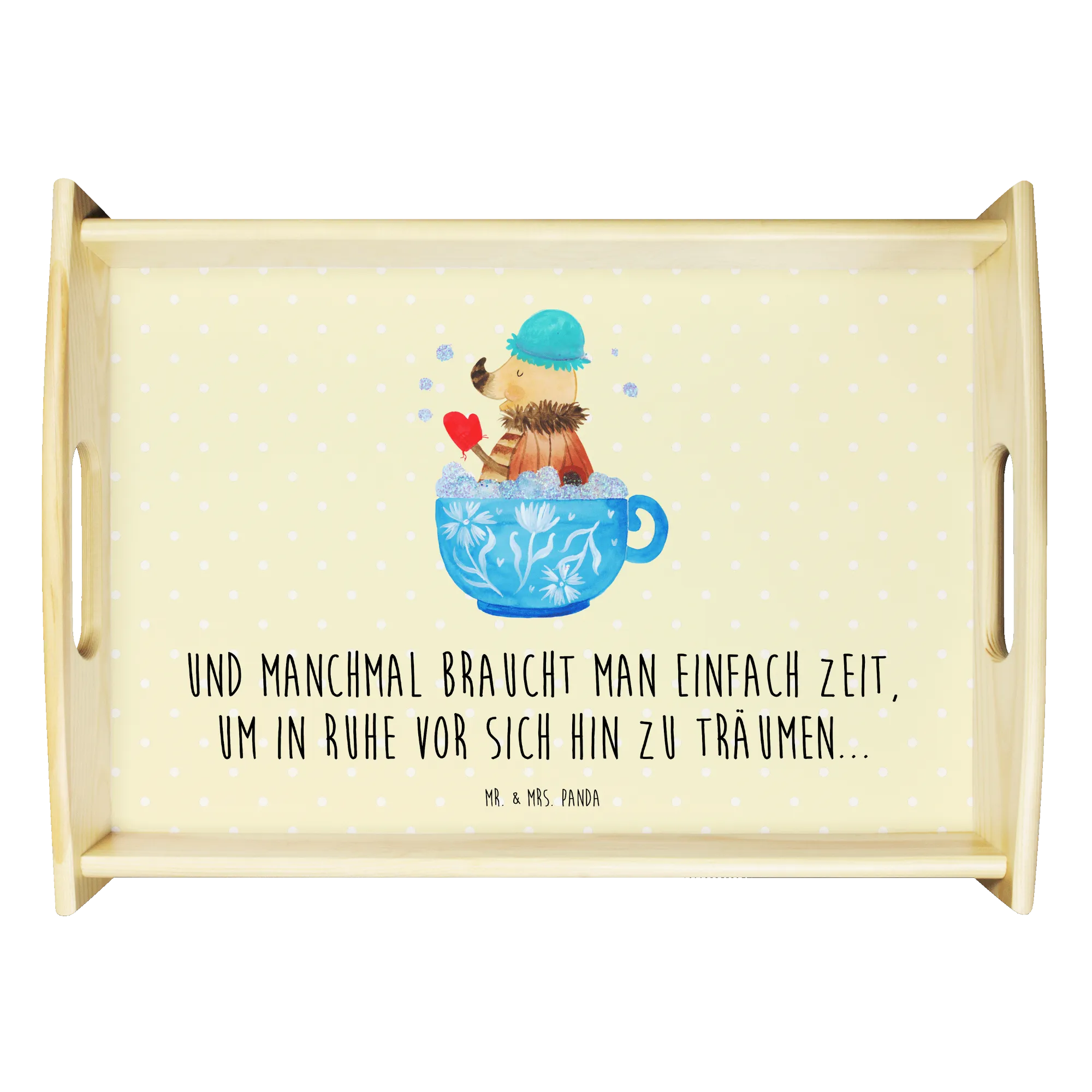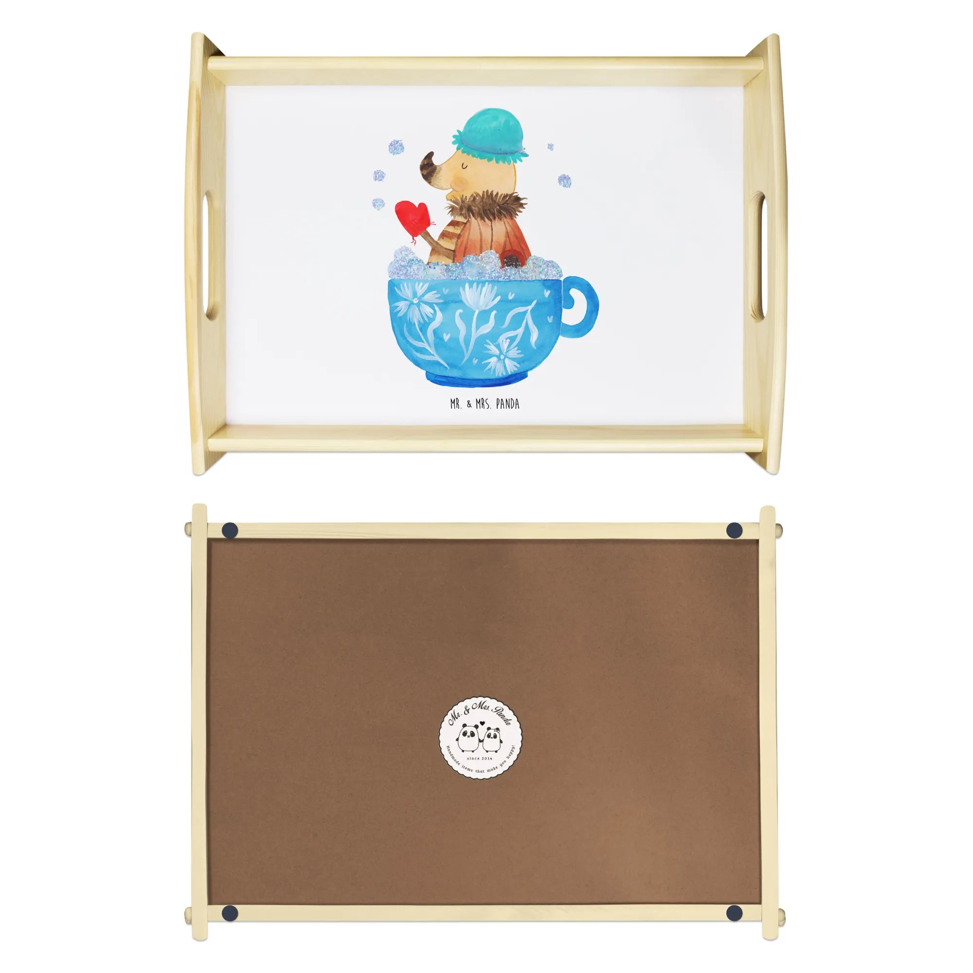 Das einzigartige Serviertablett von Mr. & Mrs. Panda wird dein Frühstücksbuffet zum Erlebnis machen! Mit seinen großzügigen Maßen von 480 mm x 480 mm x 65 mm und einem Gewicht von 925 g ist es die perfekte Kombination aus Funktionalität und Stil. Aus hochwertigem, lasiertem Echtholz gefertigt, verzückt das Tablett mit einem strahlenden Druck, der für gute Laune sorgt. Ob im Bett oder auf dem Sofa, die seitlichen Griffmulden garantieren ein angenehmes Handling. Die spezielle Anti-Rutsch Beschichtung sorgt dafür, dass alles sicher an seinem Platz bleibt. Dank der kratzfesten Oberfläche ist das Tablett sehr pflegeleicht – einfach mit einem feuchten Tuch und etwas Spülmittel abwischen. Bitte nicht einweichen! Denke daran, dass die Anfertigung wegen der hohen Qualität etwas Zeit in Anspruch nimmt.