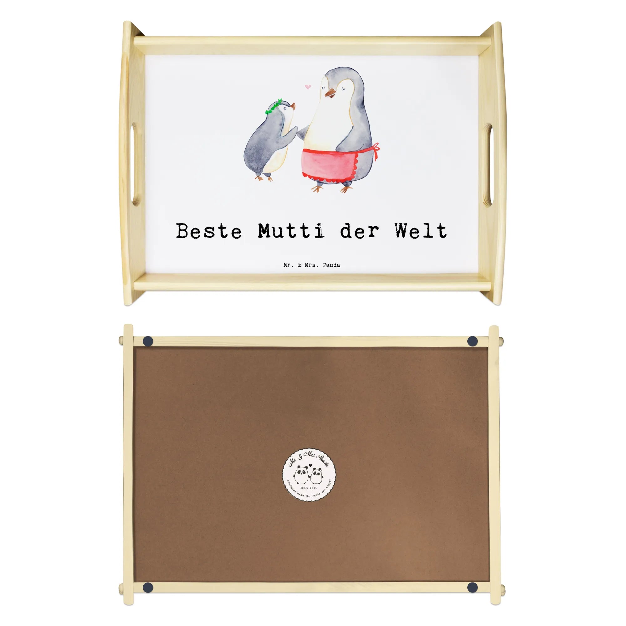 Warum dieses Serviertablett? Weil es praktisch, schön und emotional ist. Weil es kleine Rituale im Alltag zu großen Momenten macht. Und weil die Botschaft „Beste Mutti der Welt" direkt ins Herz trifft. Schenke Liebe zum Frühstück, zum Geburtstag oder einfach so – mit dem Serviertablett Pinguin von Mr. & Mrs. Panda.