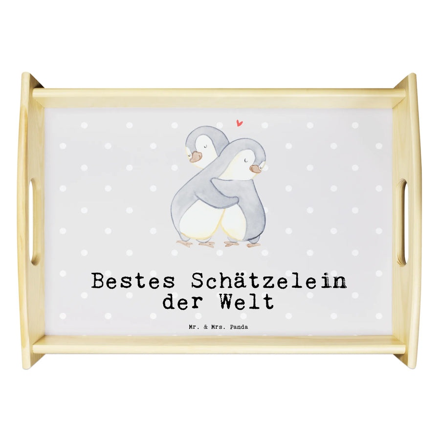 Servierplatte Holz Pinguin Bestes Schätzelein der Welt – Mr. & Mrs. Panda