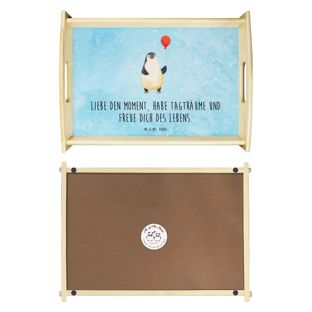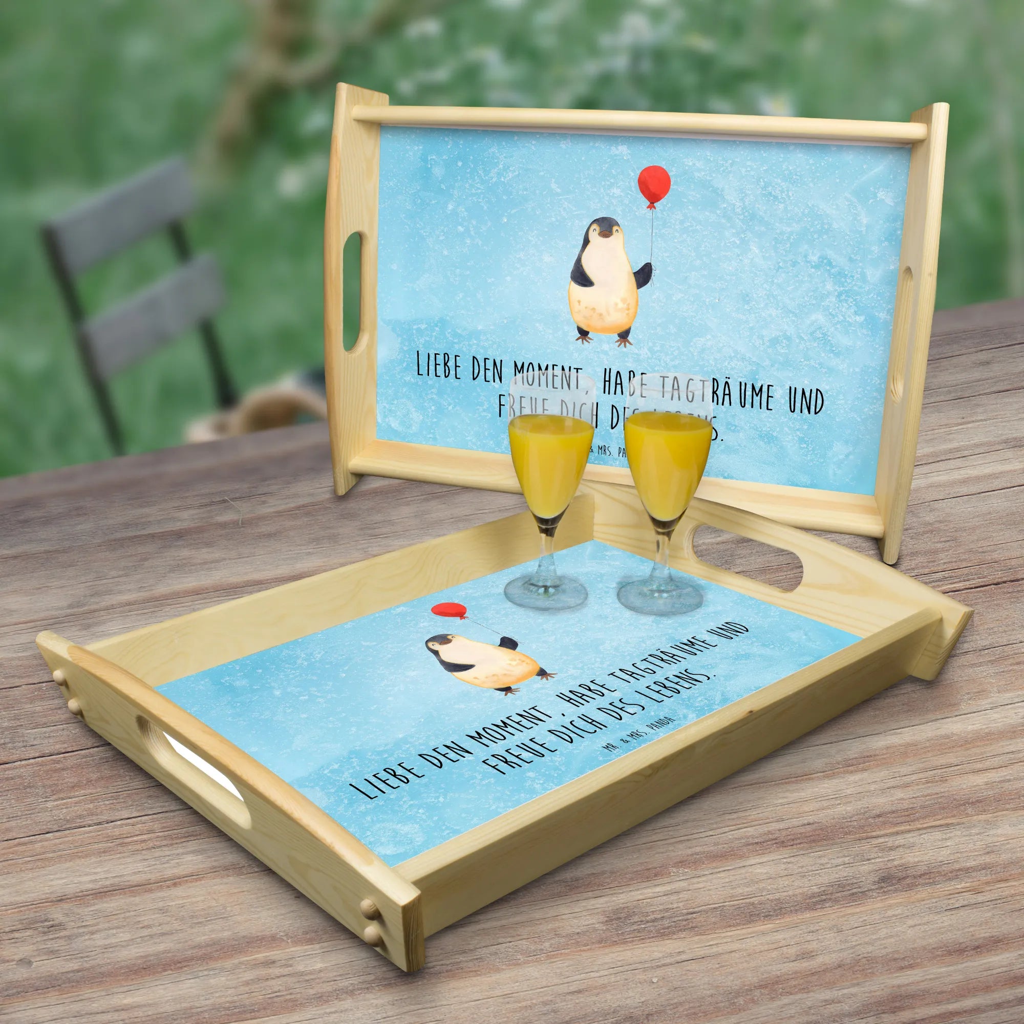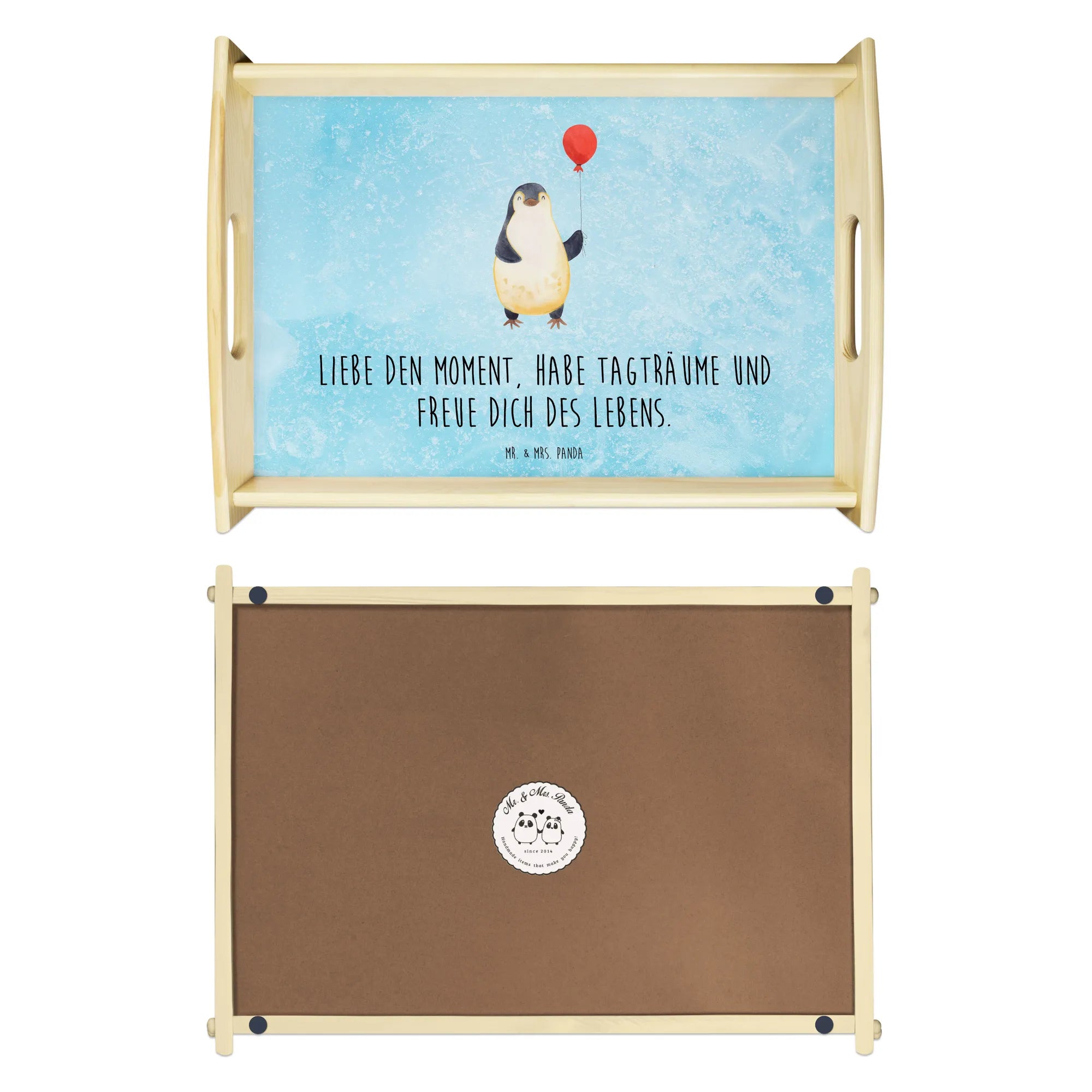 Entdecke unser bezauberndes Serviertablett mit dem liebevollen Motiv Pinguin Luftballon, das sich perfekt zum Verschenken eignet! Dieses wunderschöne und einzigartige Serviertablett von Mr. & Mrs. Panda wurde aus hochwertigem, lasiertem Echtholz gefertigt und bringt Freude in jeden Haushalt.