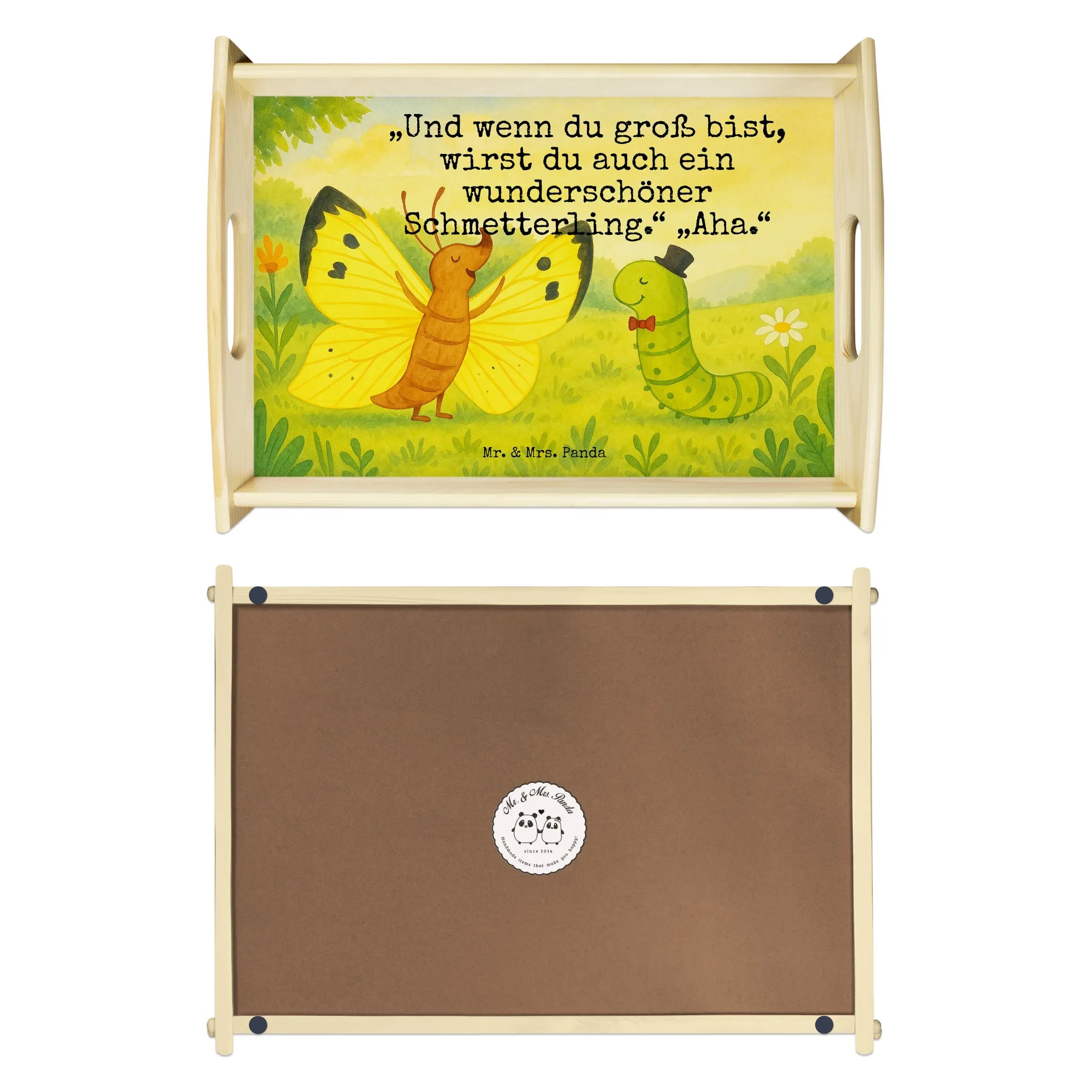 tablett aus holz Raupe Schmetterling Design - mit Spruch