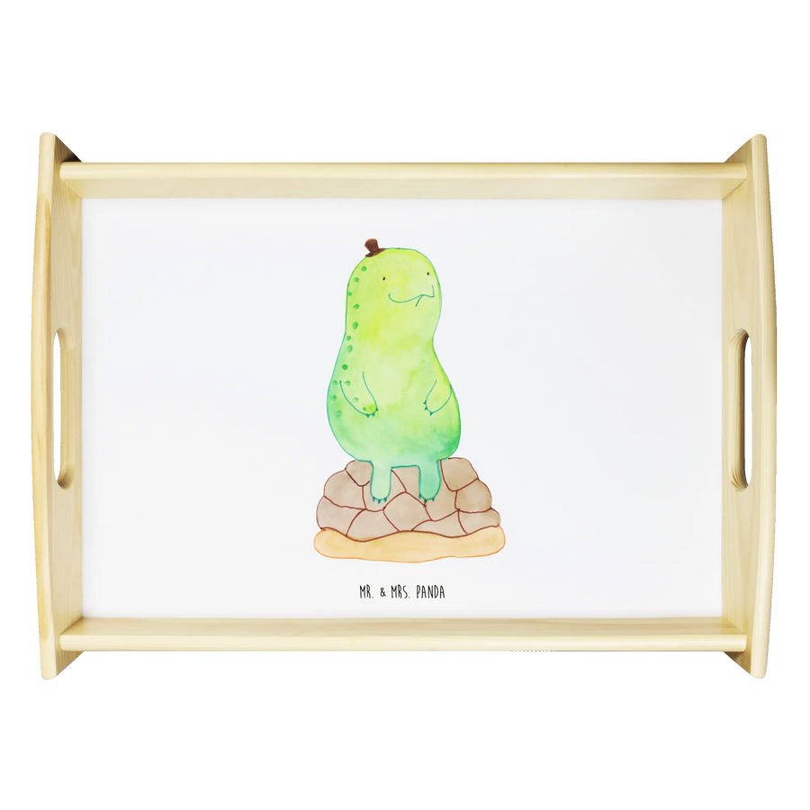 Verwöhne Deine Liebsten mit unserem bezaubernden Serviertablett von Mr. & Mrs. Panda! Mit den Maßen von 480 mm x 480 mm x 65 mm und einem gewicht von 925 g ist es nicht nur hübsch, sondern auch praktisch. Aus lasiertem Echtholz gefertigt, begeistert es mit einem lebendigen Druck, der gute Stimmung verbreitet. Egal ob beim Frühstück im Bett oder beim gemütlichen Abendessen auf dem Sofa – die seitlichen Griffmulden ermöglichen ein einfaches Tragen. Die Anti-Rutsch Pads auf der Unterseite sorgen dafür, dass alles sicher an seinem Platz bleibt. Dank der kratzfesten Oberfläche bleibt dein Tablett nach jeder Benutzung in bestem Zustand – einfach mit einem feuchten Tuch und Spülmittel abwischen, aber nicht einweichen! Beachte bitte die längere Anfertigungszeit aufgrund der besonderen Verarbeitung.