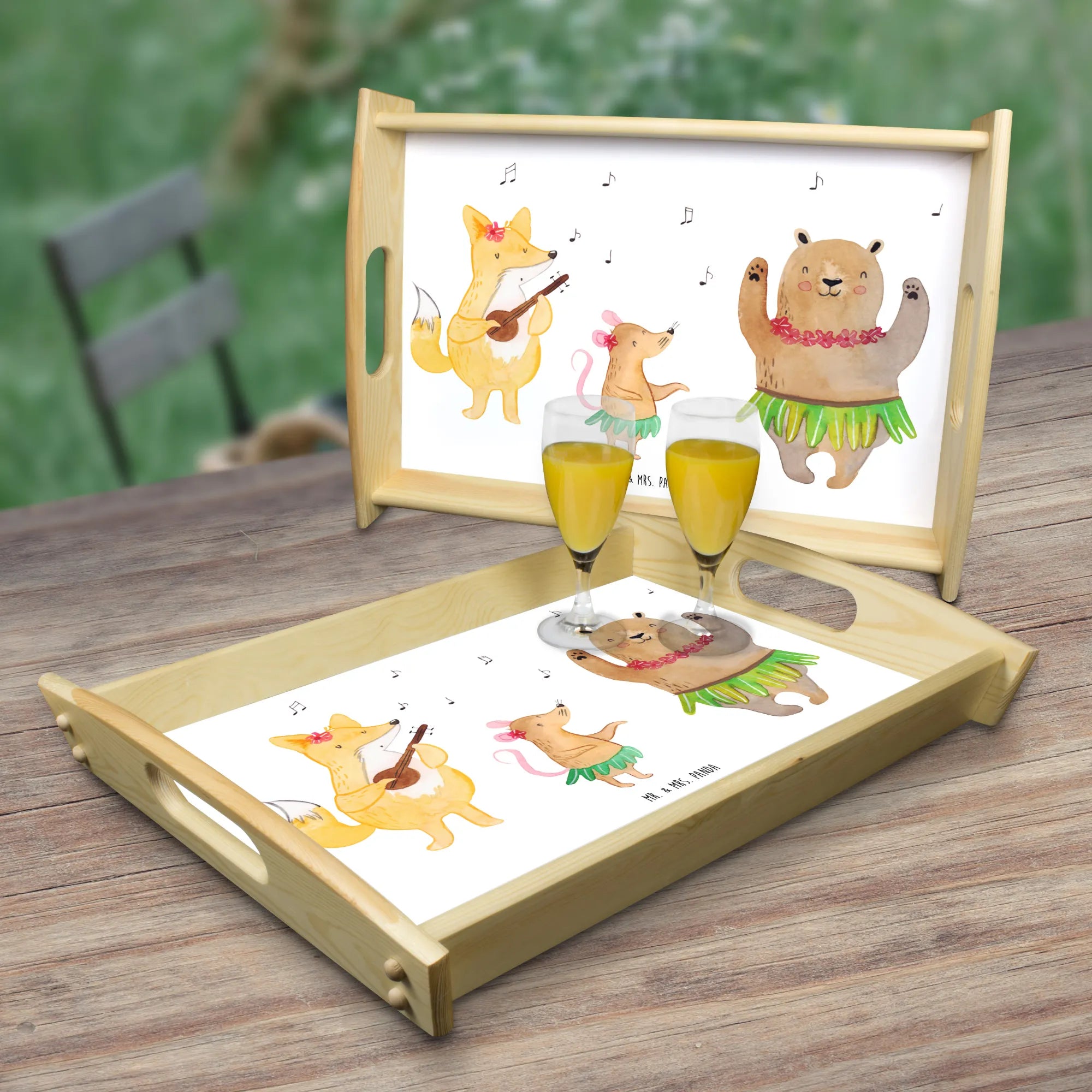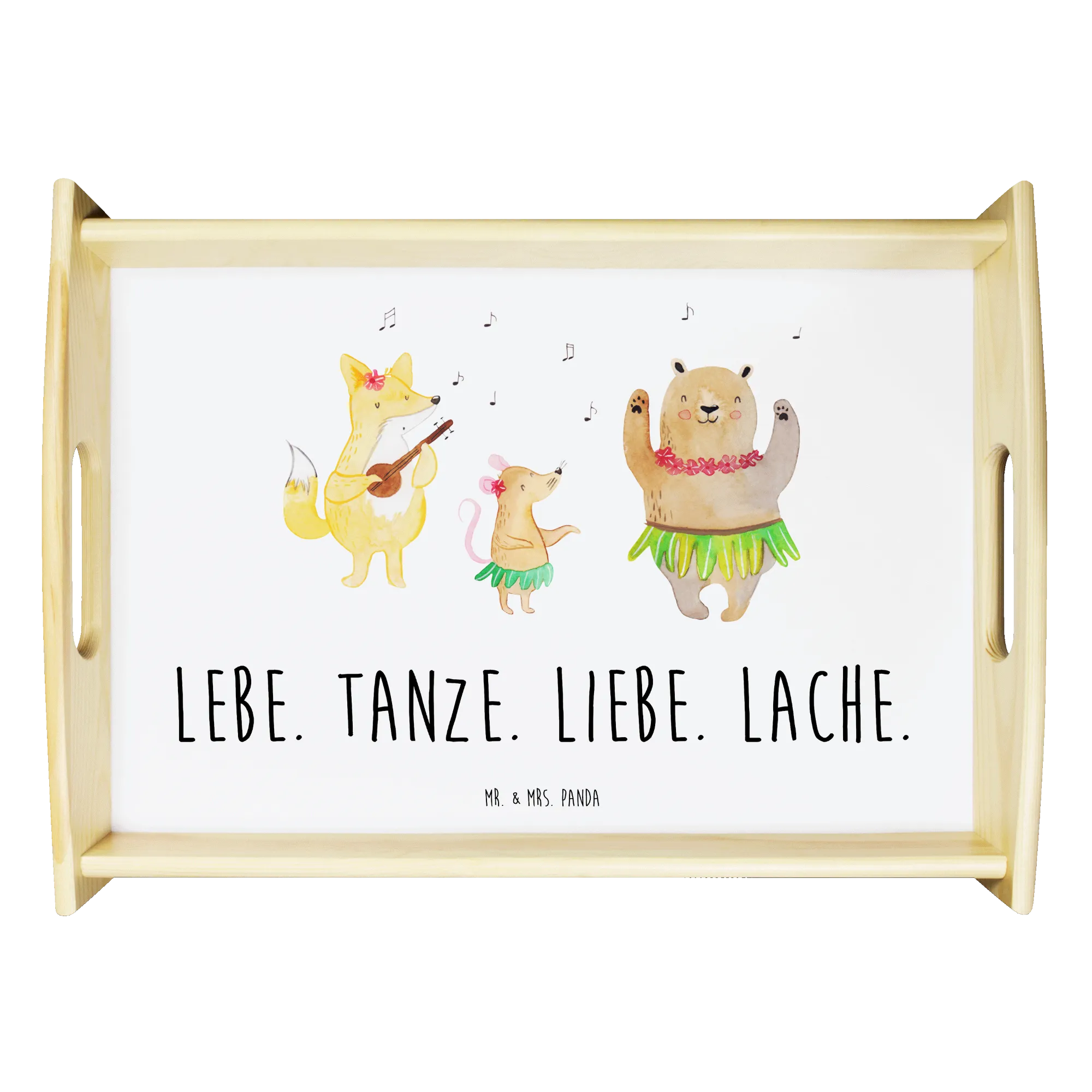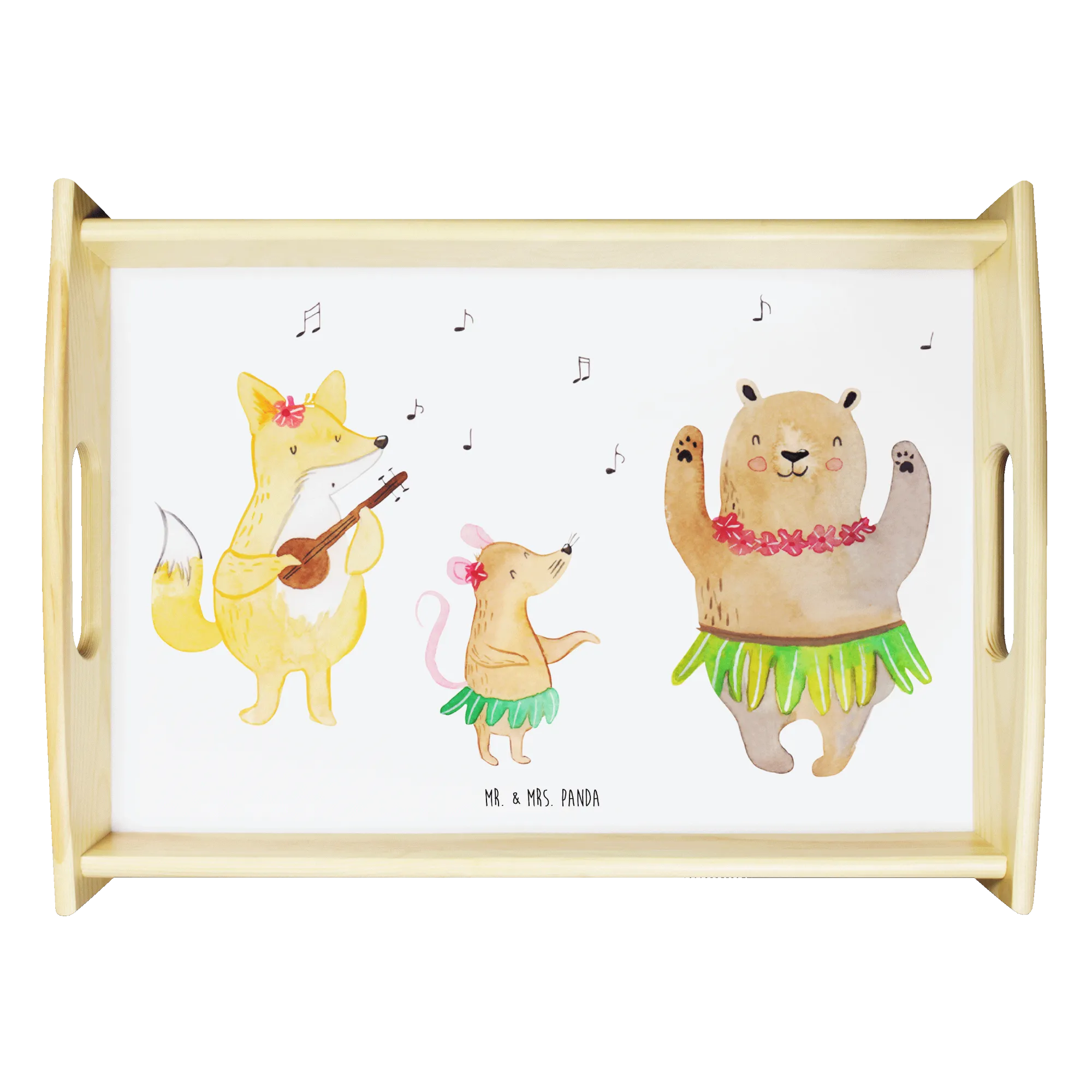Hol dir Urlaubsstimmung nach Hause! Das Serviertablett "Waldtiere Aloha" aus der Small World Kollektion von Mr. & Mrs. Panda ist ein fröhliches Holztablett, das Funktionalität und liebevolle Illustration vereint. Die niedlichen Waldbewohner tanzen im Hula-Rock und versprühen sofort gute Laune. Ideal als Frühstückstablett, Serviertablett oder als Dekotablett für dein Zuhause.