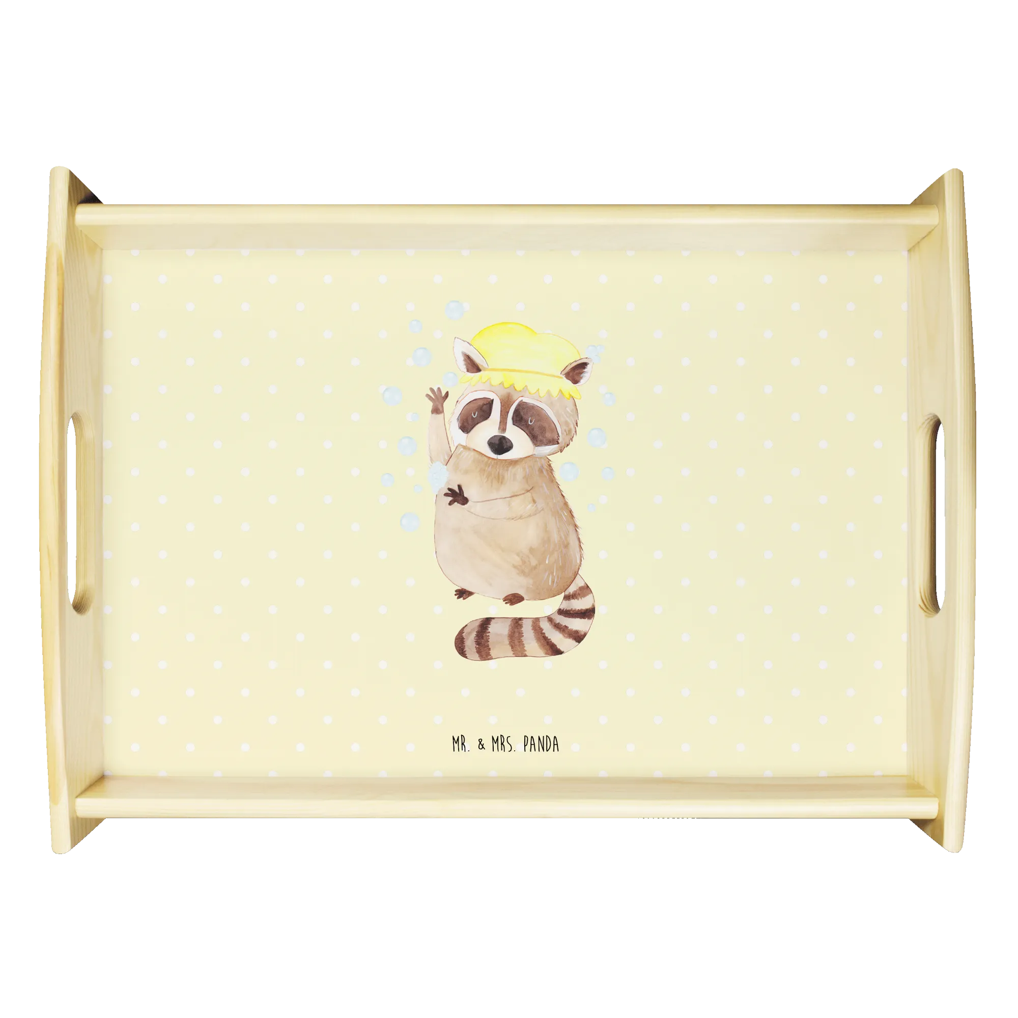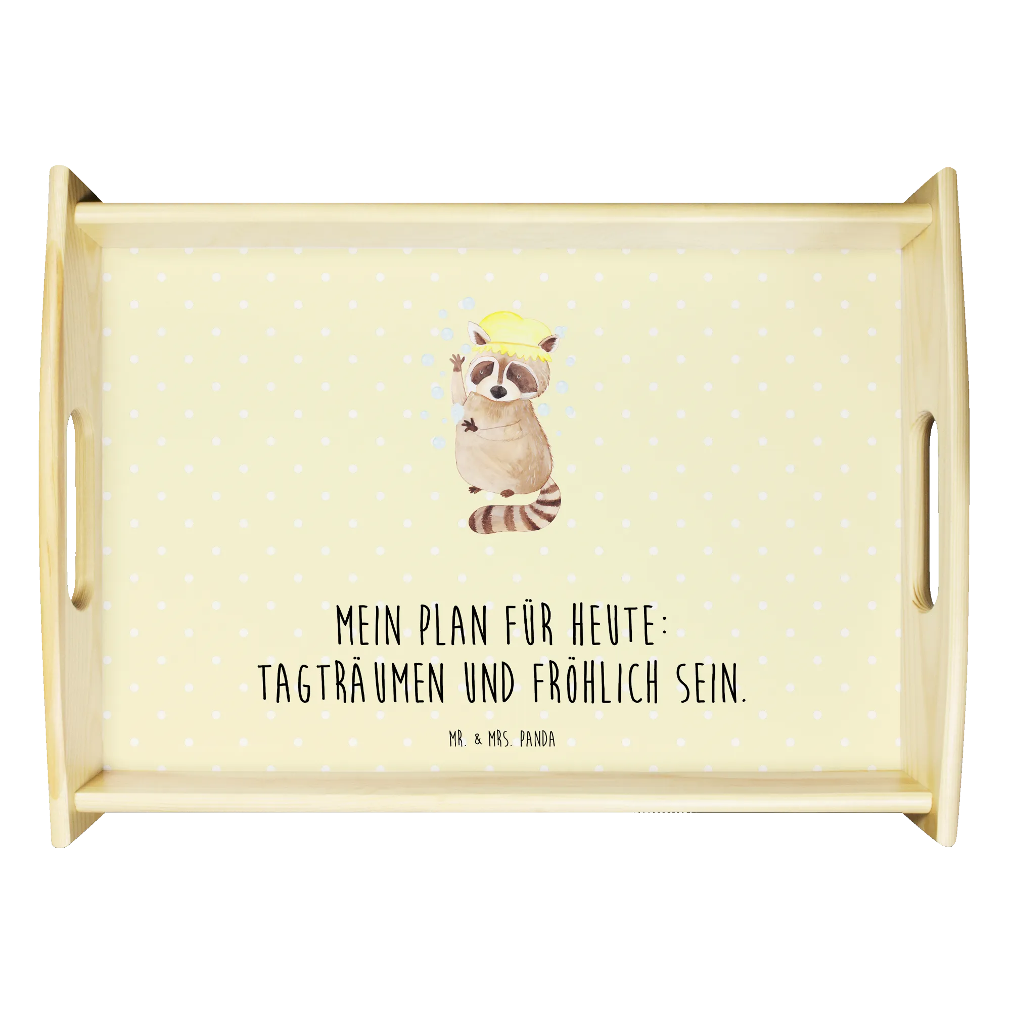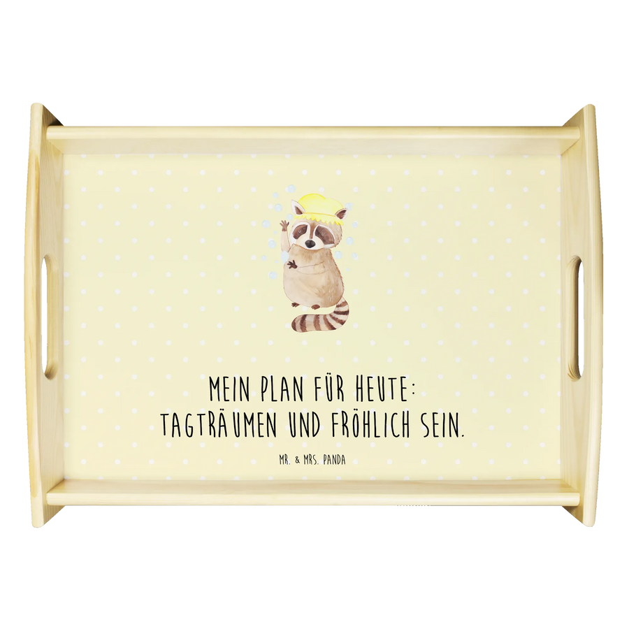Serviertablett Waschbär - mit Spruch - Gelb Pastell