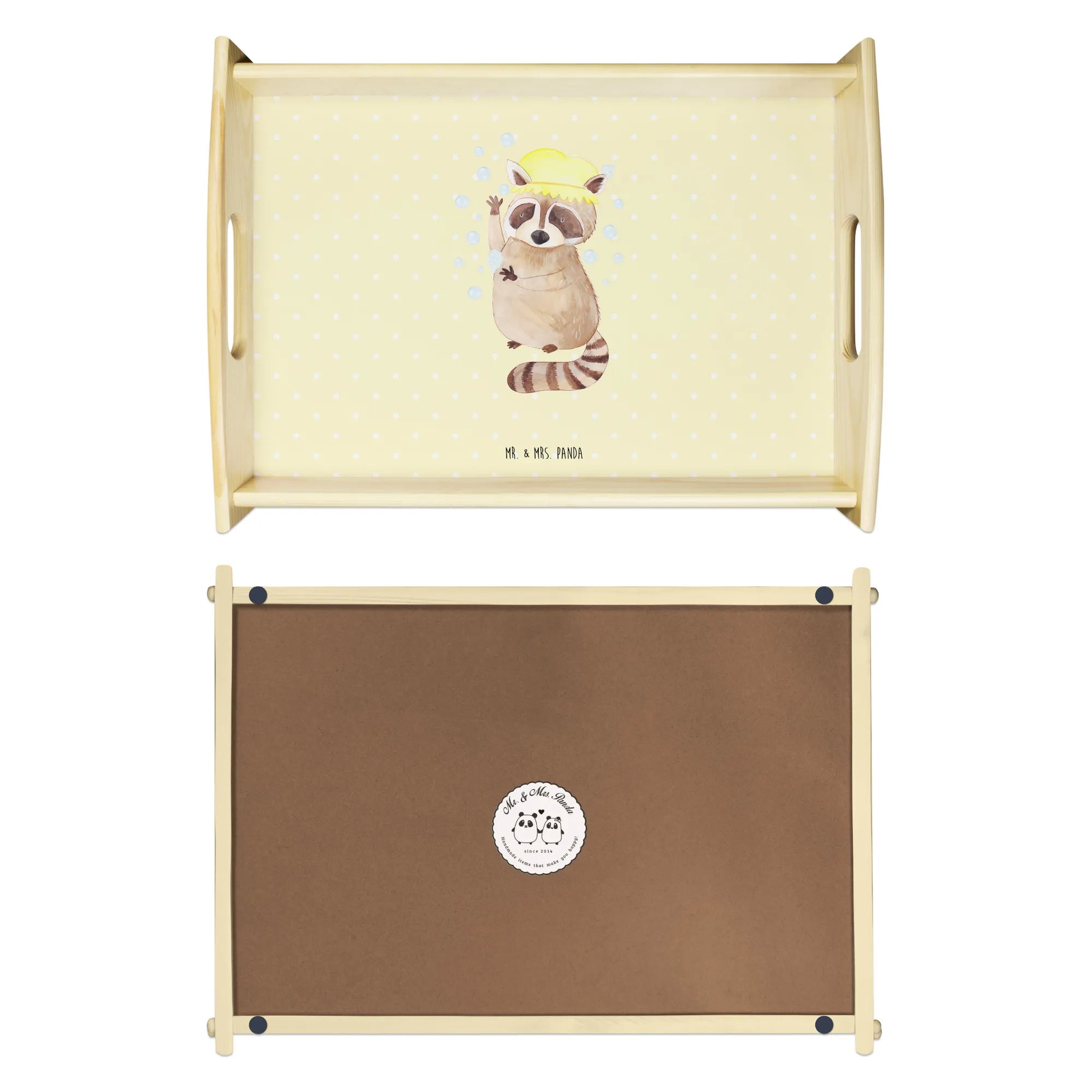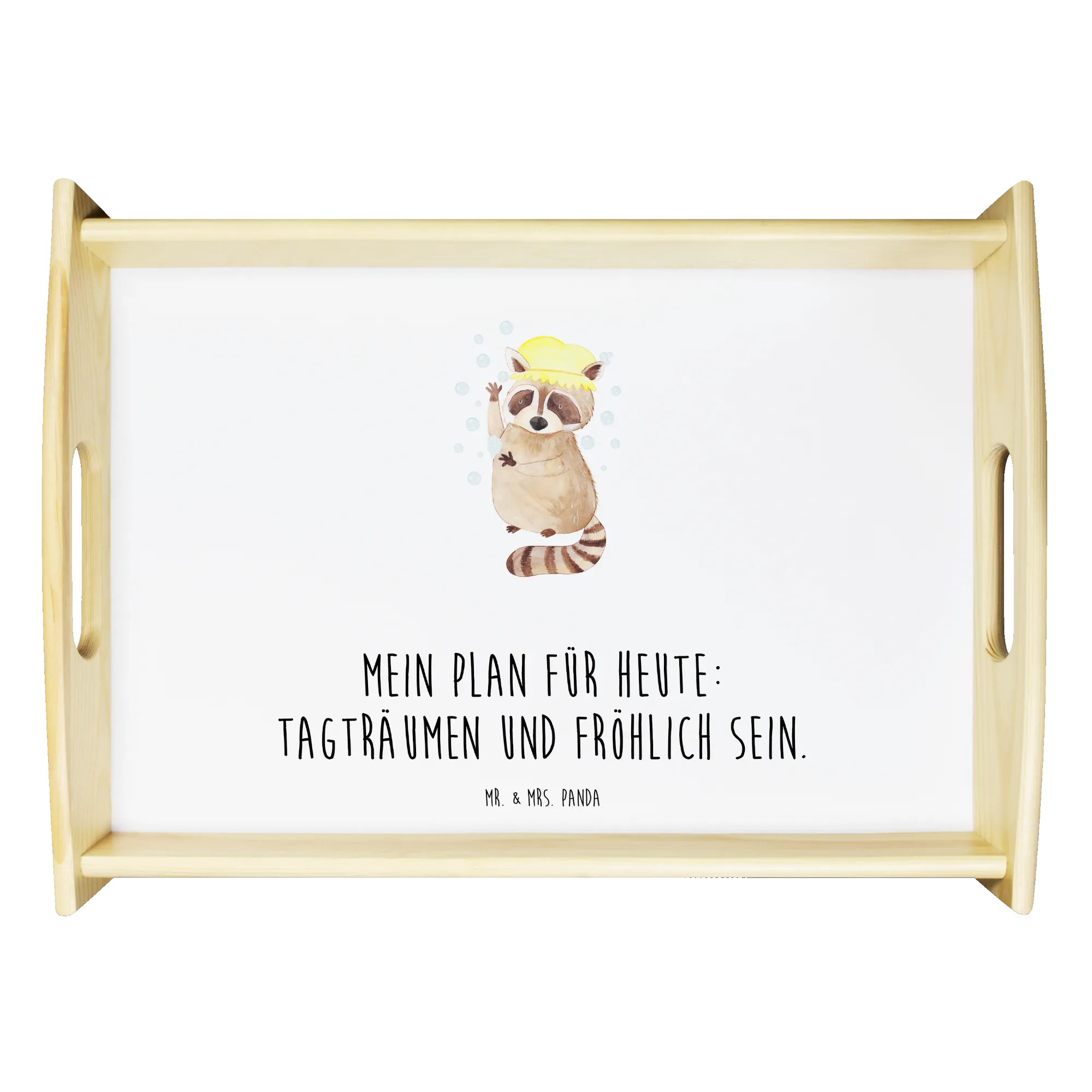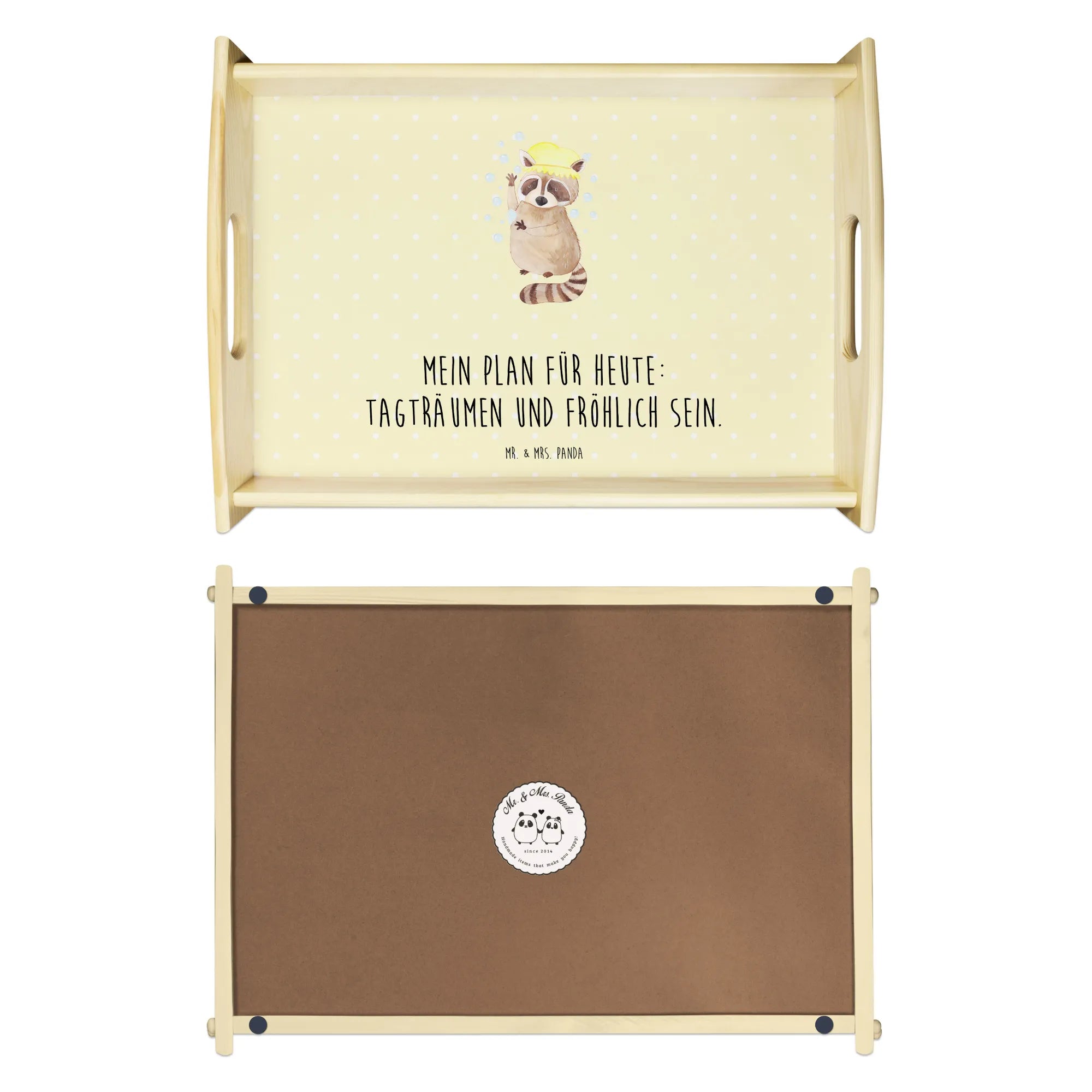 Serviertablett Waschbär - mit Spruch - Gelb Pastell