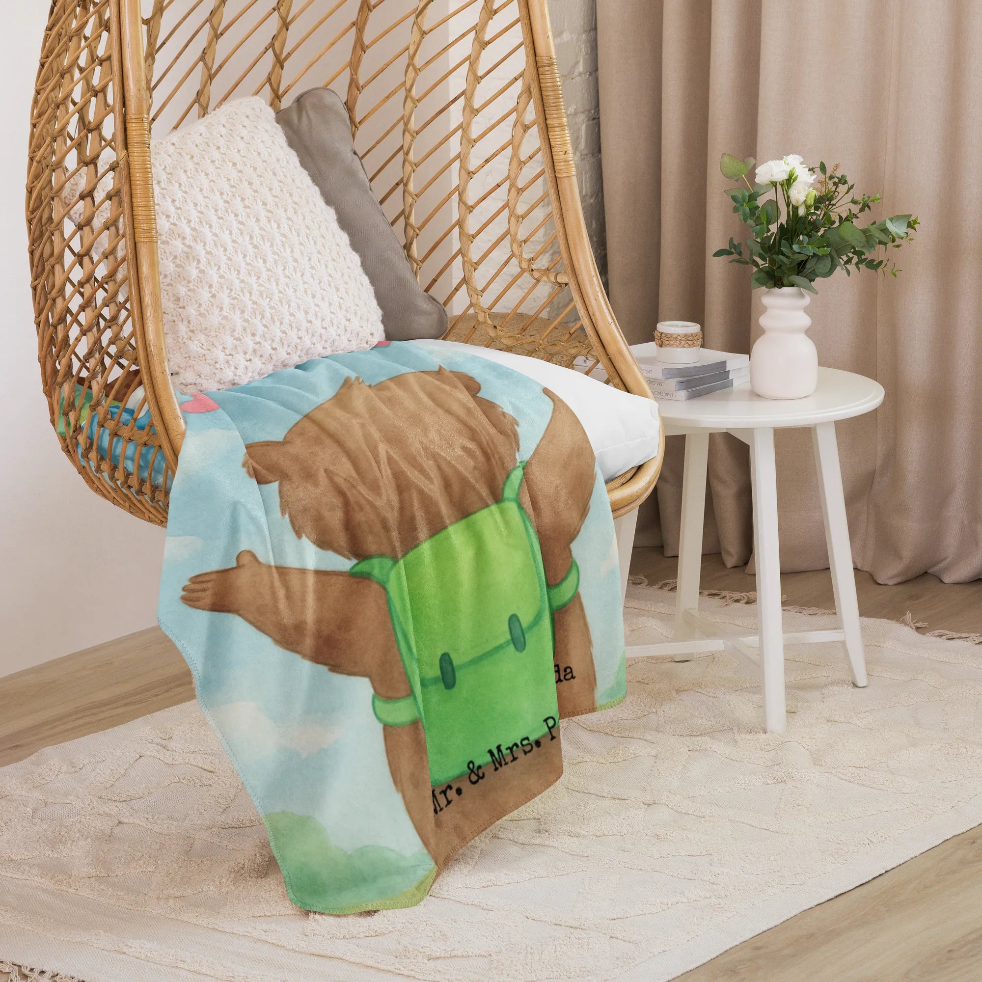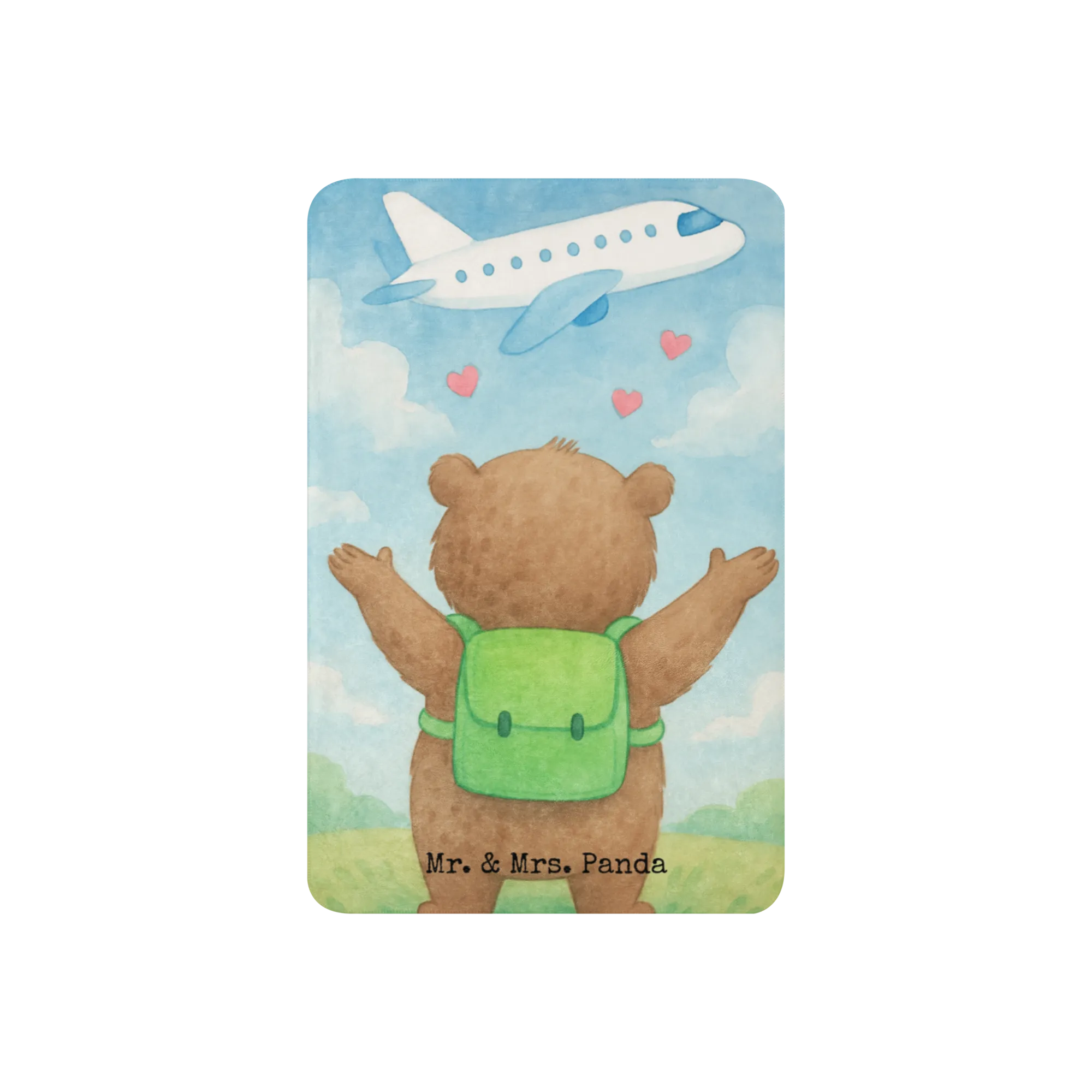 Verschenke Wärme, Kuschelkomfort und eine kleine Reise-Philosophie fürs Herz – mit der Sherpa Kuscheldecke Bär Flugzeug aus der Mr. & Mrs. Panda Liebe-Kollektion.