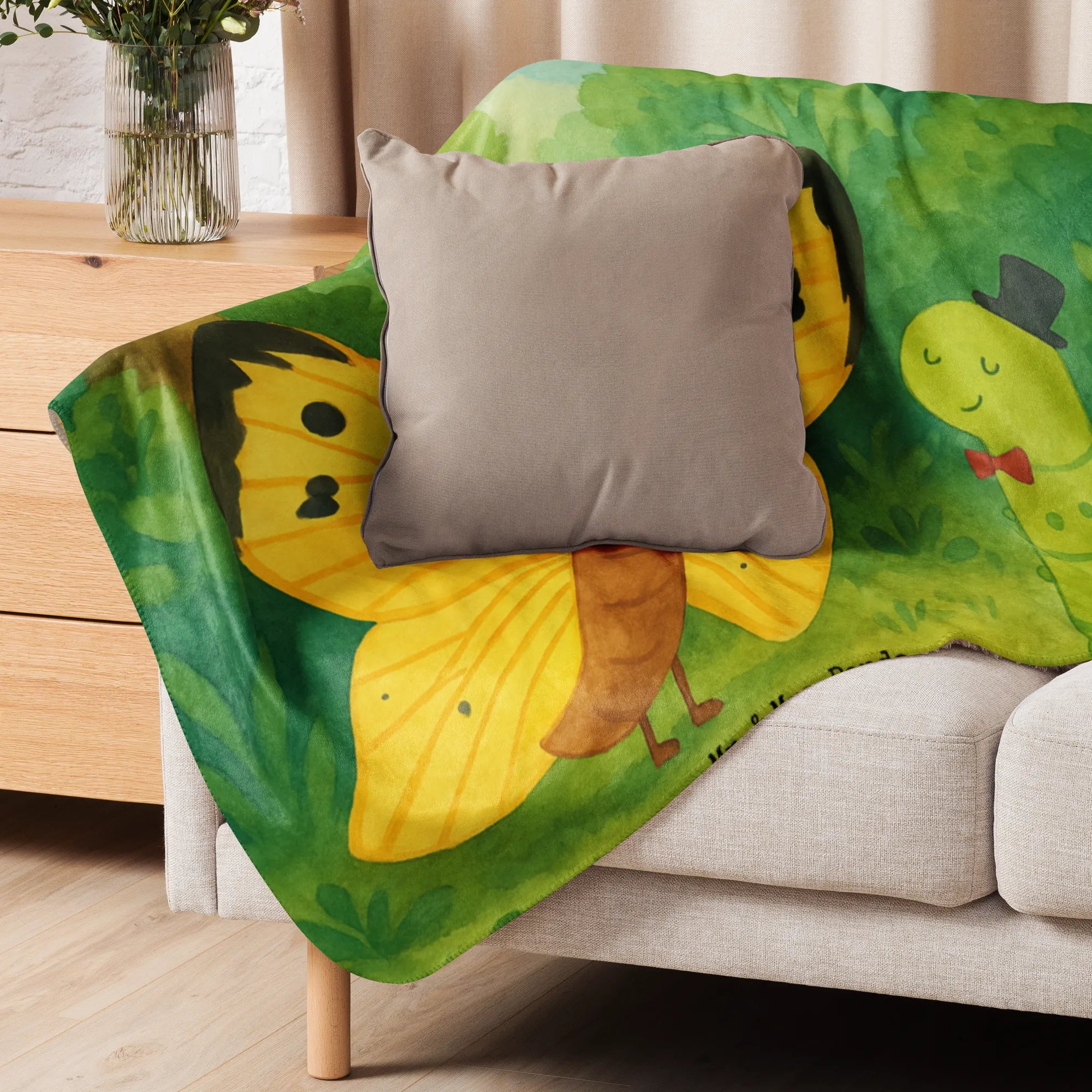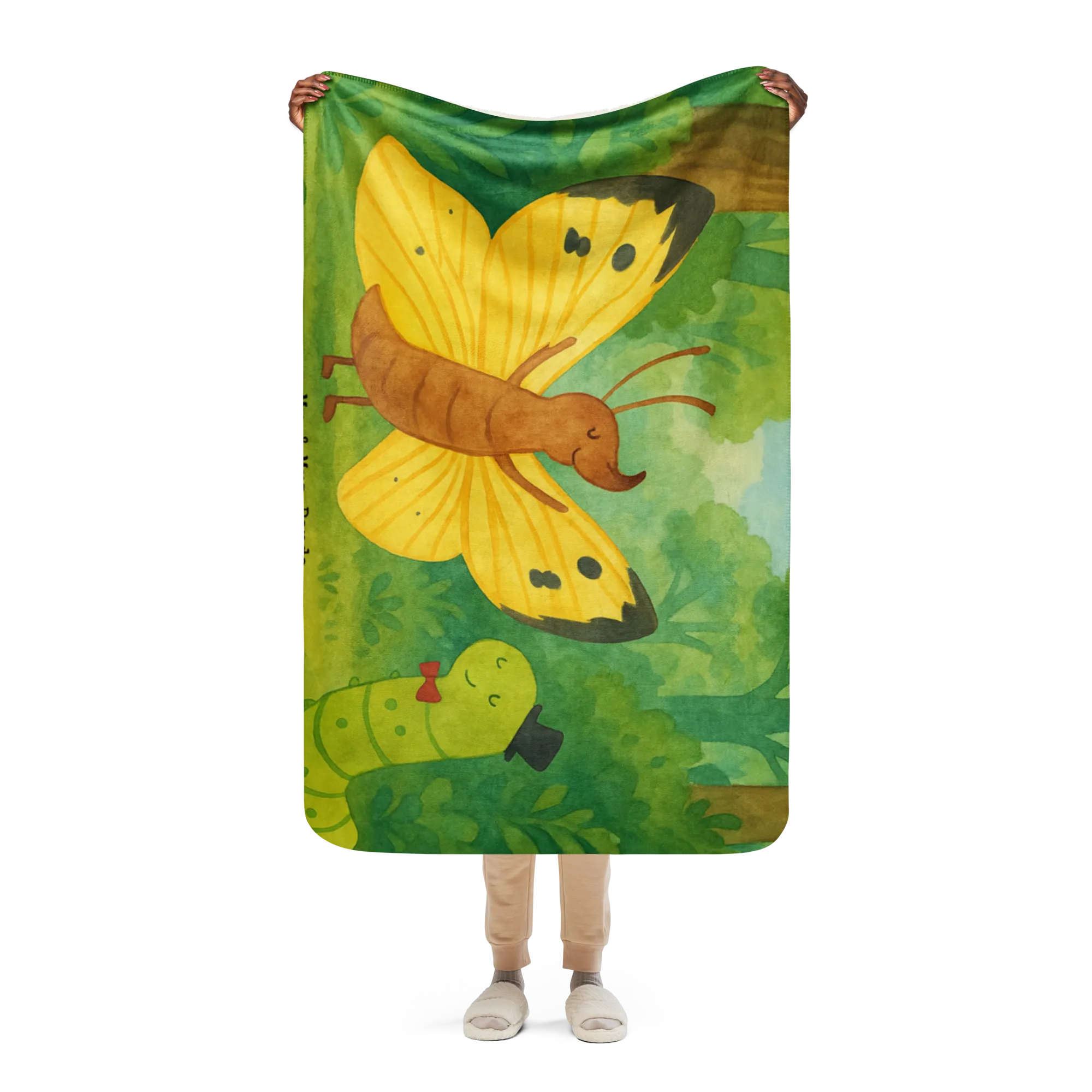 Sherpa Kuscheldecke Raupe Schmetterling Design - 130 x 155 cm