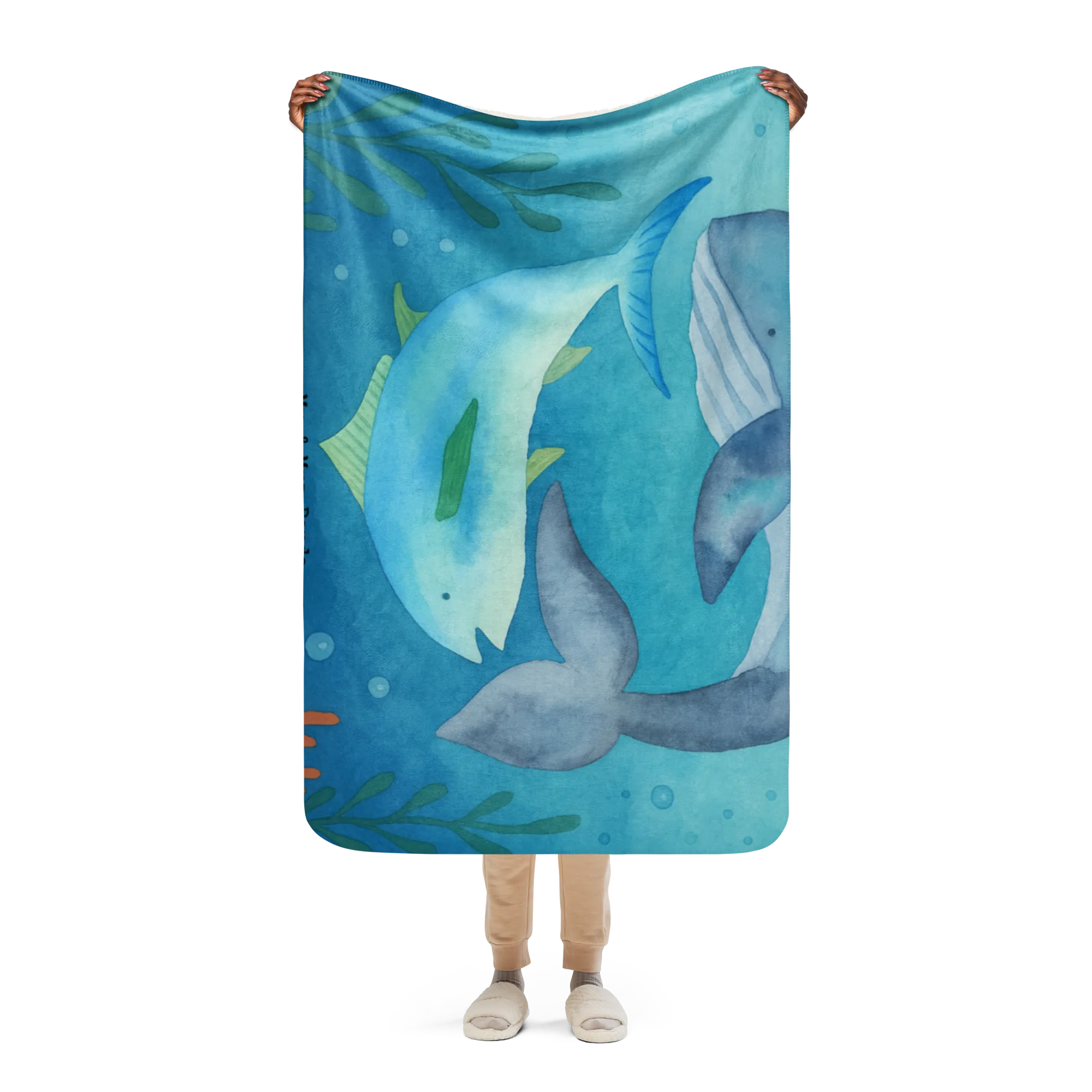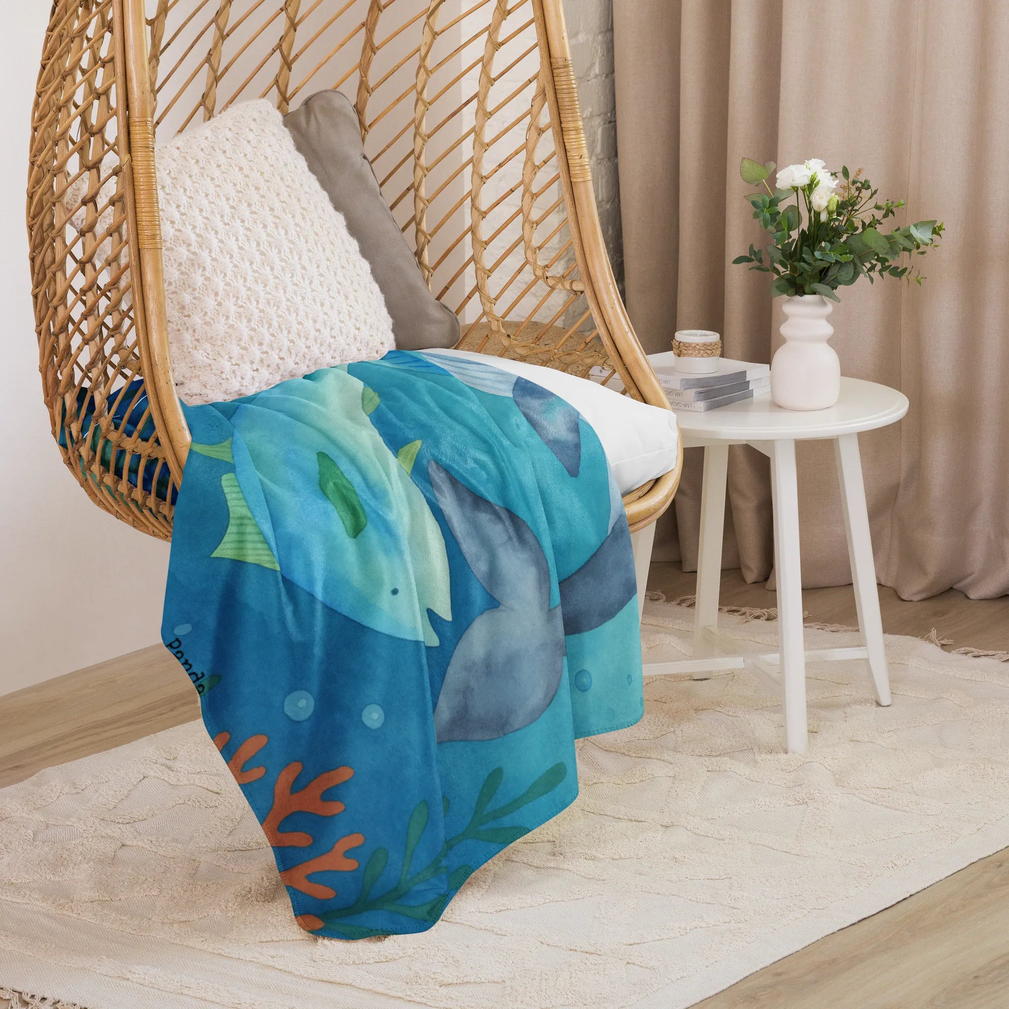 Sherpa Kuscheldecke Walfisch Thunfisch Design - 130 x 155 cm
