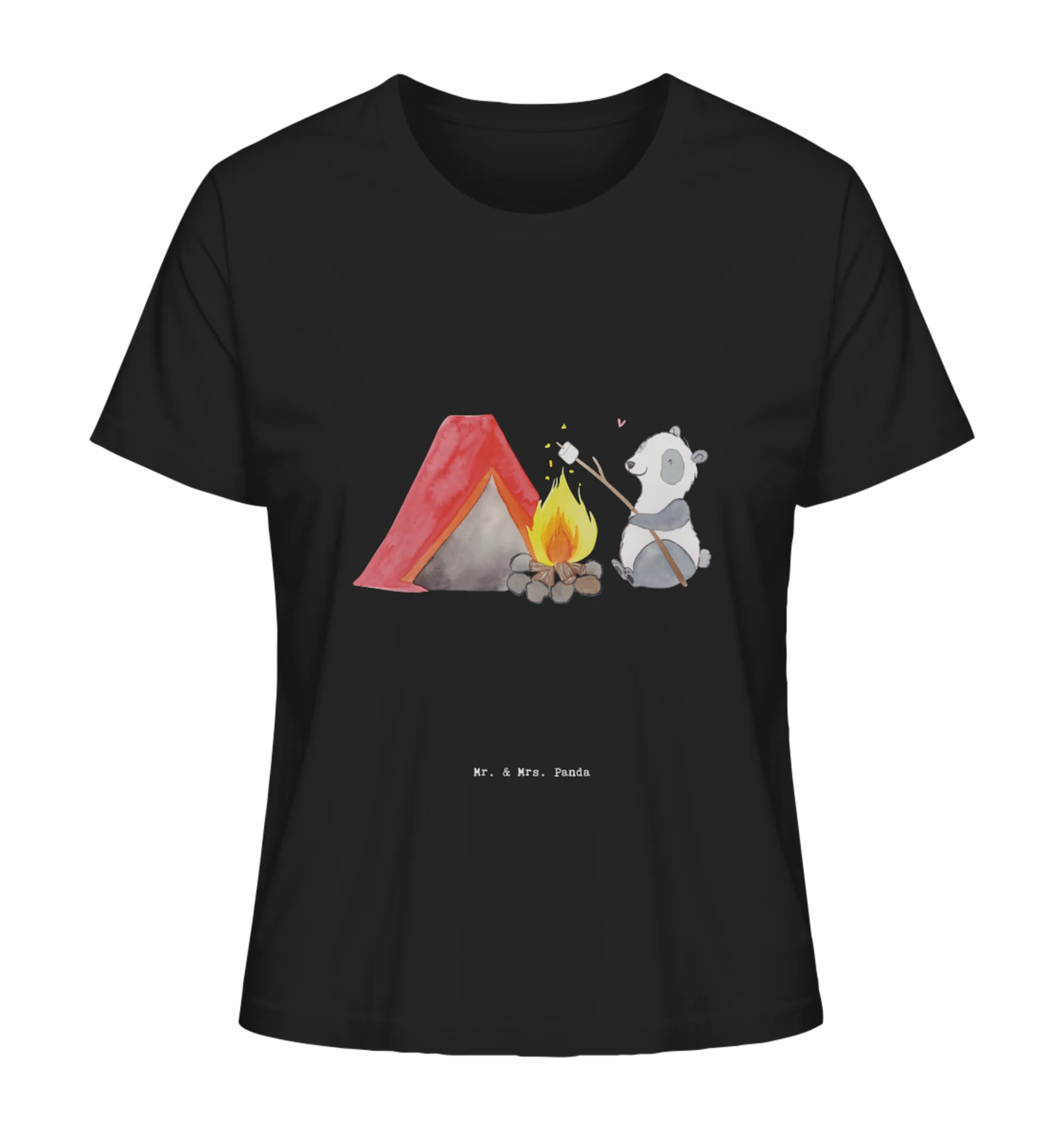 Mr. & Mrs. Panda Shirt Damen „Panda Campen Tage“ – dein neues Lieblingsshirt für alle Camping-Fans und Outdoor-Liebhaberinnen. Auf dem schwarzen Shirt sitzt ein süßer Panda mit seiner Kaffeetasse vor einem kleinen Camper. Das handgezeichnete Motiv bringt Ruhe, Charme und Camping-Feeling in deinen Alltag.