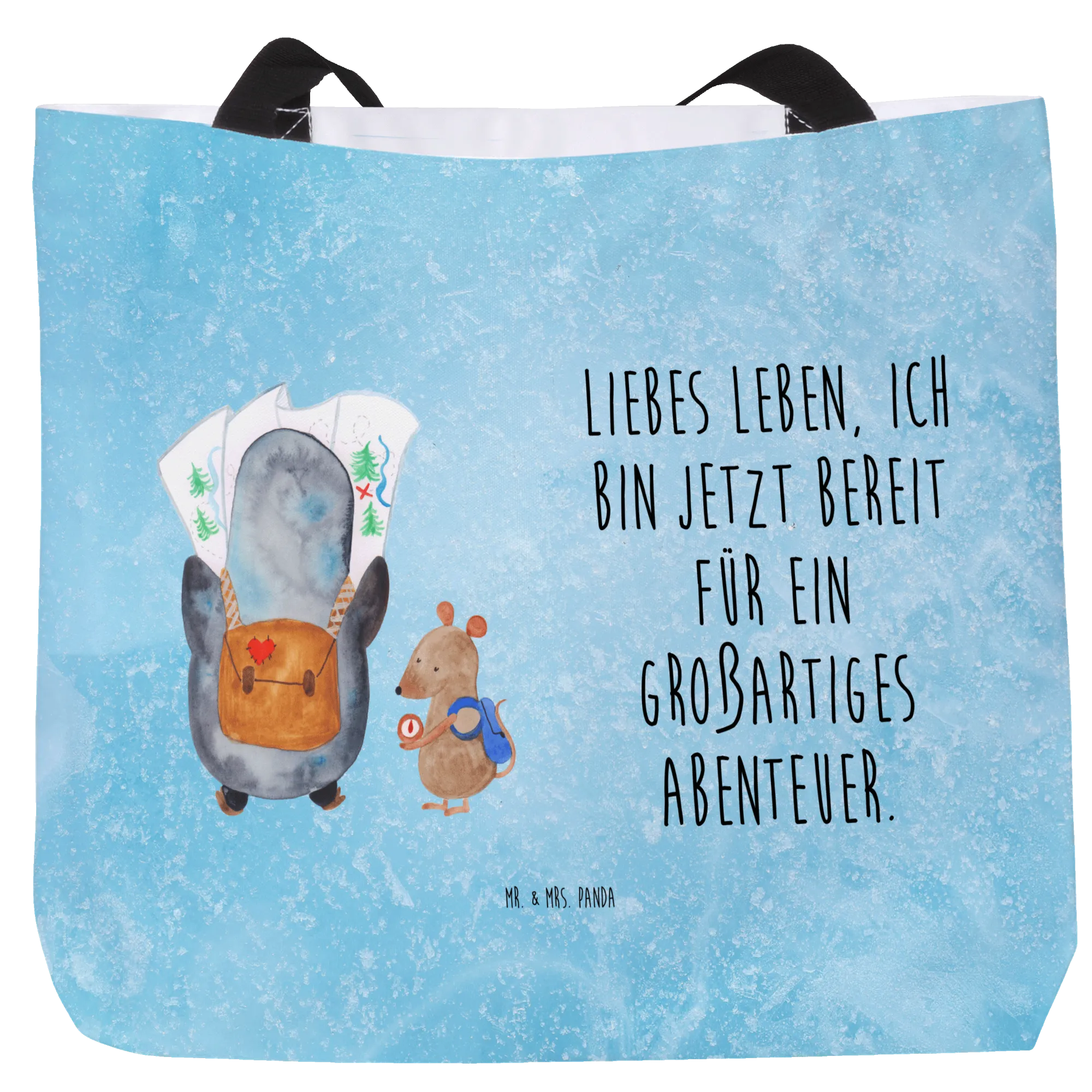 Strandtasche Pinguin & Maus Wanderer - mit Spruch - Eisblau