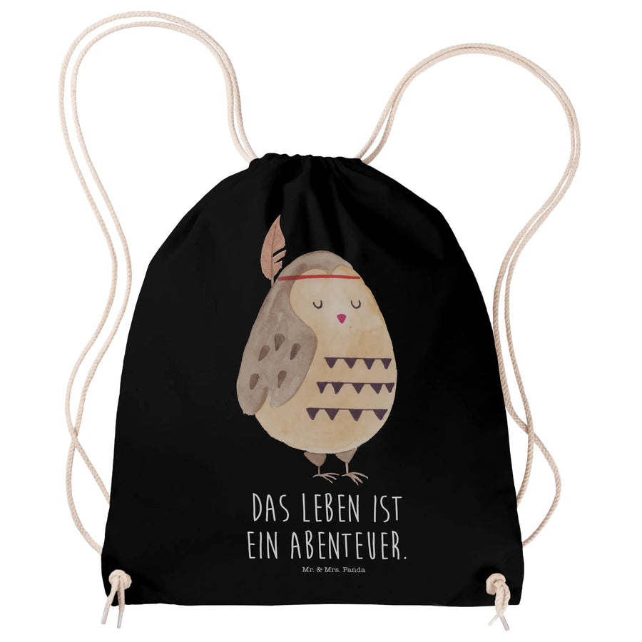 Sportbeutel Eule Federschmuck - mit Spruch - Schwarz