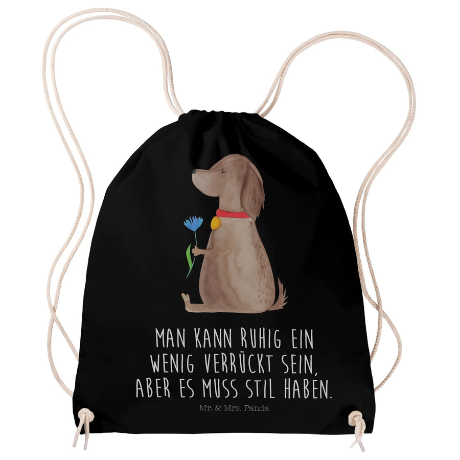 Sportbeutel Hund Blume - mit Spruch - Schwarz