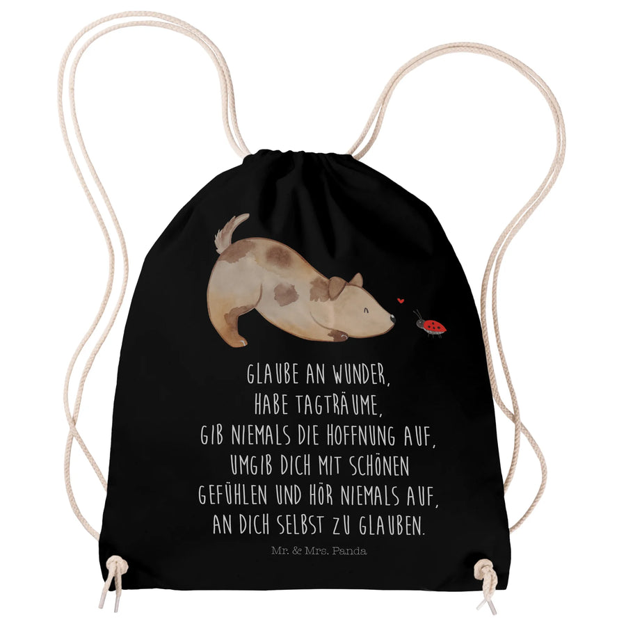 Sportbeutel Hund Marienkäfer - mit Spruch - Schwarz