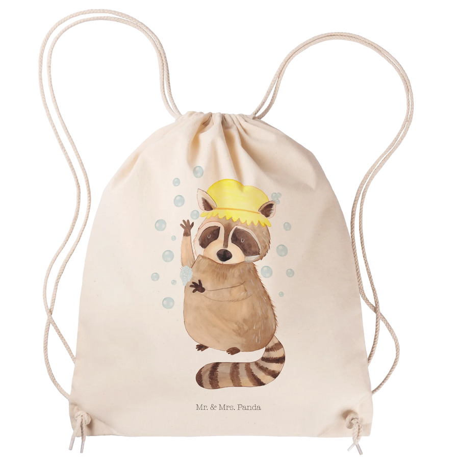 Mr. & Mrs. Panda Waschbär - Fröhliches Motiv | Duschender Waschbär voller guter Laune