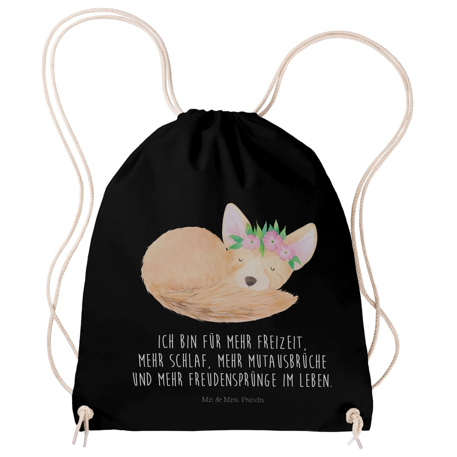 Sportbeutel Wüstenfuchs Blumen - mit Spruch - Schwarz