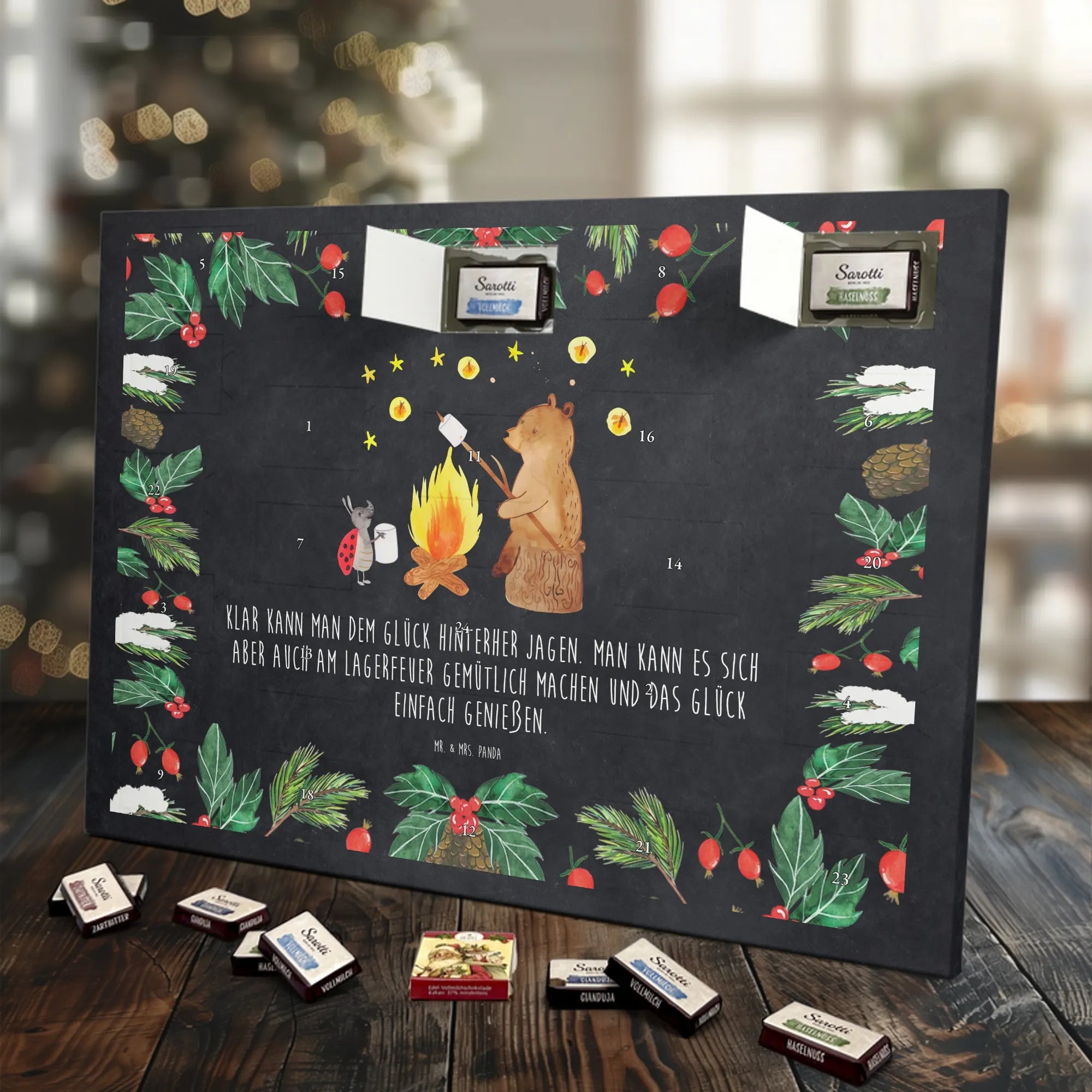 Mach die Adventszeit süßer: Entdecke unseren bedruckten Schokoladen Adventskalender von Mr. & Mrs. Panda und verschenke täglich Freude!