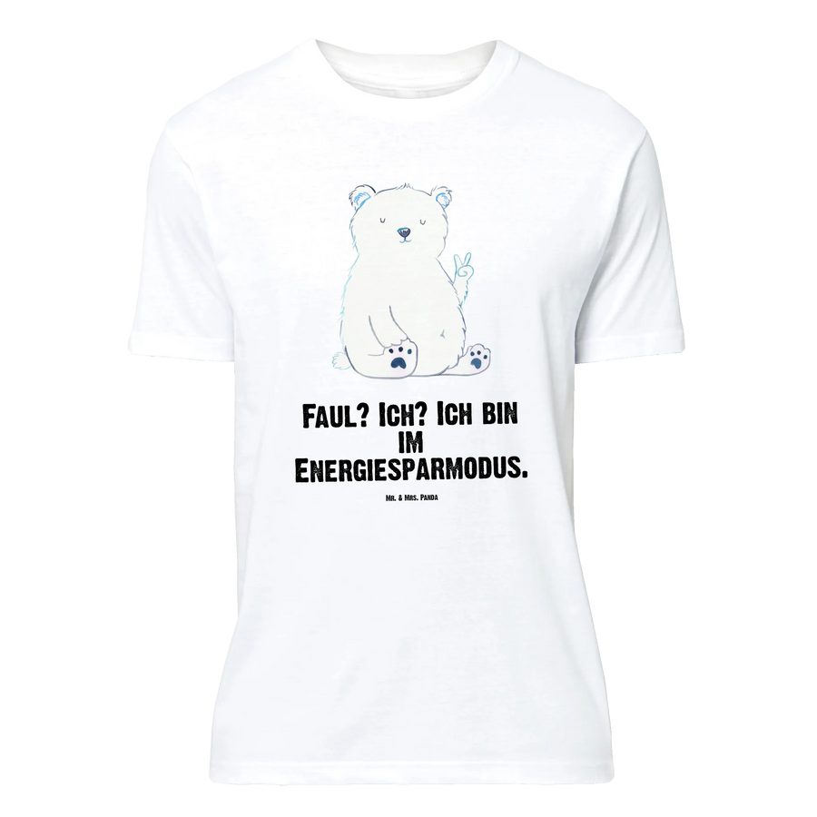 Das XL T-Shirt mit dem süßen Eisbären Motiv "Faul? Ich? Ich bin im Energiesparmodus." aus der Bär Kollektion von Mr. & Mrs. Panda ist das perfekte Geschenk für alle, die Humor und Gemütlichkeit lieben!