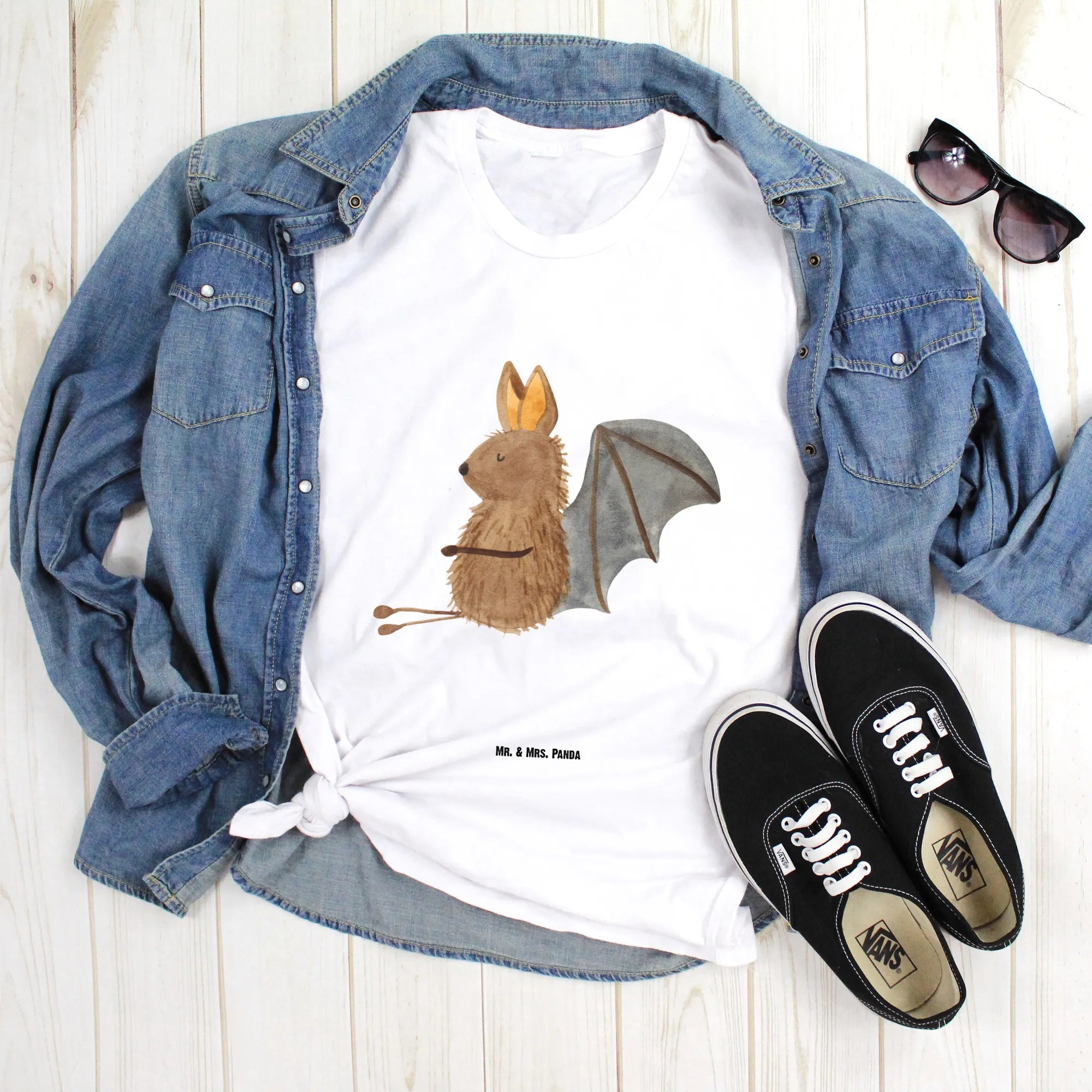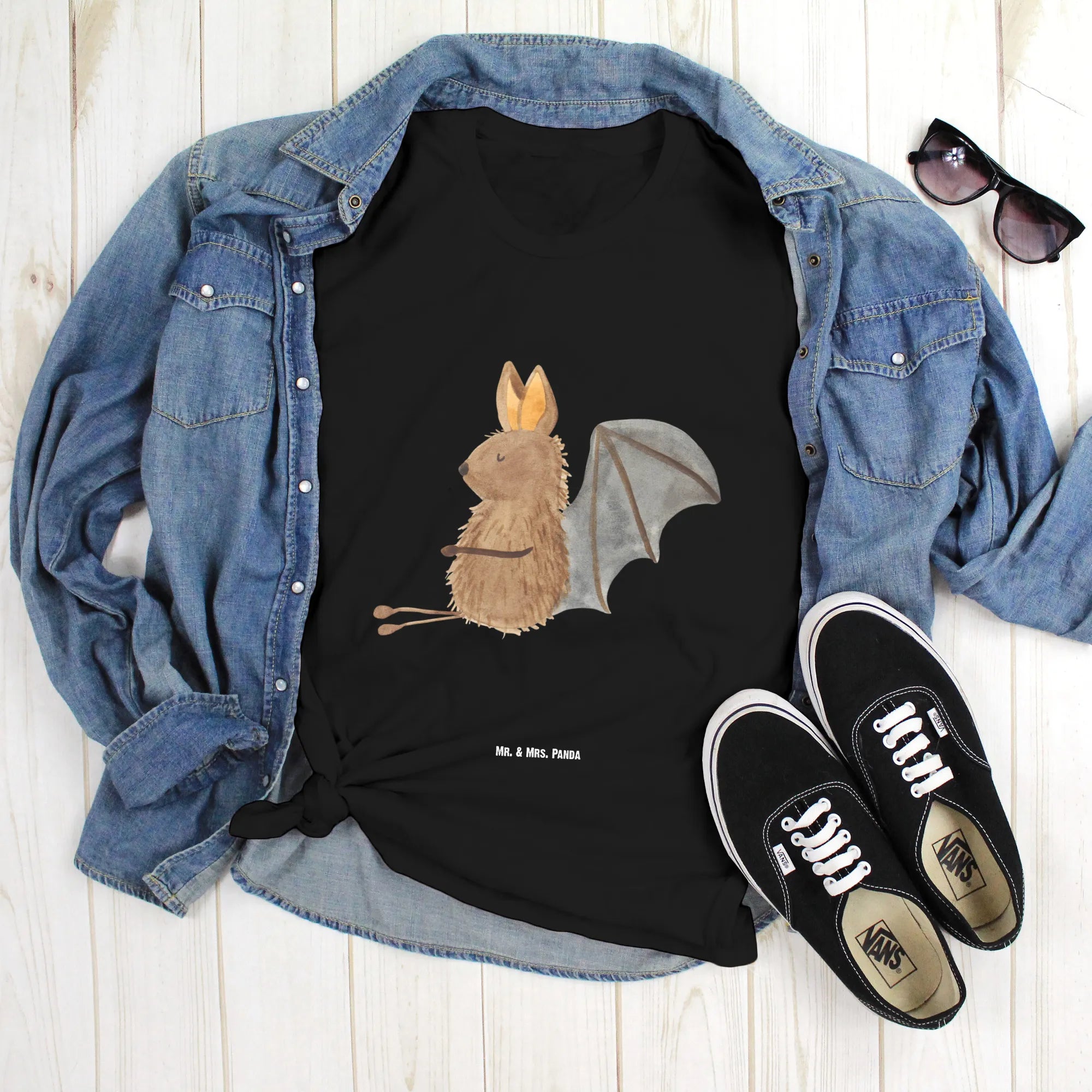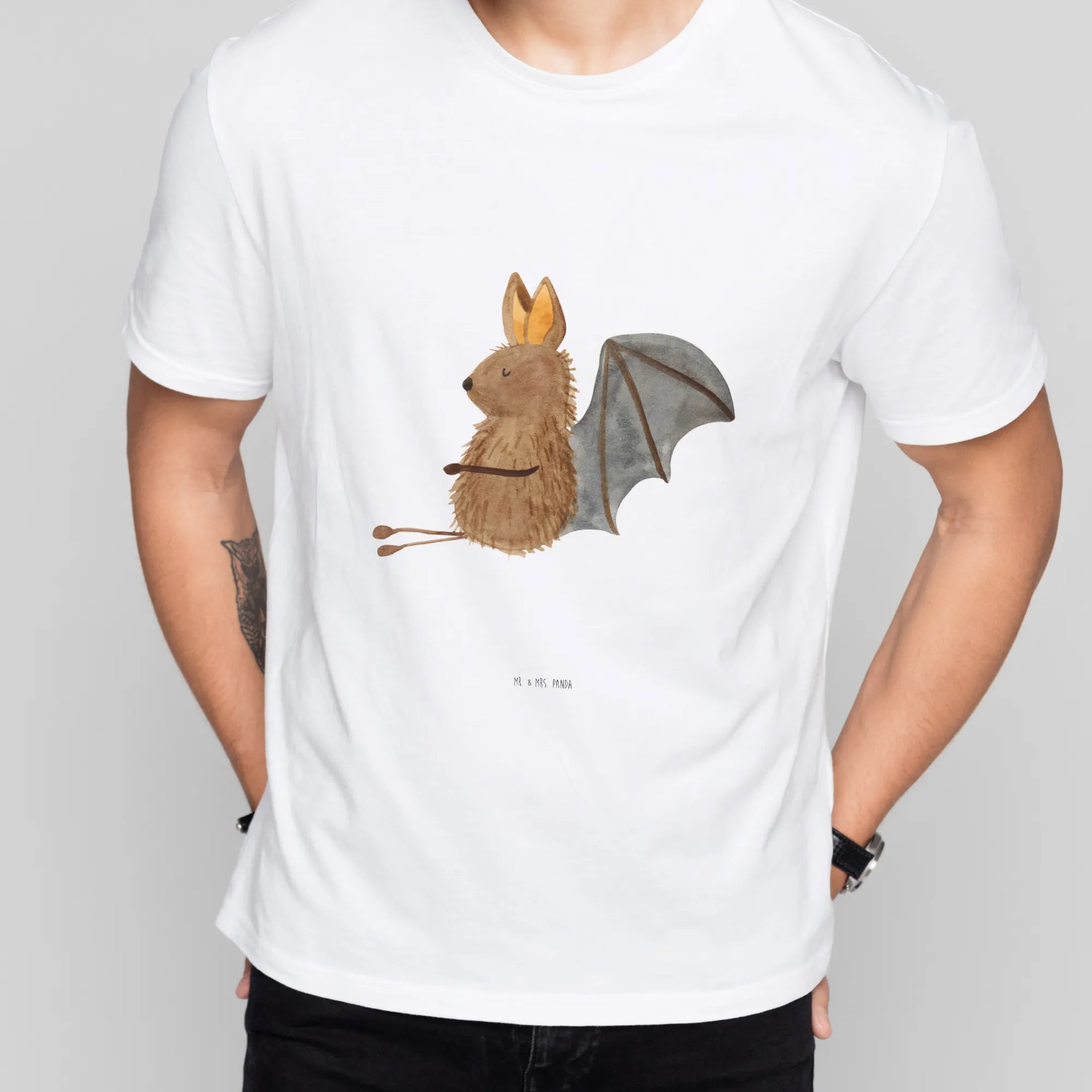 Mr. & Mrs. Panda Größe L T-Shirt – Fledermaus sitzend (Small World)