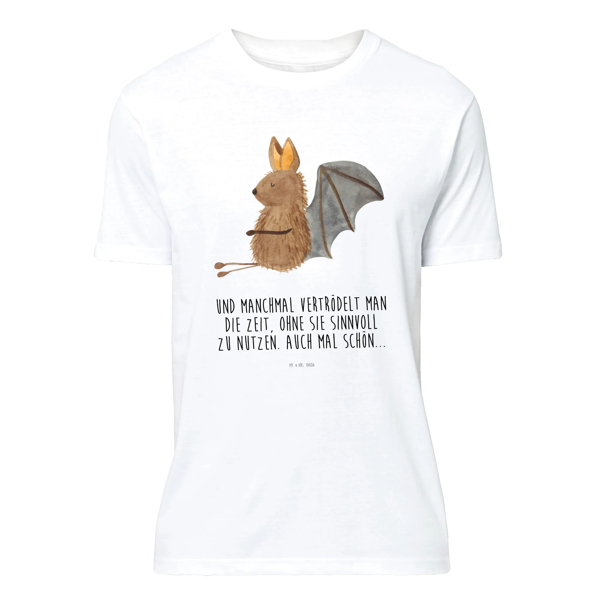 Die Fledermaus steht für eine entspannende Zeit und Motivation, einfach mal abzuschalten. Manchmal vertrödelt man die Zeit, ohne sie sinnvoll zu nutzen. Auch mal schön... genau das vermittelt unser Slogan! Ein T-Shirt, das nicht nur verwöhnt, sondern auch zum Nachdenken anregt.