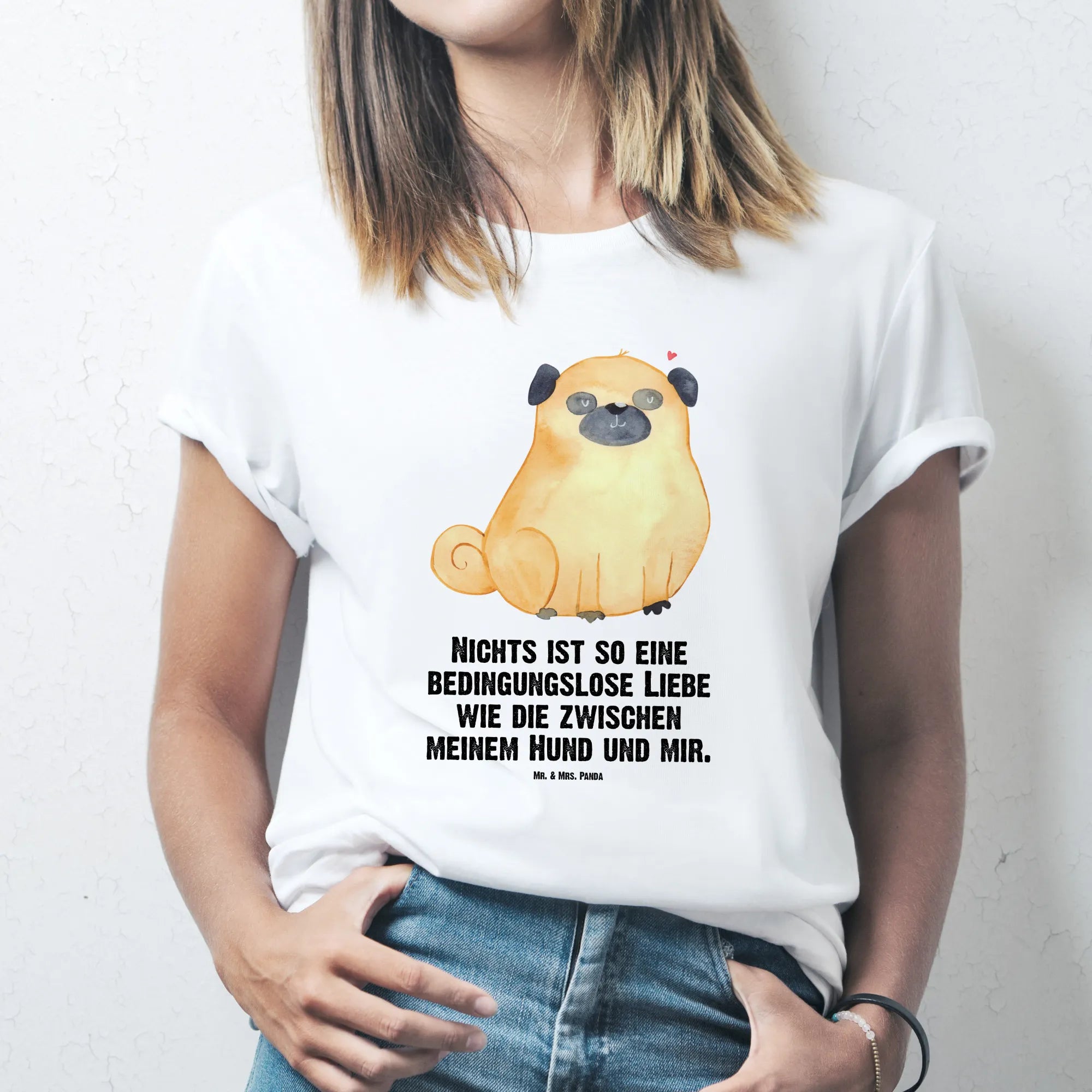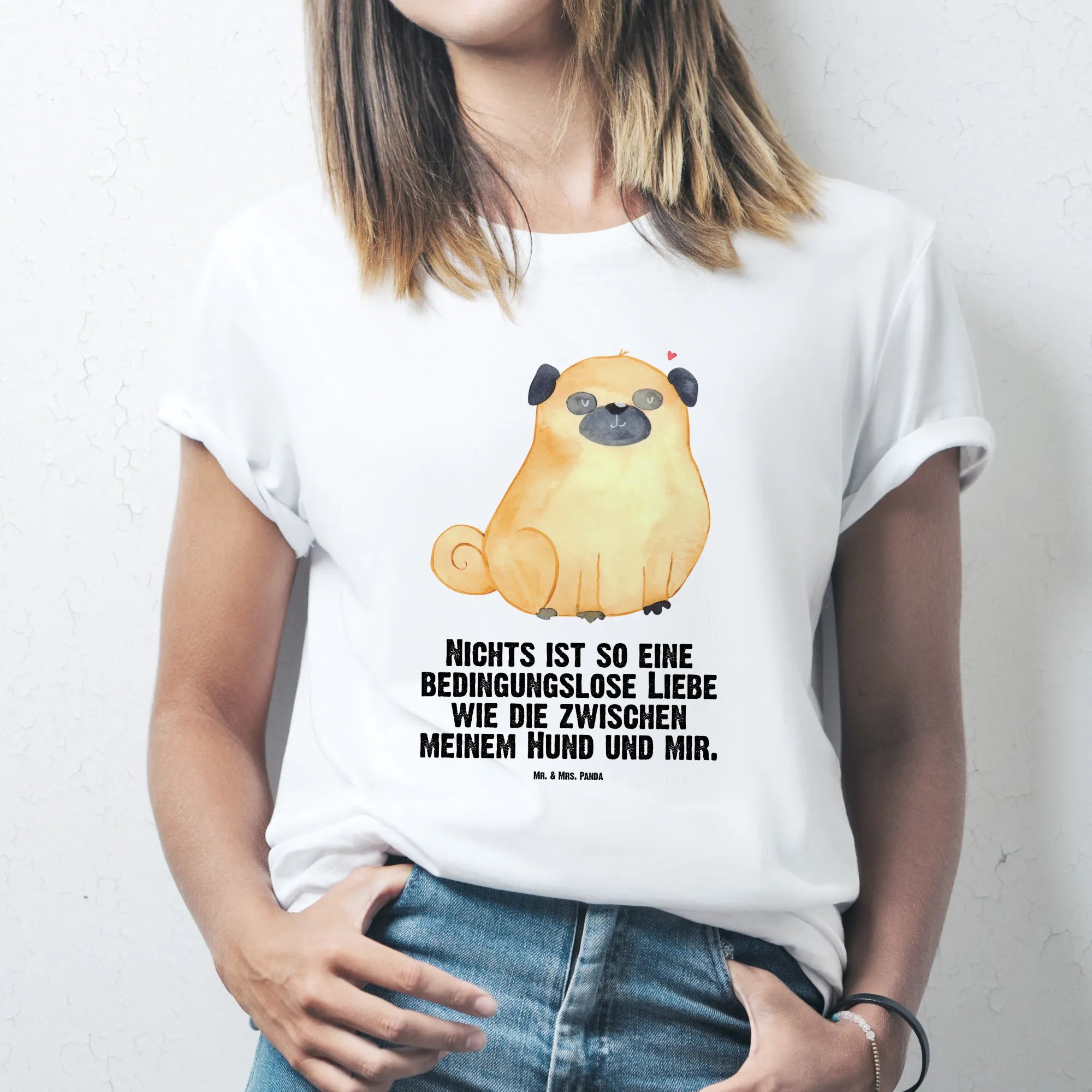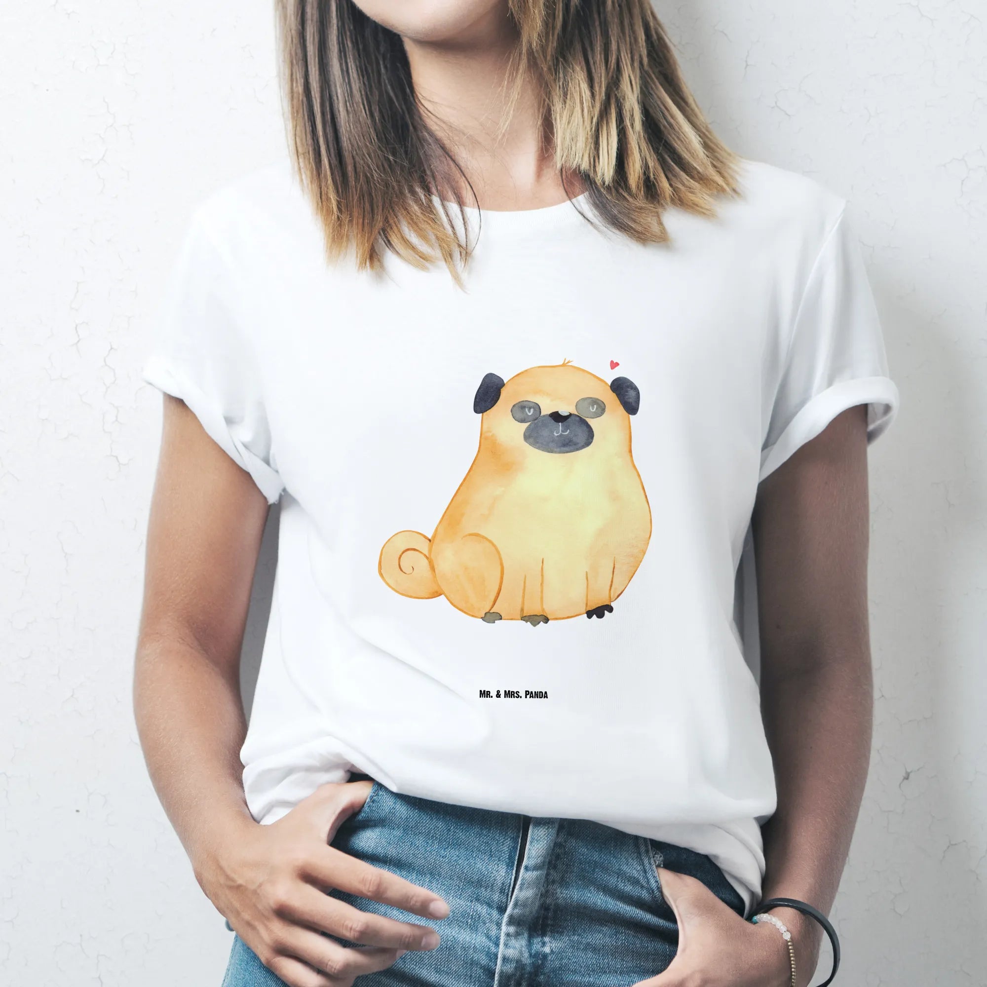 Alle Motive werden bei Mr. & Mrs. Panda mit viel Liebe entworfen. Die Aquarell-Illustrationen von Mrs. Panda sind fröhlich und einzigartig. Dieses Mops T-Shirt ist nicht nur ein Kleidungsstück, sondern ein Statement deiner Hundeliebe.
