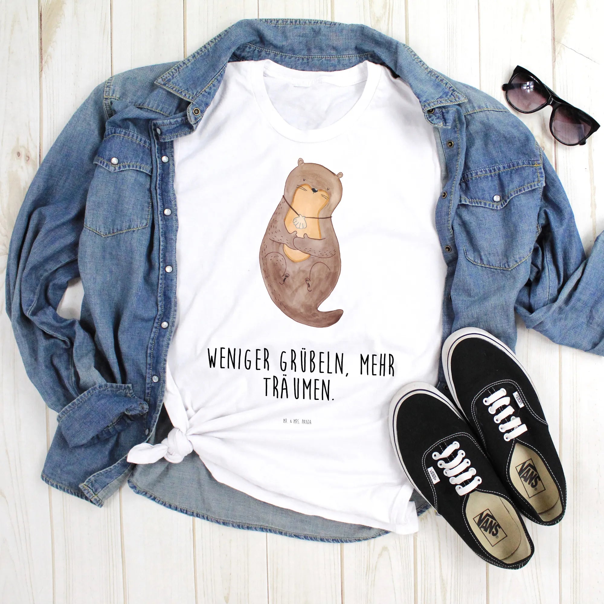 Mr. & Mrs. Panda Otter mit Muschelmedaillon - Weniger grübeln, mehr träumen - Geschenk