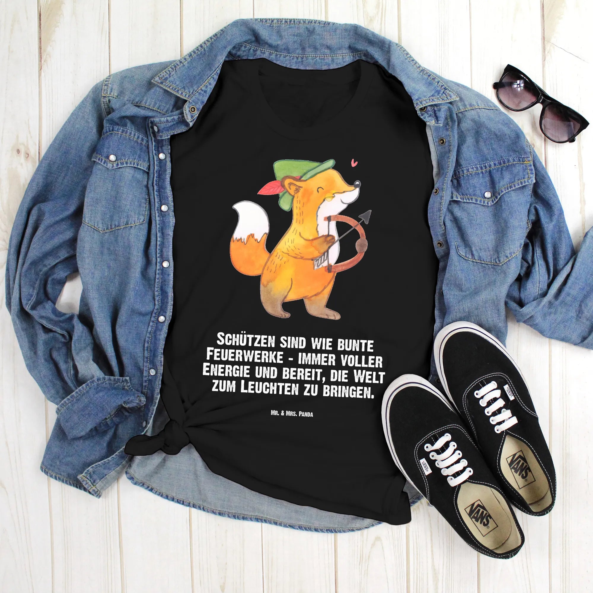 Der Fuchs auf dem T-Shirt, liebevoll von Mrs. Panda handgezeichnet, verkörpert das Lebensgefühl der Schützen: voller Energie, Humor und einem Funken Abenteuerlust. Du wirst mit einem breiten Lächeln durch die Welt gehen, während Du den Spruch "Schützen sind wie bunte Feuerwerke – immer voller Energie und bereit, die Welt zum Leuchten zu bringen." trägst. Das verbindet alle Schützen mit ihrem einzigartigen Charakter und ihrer herzlichen Art.