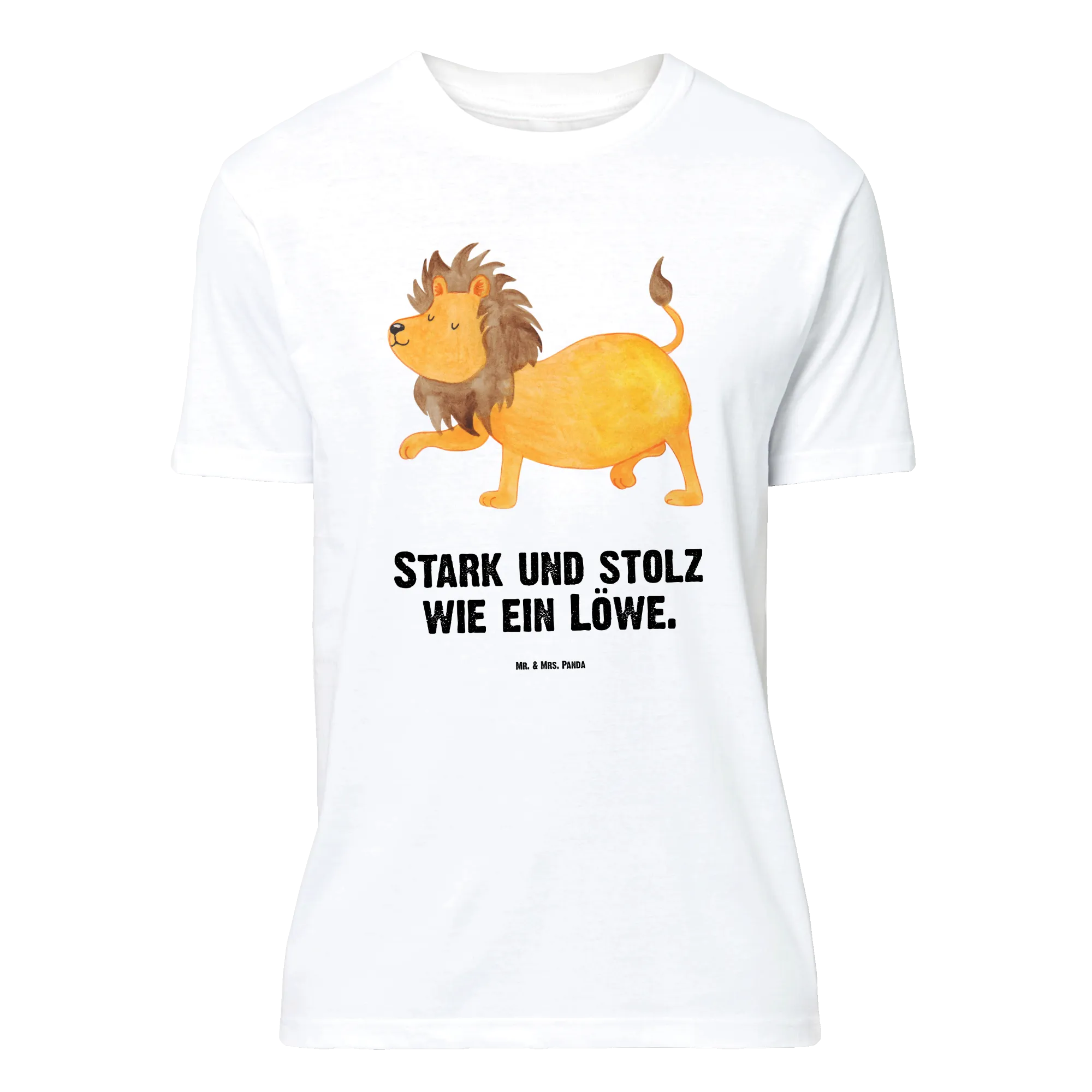 Perfekt für Löwen-Herzen: Dieses Größe S T-Shirt aus der Sternzeichen Kollektion von Mr. & Mrs. Panda vereint liebevolle Handarbeit mit fröhlichem Design. Unser handgezeichnetes Aquarellmotiv zeigt einen stattlichen, niedlichen Löwen mit dem Spruch „Stark und stolz