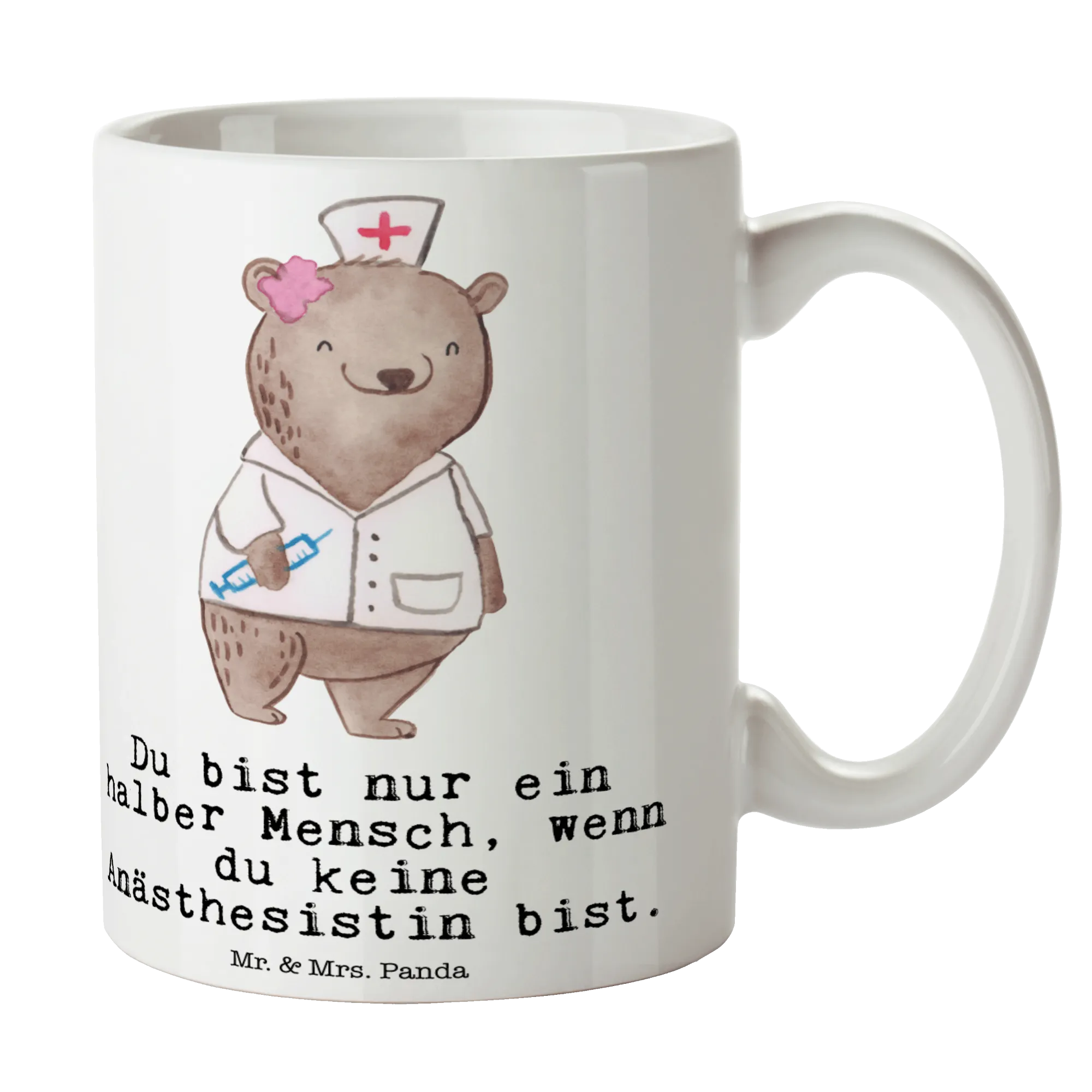 Trefft unseren fröhlichen Bären, der als Anästhesistin in einem weißen Kittel und mit einer Spritze strahlt. Dieses Motiv bringt Freude und Wärme in die Welt der Anästhesie. Mit dem kraftvollen Motto „Du bist nur ein halber Mensch, wenn du keine Anästhesistin bist“ verdeutlicht der Bär, wie wichtig und bedeutend dieser Beruf ist. Als Narkoseärztin kümmere ich mich um das Wohlbefinden meiner Patienten und sorge dafür, dass sie sich sicher fühlen. In jedem Krankenhausaufenthalt bringe ich eine Portion Humor und Herzlichkeit mit, um die Ängste zu lindern und Vertrauen aufzubauen. Die Anästhesie ist nicht nur ein Job, sondern eine Leidenschaft, die es verdient, gefeiert zu werden.
