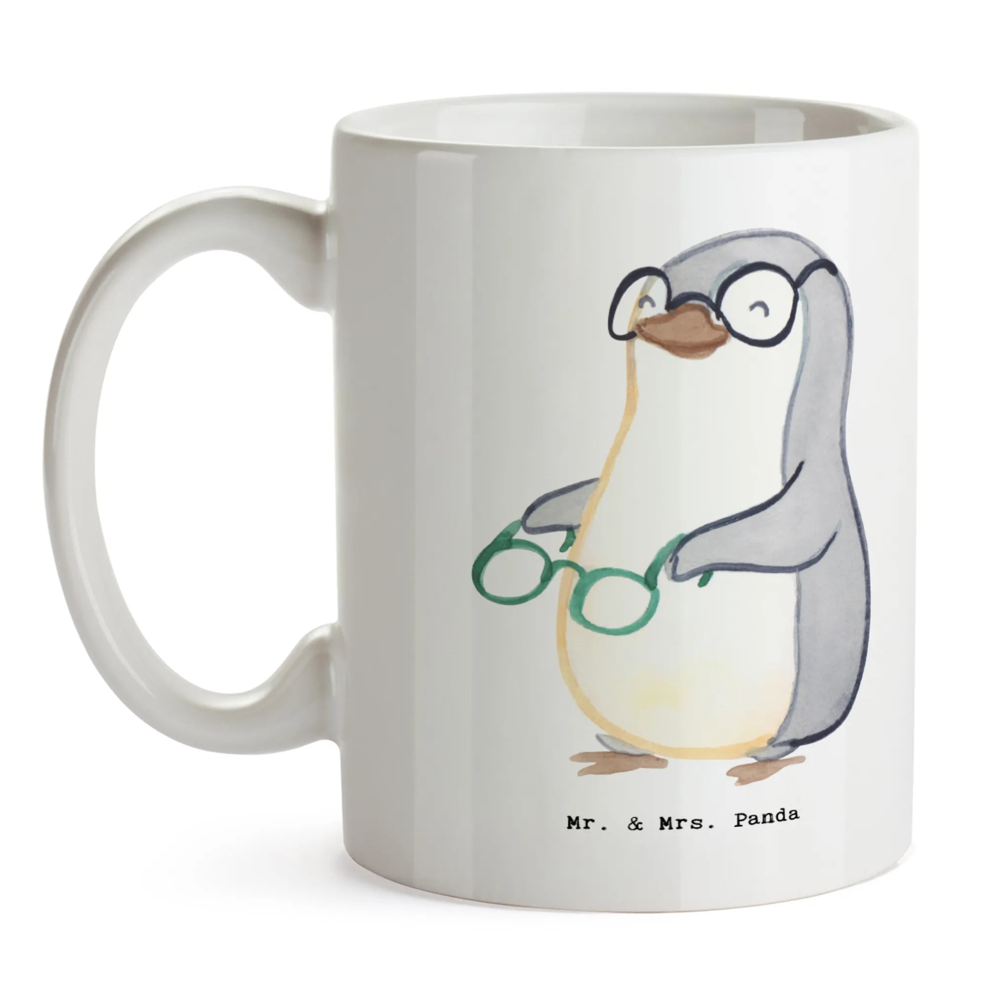 Egal, ob zum Berufseinstieg, zur Beförderung, zum Jubiläum oder zum Abschied – diese Tasse ist ein kreatives und persönliches Geschenk, das sicher für Freude sorgt. Der niedliche Pinguin, der stolz seine Brille präsentiert, zaubert jedem Augenoptiker ein Lächeln ins Gesicht.
