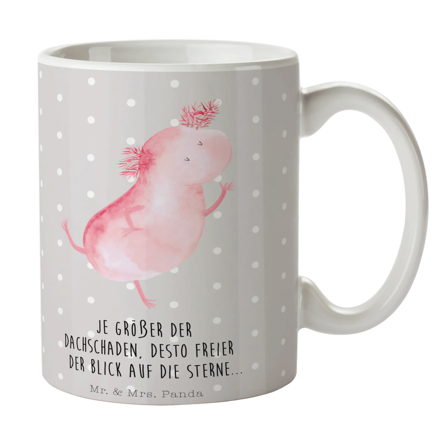 Tasse Axolotl tanzt - mit Spruch - Keramik - Grau Pastell
