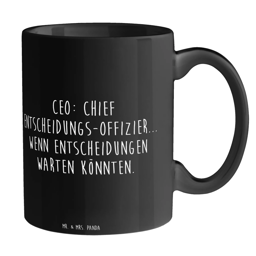 Suchst Du das perfekte Geschenk für eine Führungskraft? Unsere Mr. & Mrs. Panda Tasse „CEO“ aus der Berufe-Kollektion trifft genau ins Schwarze: ein liebevoll gestalteter Kaffeebecher mit einem frechen Spruch, der auf jedem Schreibtisch für gute Laune sorgt. „CEO: Chief Entscheidungs-Offizier... wenn Entscheidungen warten könnten.“ – kurz, prägnant und zum Schmunzeln 🙂