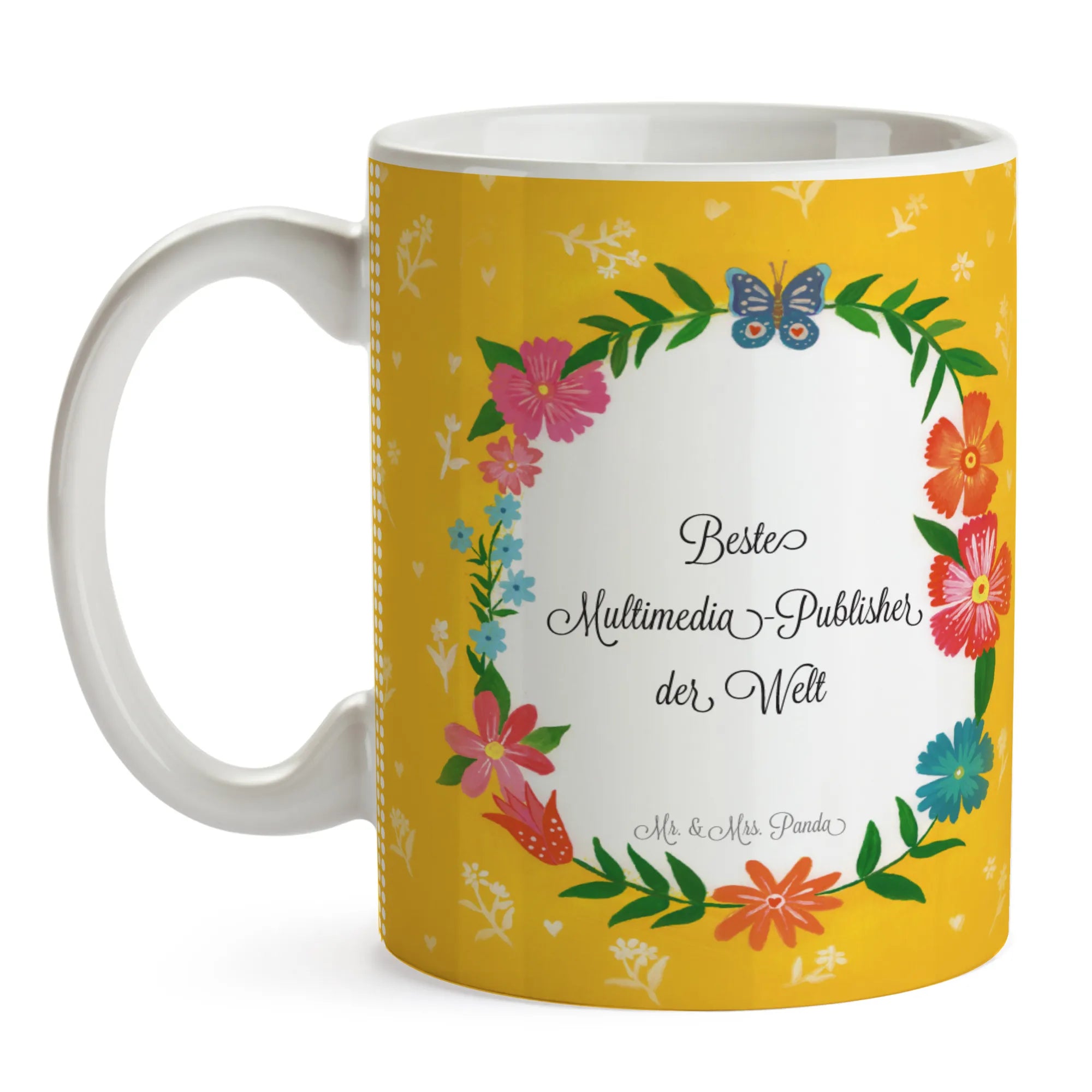 Mit dem coolen Slogan "Multimedia-Publisher" auf der Vorderseite zeigt diese Keramiktasse, dass Du stolz auf Deinen Beruf bist. Sie eignet sich hervorragend als Geschenk zur Abschlussfeier, zur bestandenen Berufsausbildung oder einfach nur als kleine Aufmerksamkeit für Deine Kollegen oder Freunde.