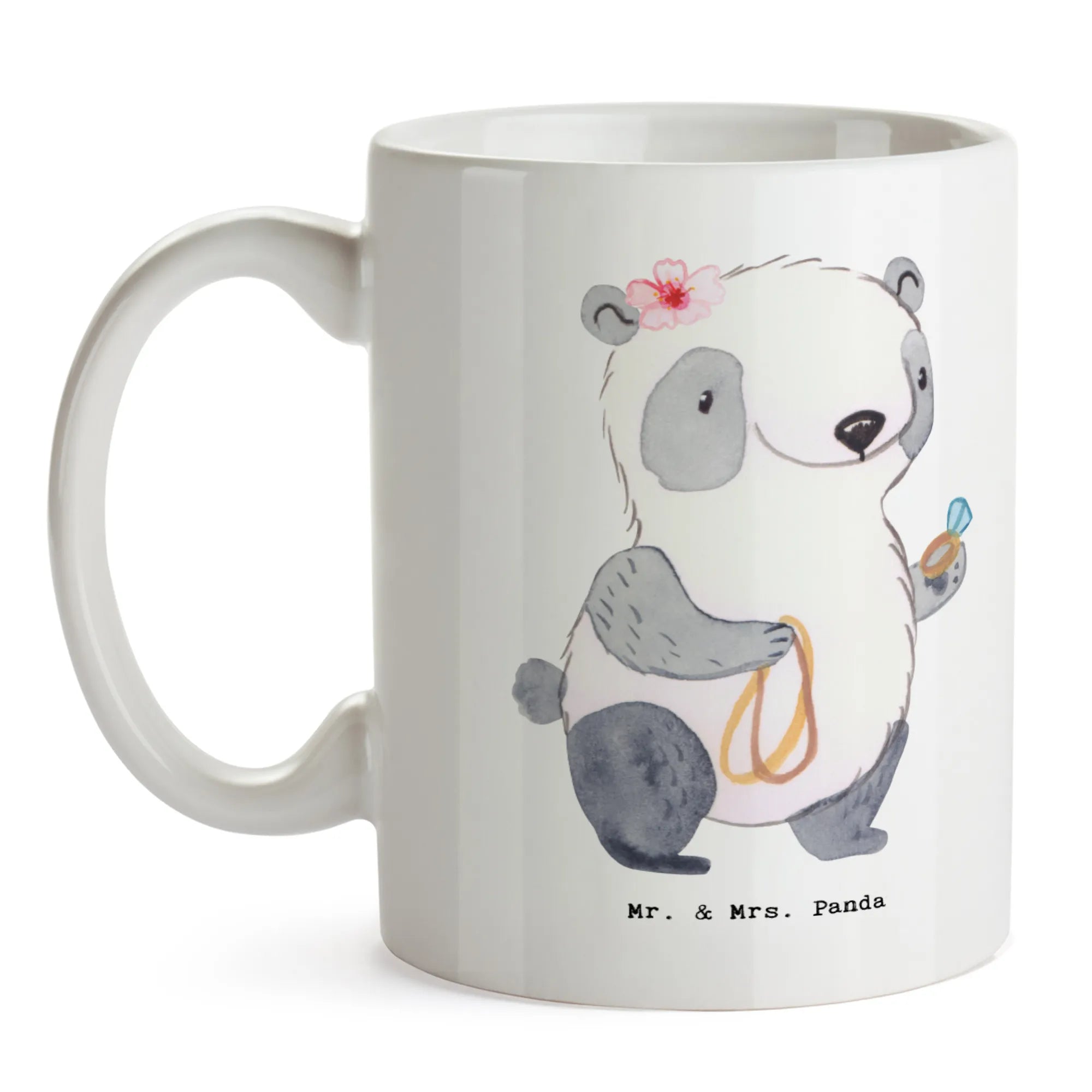 Mache deinen Kollegen oder Freunden eine Freude mit dieser süßen Goldschmiedin-Tasse! Egal ob zum Ausbildungsstart, zum Berufsabschluss oder einfach, um jemandem ein Lächeln ins Gesicht zu zaubern – diese Tasse ist das perfekte Geschenk für jeden Anlass. Lass dich von der Kreativität und dem Charme von Mr. & Mrs. Panda inspirieren und finde das ideale Geschenk in der Berufe Kollektion. Entdecke die Freude am Schenken und teile die Liebe zur Kunst des Schmuckmachens, denn Geschenke von Herzen bleiben niemals unbemerkt!
