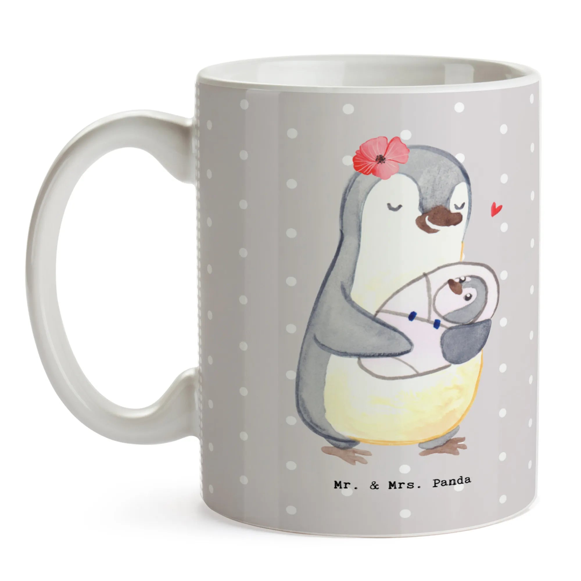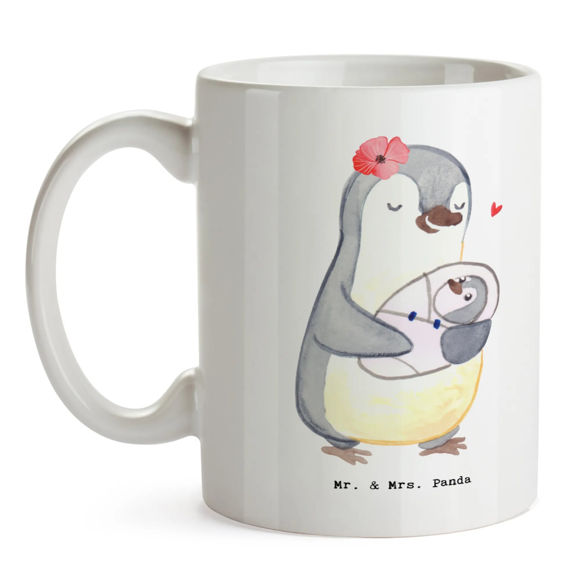 Die Krippenerzieherin mit Herz Tasse von Mr. & Mrs. Panda ist nicht nur eine wunderschöne spülmaschinenfeste Keramiktasse, sondern auch ein zauberhaftes Geschenk für all jene großartigen Menschen, die in Krippen und Kitas arbeiten. Mit ihrem süßen Motiv eines weiblichen Pinguins, der ein Baby-Pinguin im Arm hält, und dem liebevollen Spruch „Du bist nur ein halber Mensch, wenn du keine Krippenerzieherin bist“, ist diese Tasse ein echter Hingucker und bringt Freude in den Alltag einer Krippenerzieherin.