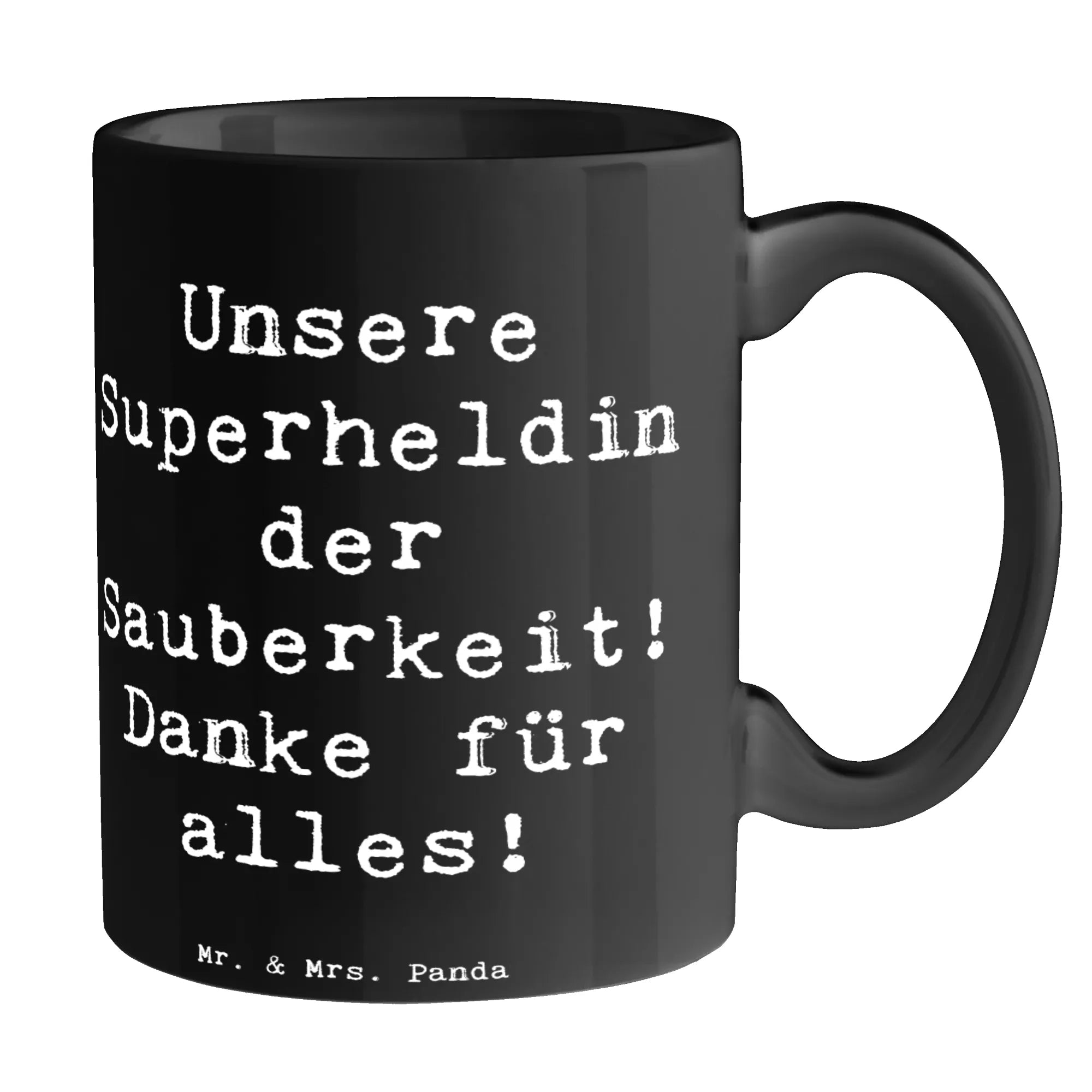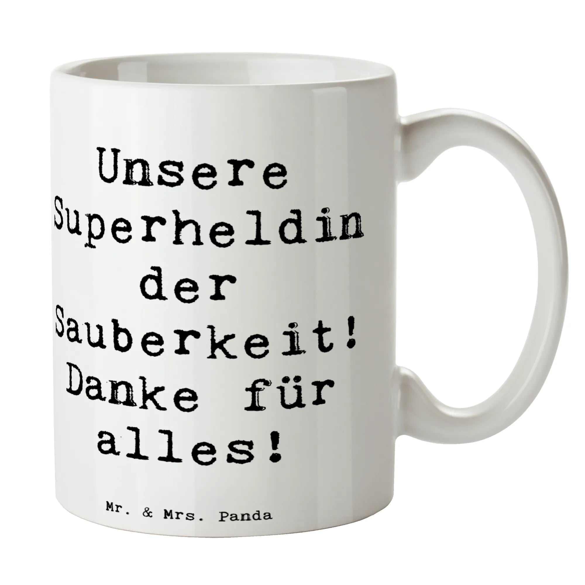 Unsere Superheldin der Sauberkeit! Danke für alles! – Mit dieser fröhlichen Mr. & Mrs. Panda Tasse Putzfrau schenkst du Anerkennung und ein Lächeln zugleich. Ideal als Kaffeetasse oder Teetasse für die Reinigungskraft, Putzfrau oder Haushaltshilfe, die täglich Großes leistet.
