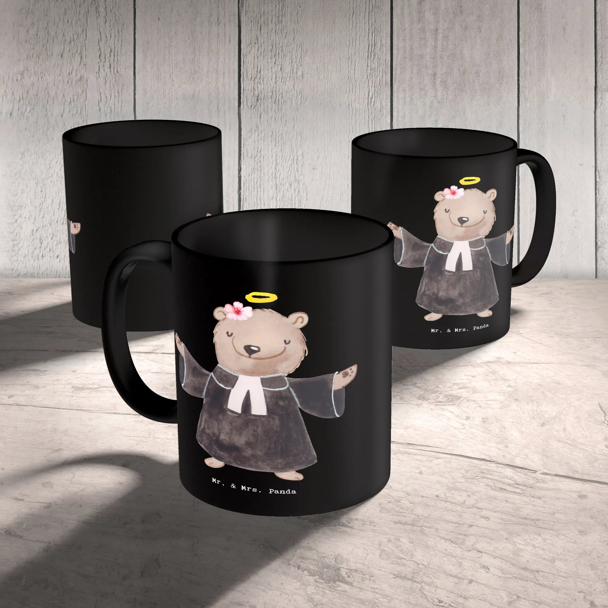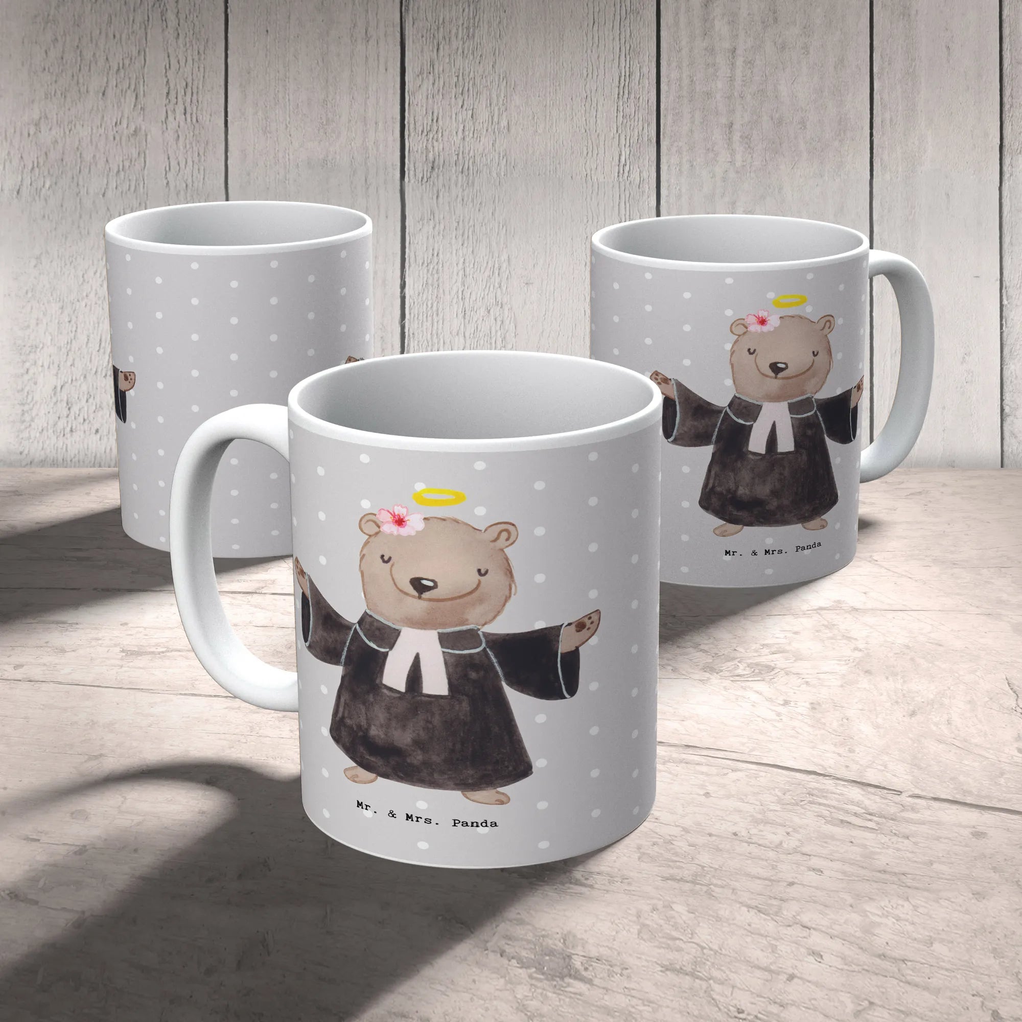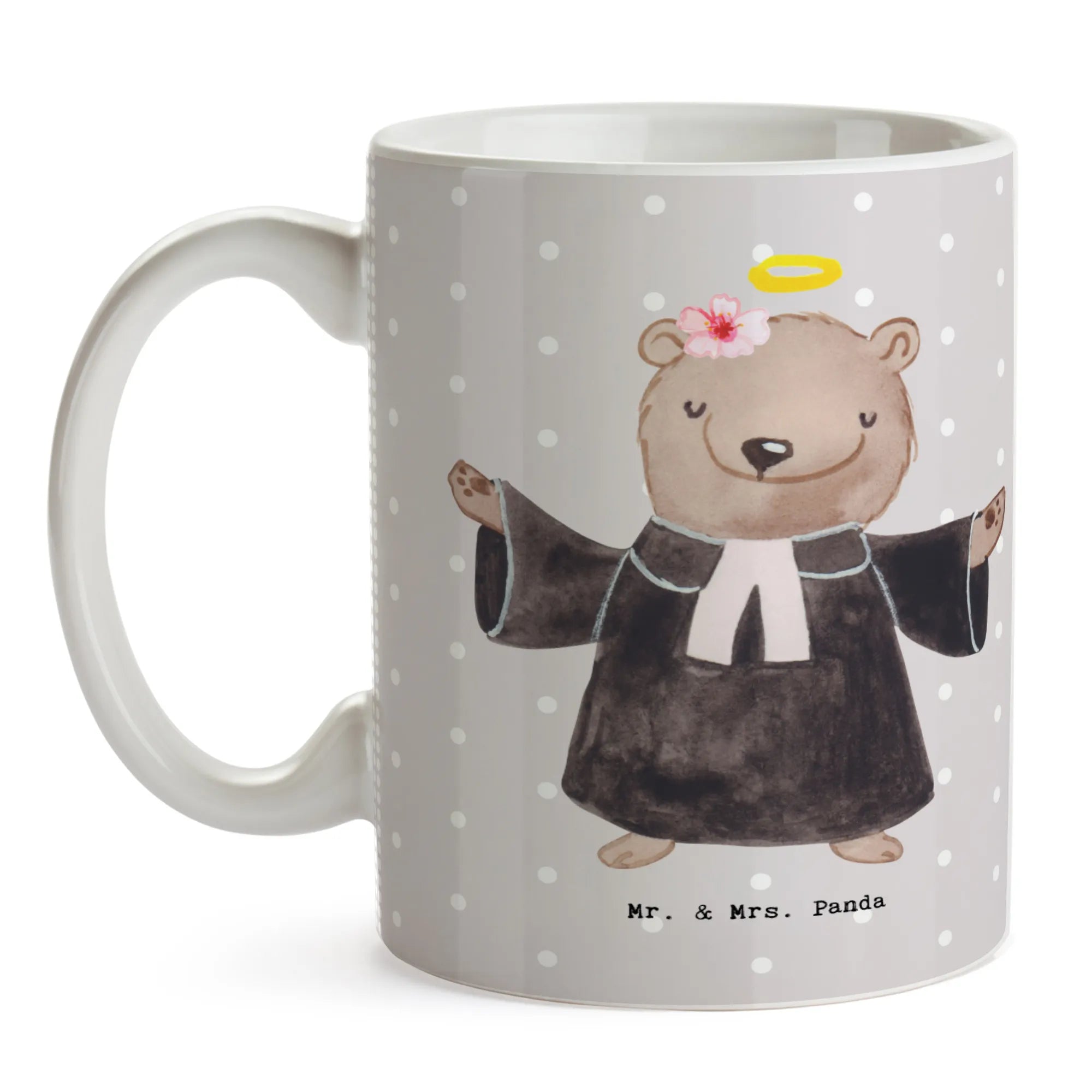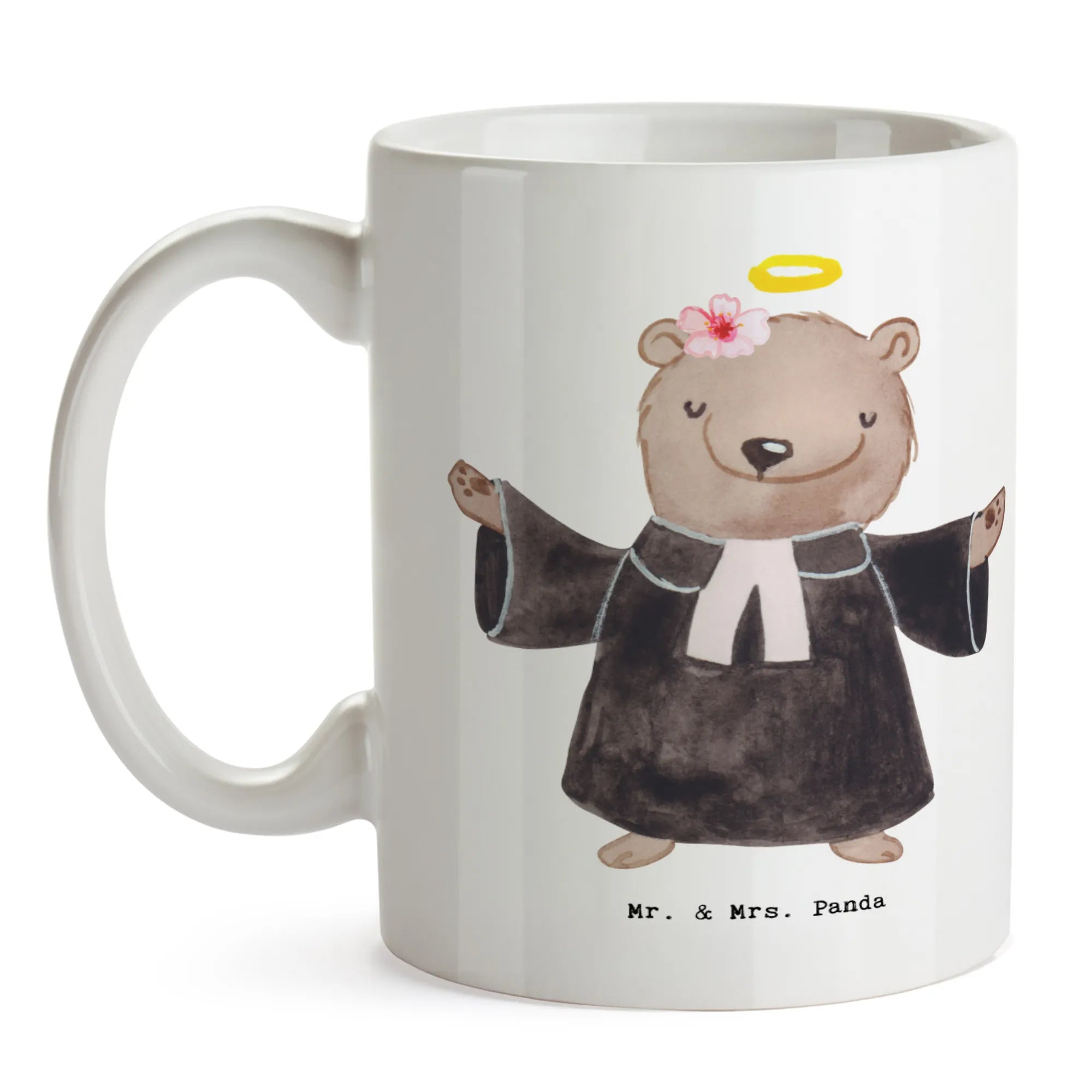 Die Tasse "Pfarrerin mit Herz" von Mr. & Mrs. Panda ist das perfekte Geschenk für eine ganz besondere Frau in einem ebenso besonderen Beruf – die Pfarrerin! Ob zum Jobbeginn, zur Beförderung, zum Jubiläum oder einfach nur, um Danke zu sagen; diese wunderschöne spülmaschinenfeste Keramiktasse wird garantiert ein Lächeln auf ihr Gesicht zaubern. Das liebevoll gestaltete Motiv eines süßen Bären in Priesterrobe zeigt, wie wichtig die Arbeit einer Pfarrerin ist.