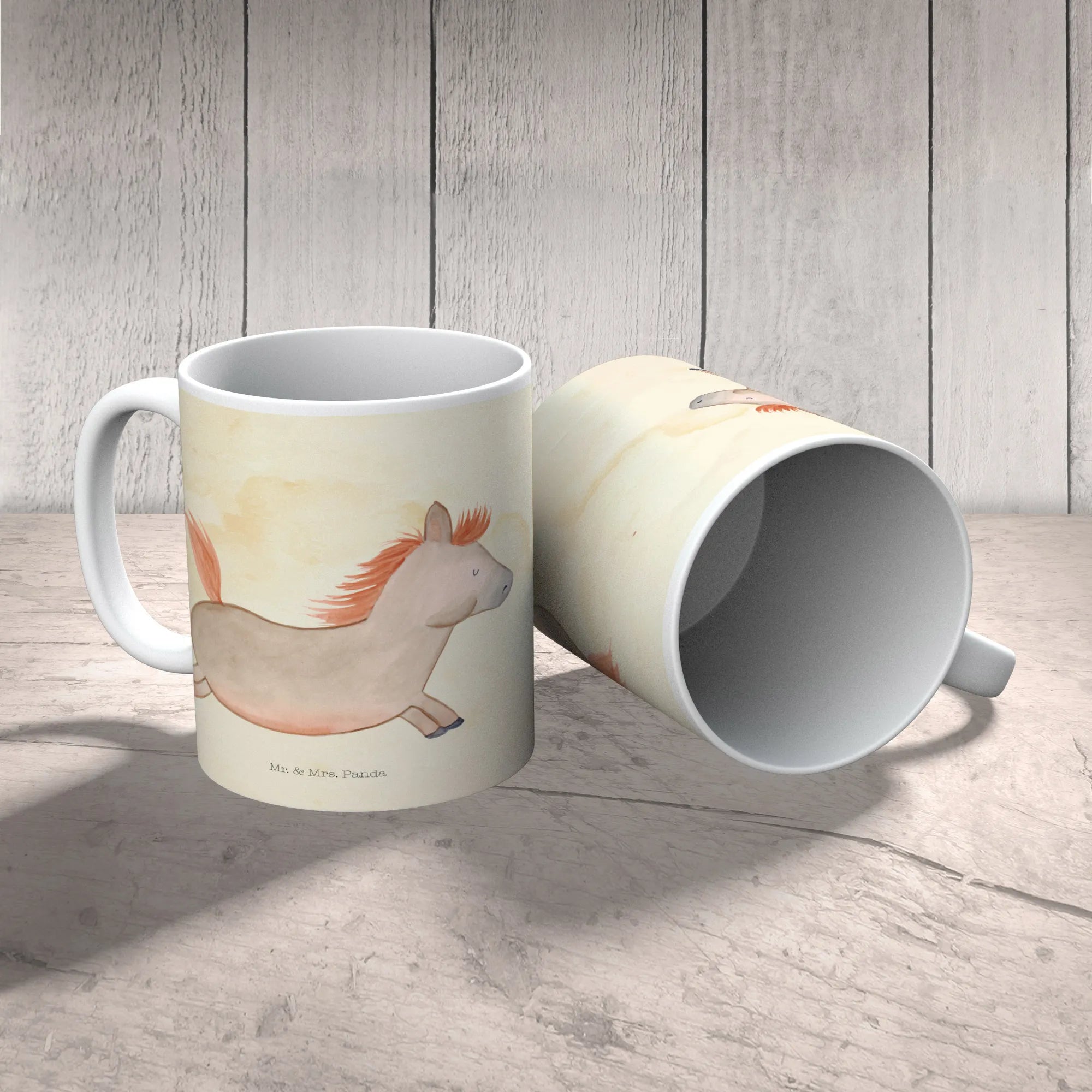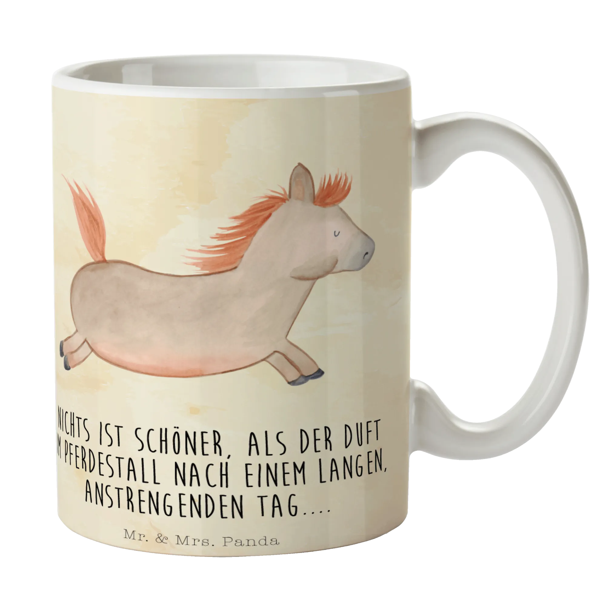 Wenn du auf der Suche nach einer tollen Kaffeetasse, Teetasse oder einem Becher mit einem liebevollen Motiv bist, dann ist diese Tasse von Mr. & Mrs. Panda genau das Richtige für dich. Hol dir jetzt deine Tasse Pferd springt und genieße jeden Schluck auf besondere Art und Weise!