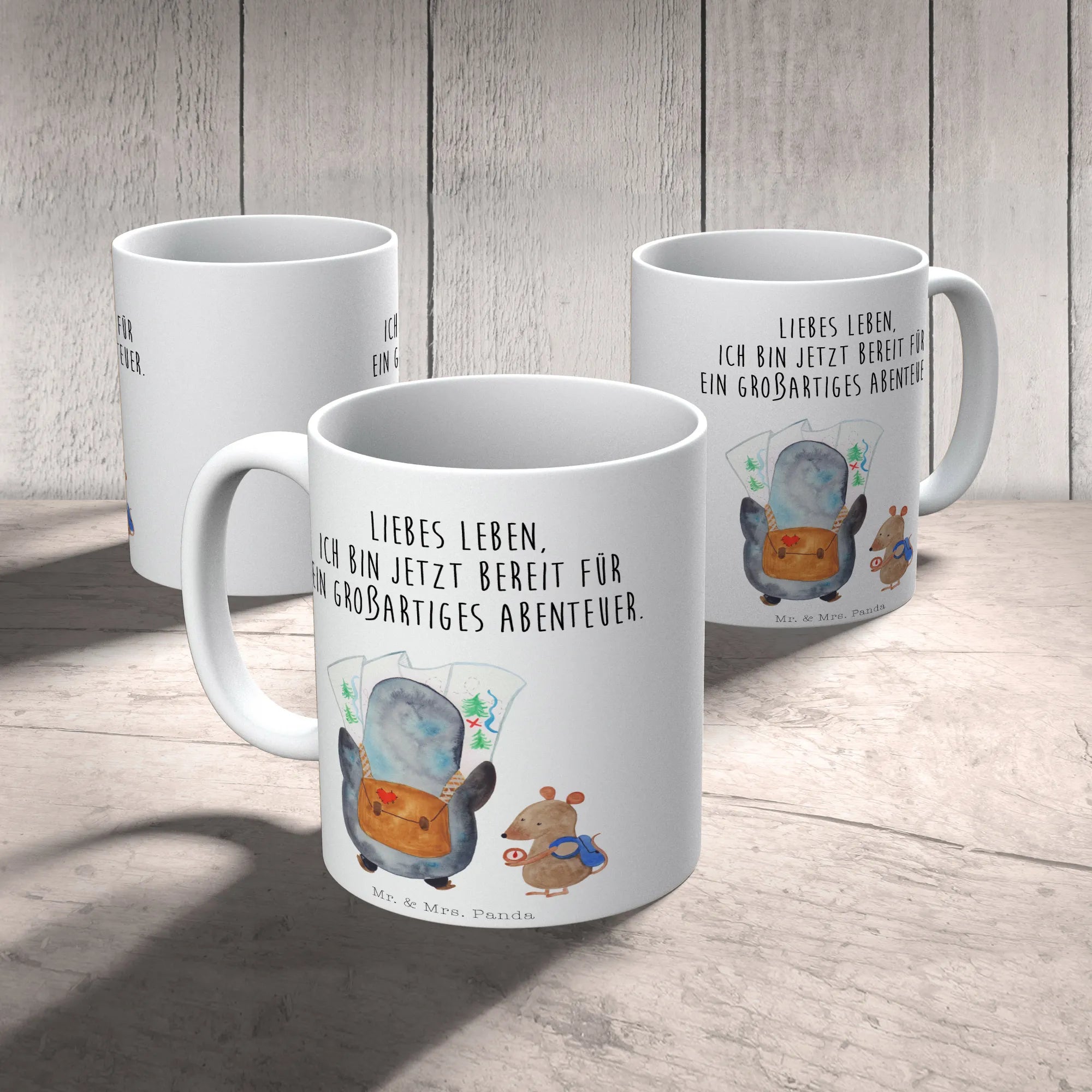 Mr. & Mrs. Panda Motiv - Pinguin & Maus als Wanderer: Entdecker des Lebens