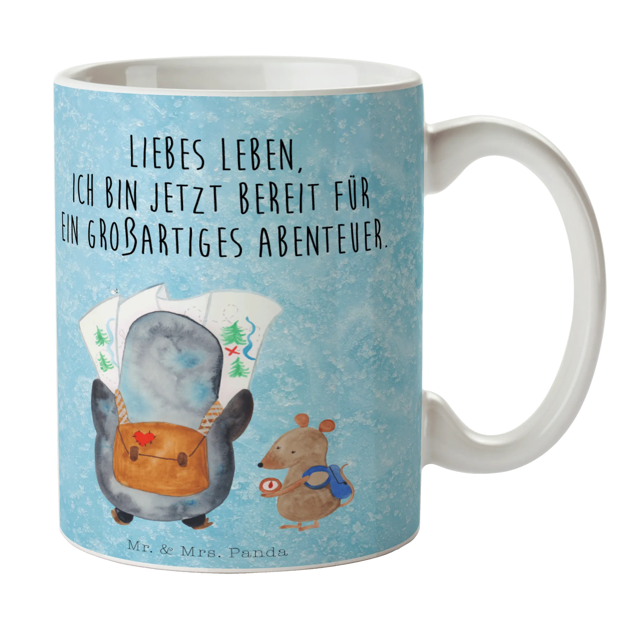 Tasse Pinguin & Maus Wanderer - mit Spruch - Keramik - Eisblau