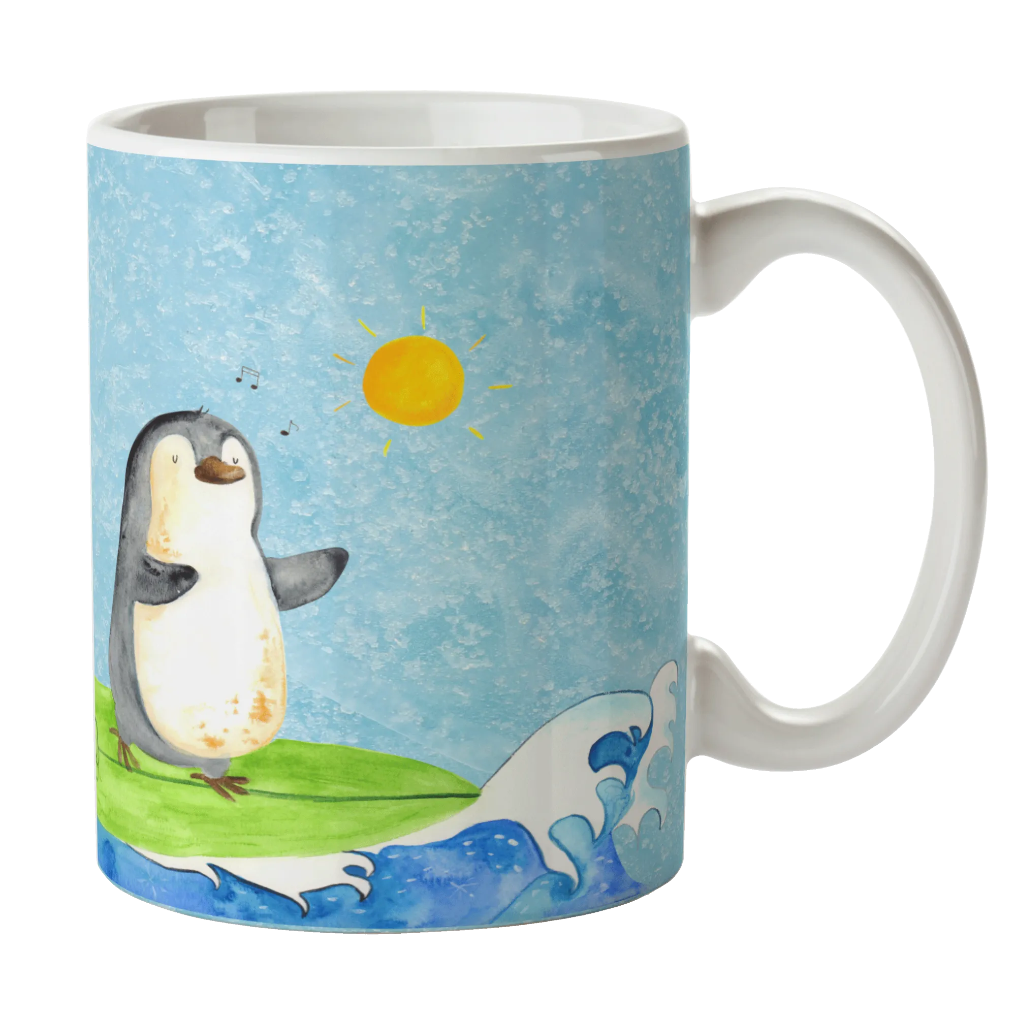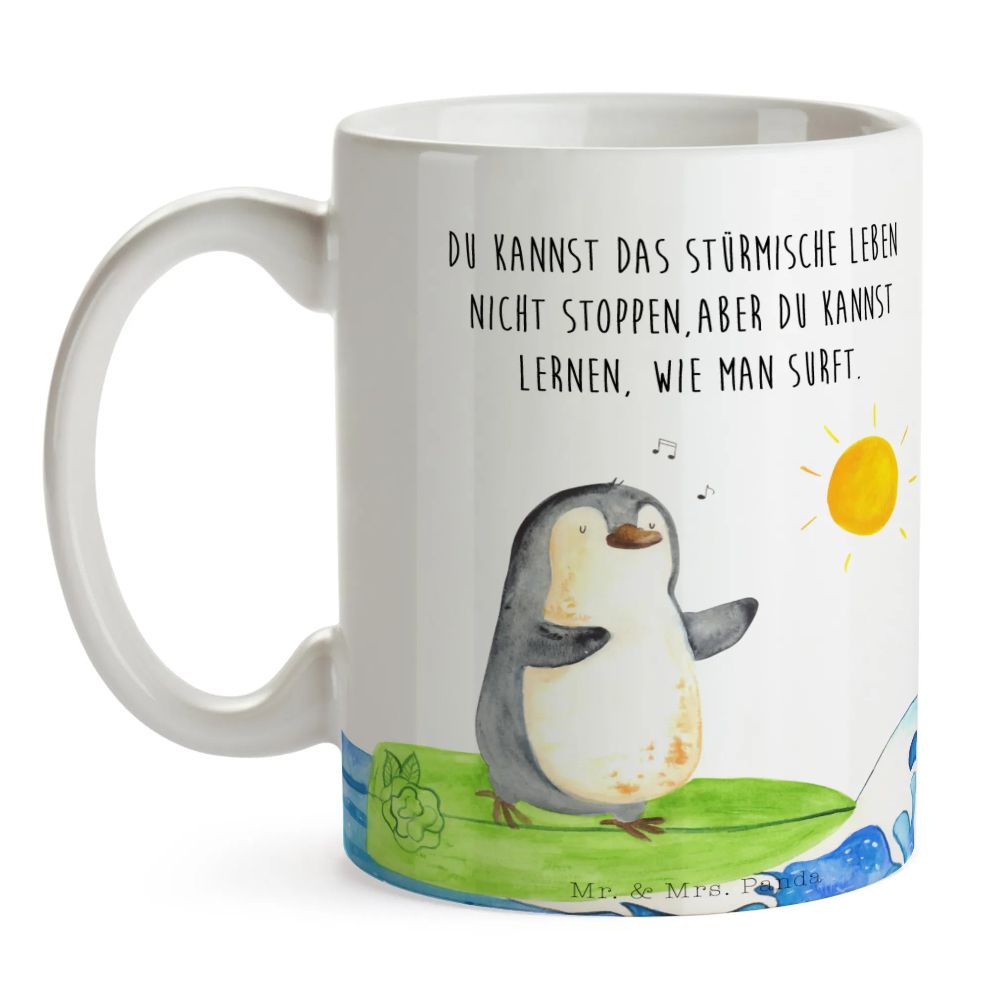 Tasse Pinguin Surfer - mit Spruch - Keramik - Weiß