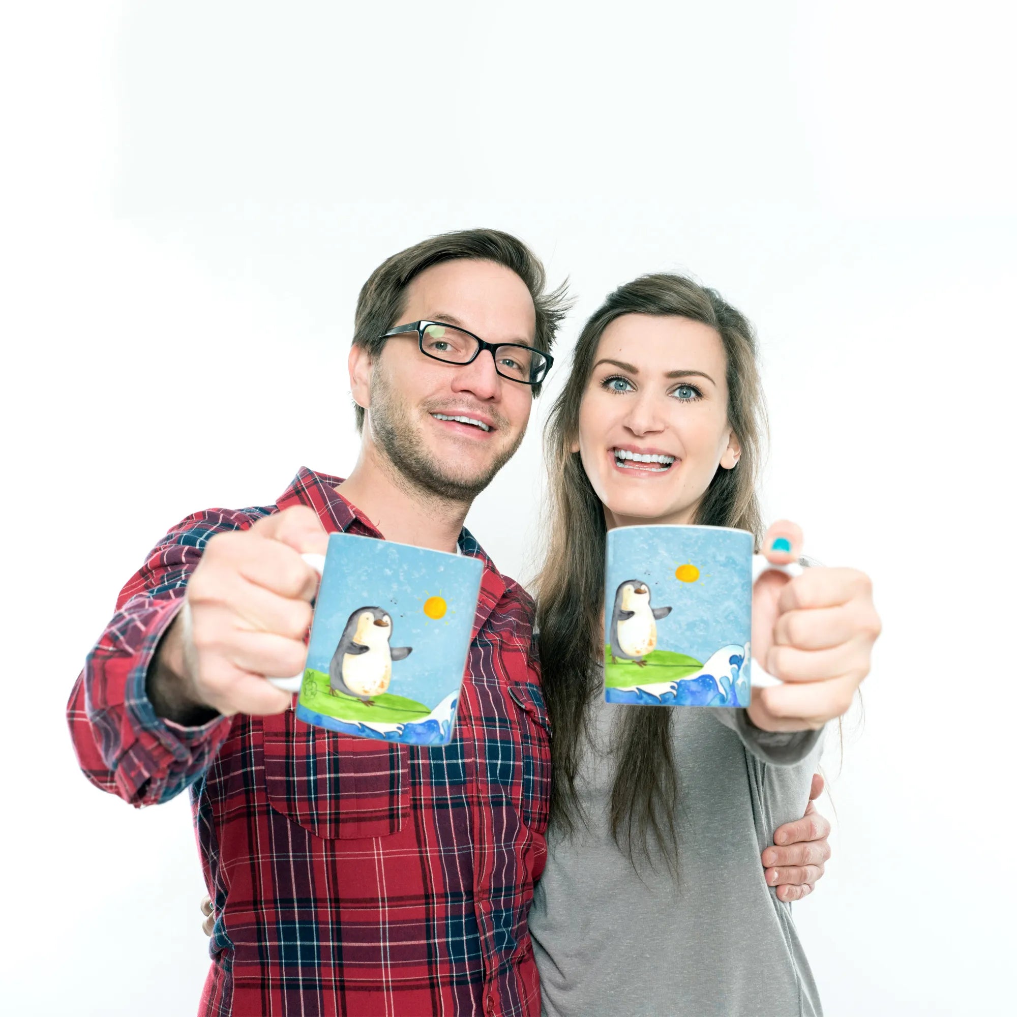 Lass dich inspirieren und spüre die Kräfte des Meeres mit der Pinguin Surfer Tasse von Mr. & Mrs. Panda. Sag Ja zum Leben, das wie das Surfen auf den Wellen ist!