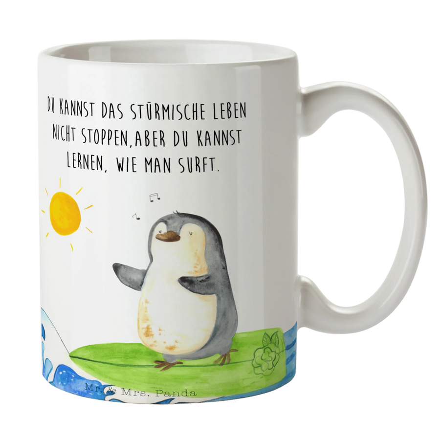 Entdecke die bezaubernde Kaffeetasse Pinguin Surfer aus der Pinguin-Kollektion von Mr. & Mrs. Panda! Diese wunderschöne, spülmaschinenfeste Keramiktasse ist der perfekte Begleiter für alle, die das Leben in vollen Zügen genießen und gerne eine Tasse Kaffee oder Tee auf ihrem Schreibtisch stehen haben. Mit einem fesselnden Motiv eines süßen Pinguins, der mutig auf seinem Surfbrett die Wellen reitet, versprüht die Tasse Lebensfreude und inspiriert dich dazu, deine eigenen Herausforderungen im Leben anzugehen!