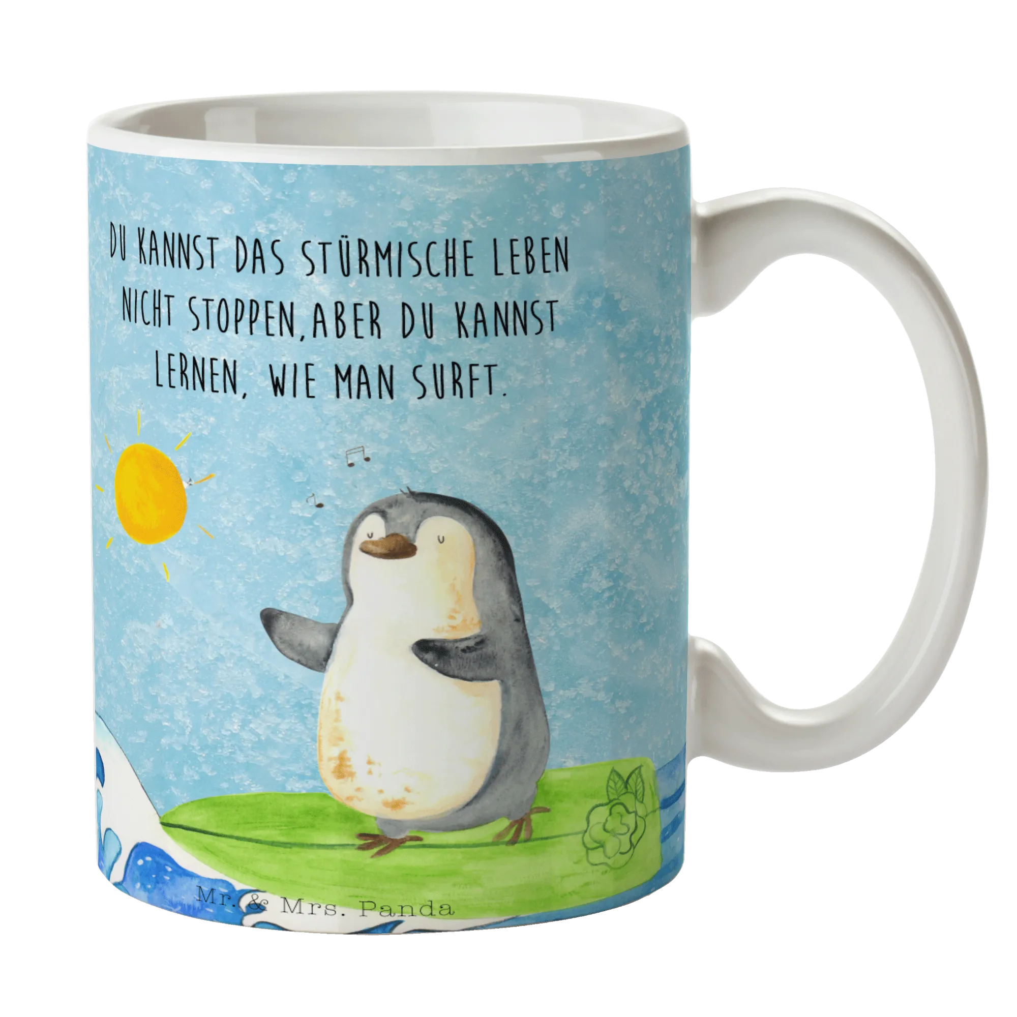 Die Kaffeetasse Pinguin Surfer von Mr. & Mrs. Panda ist der perfekte Begleiter für all jene, die das Leben in vollen Zügen genießen möchten.