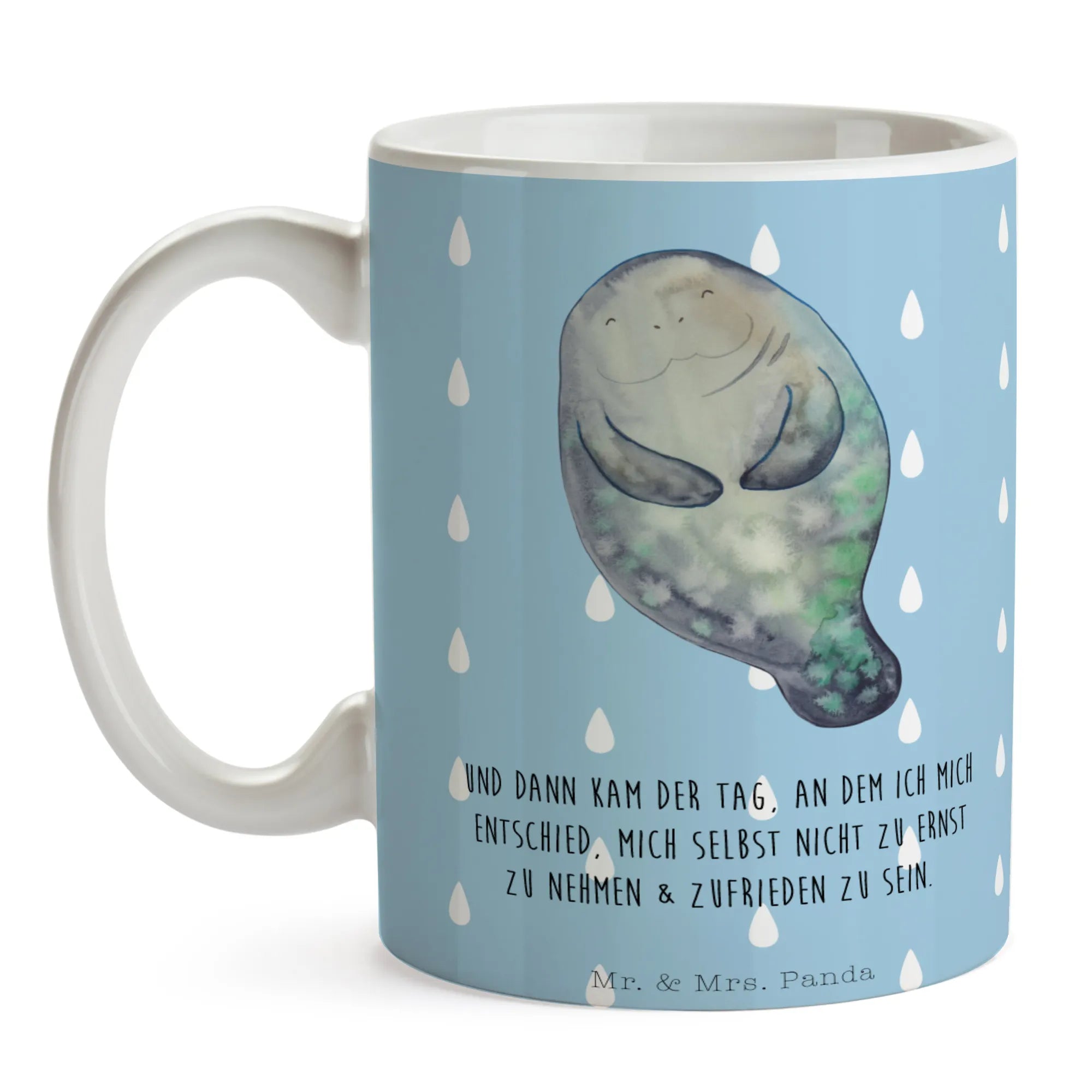 Die Tasse Seekuh happy aus der wunderschönen Meerestiere Kollektion von Mr. & Mrs. Panda ist mehr als nur eine Tasse – sie ist ein liebevolles Erlebnis! Diese zauberhafte Keramiktasse bringt den Zauber des Meeres direkt in dein Zuhause oder ins Büro. Mit einem harmonischen Design, das vor allem in sanften Blau- und Grautönen erstrahlt, ist sie perfekt dafür geeignet, deinen Morgenkaffee oder deine Teepause zu bereichern.