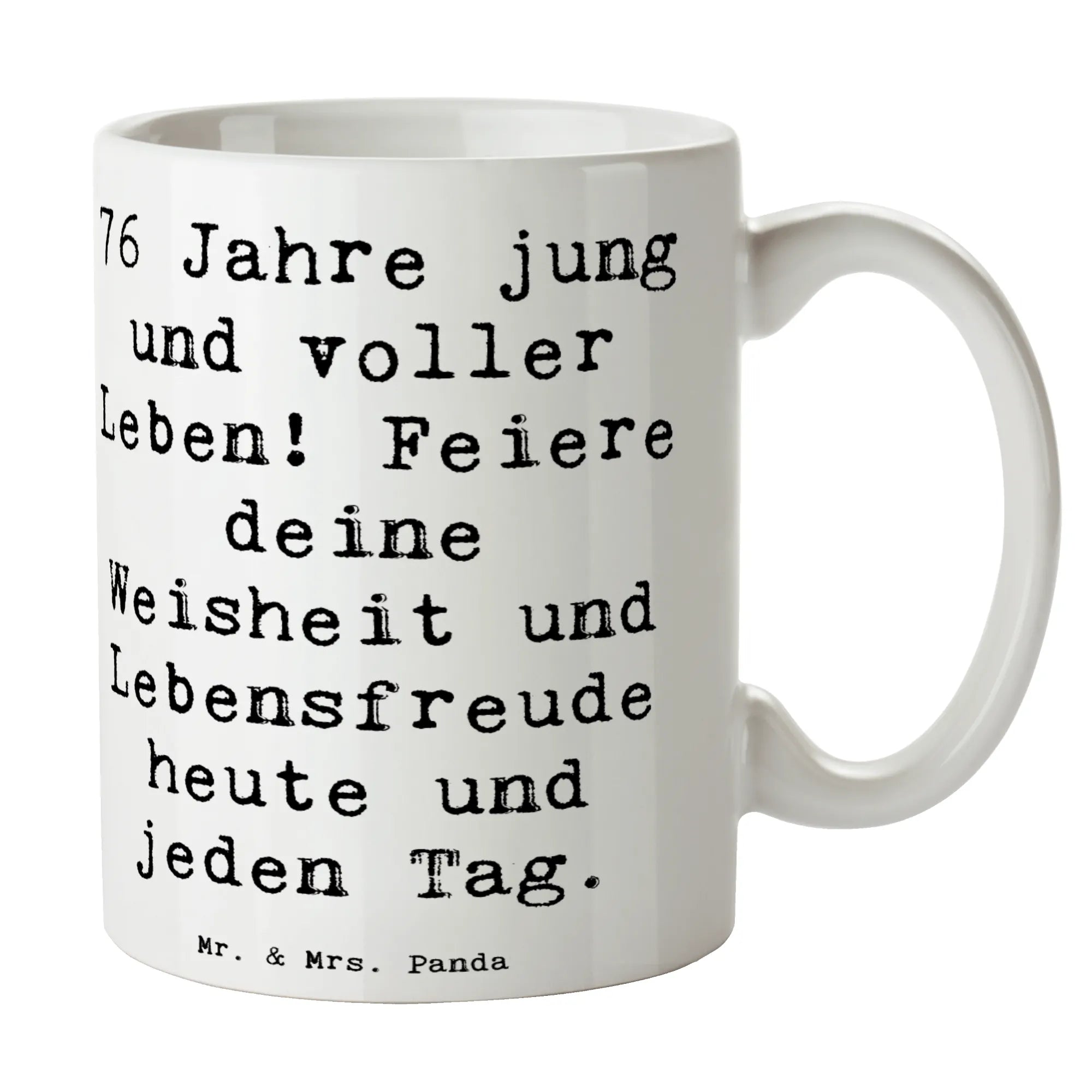 Tasse Spruch 76. Geburtstag Jung und Lebendig – Mr. & Mrs. Panda