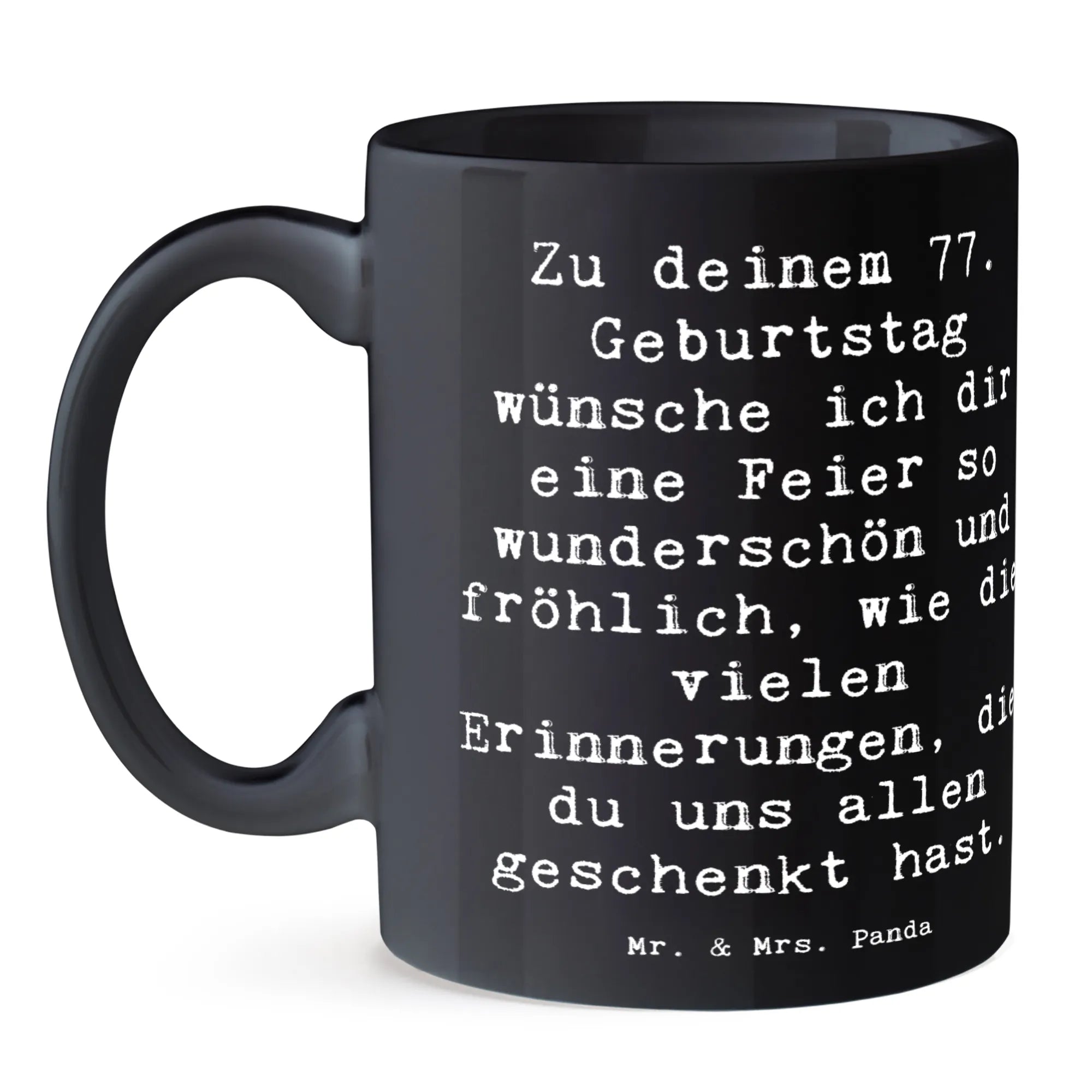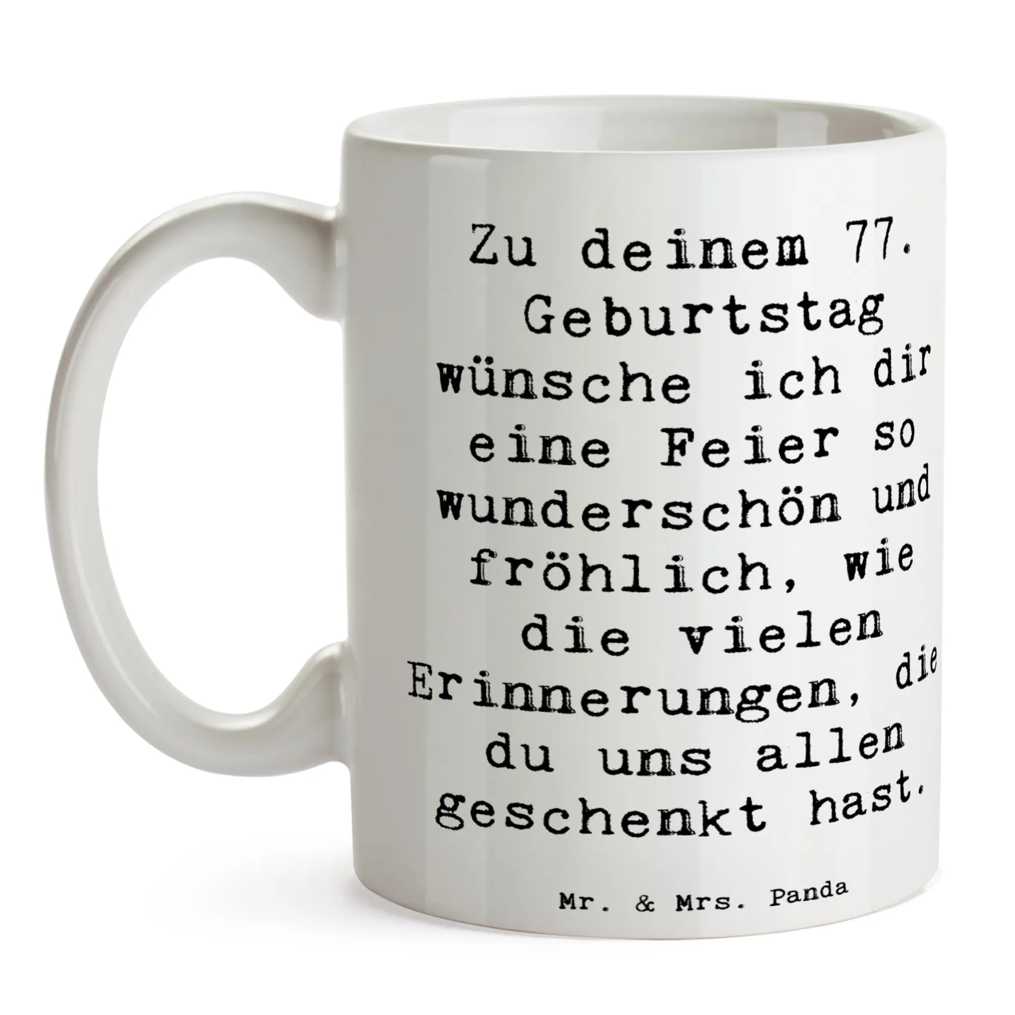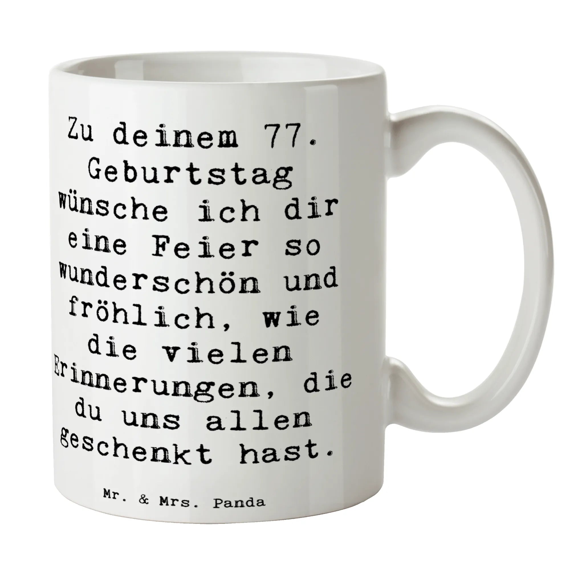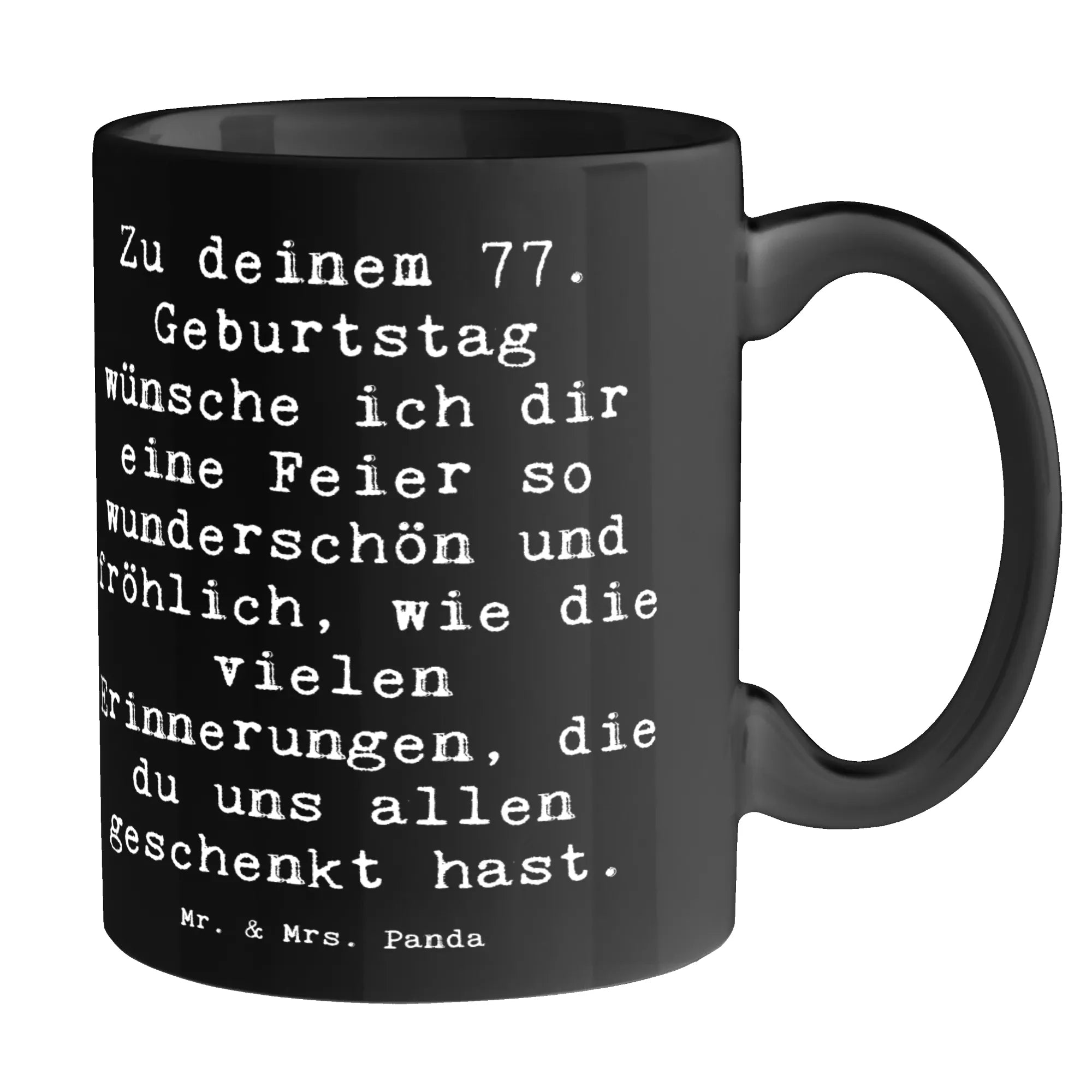 Die Tasse zum 77. Geburtstag von Mr. & Mrs. Panda ist das perfekte Geschenk für all diejenigen, die diesen besonderen Tag gebührend feiern möchten!