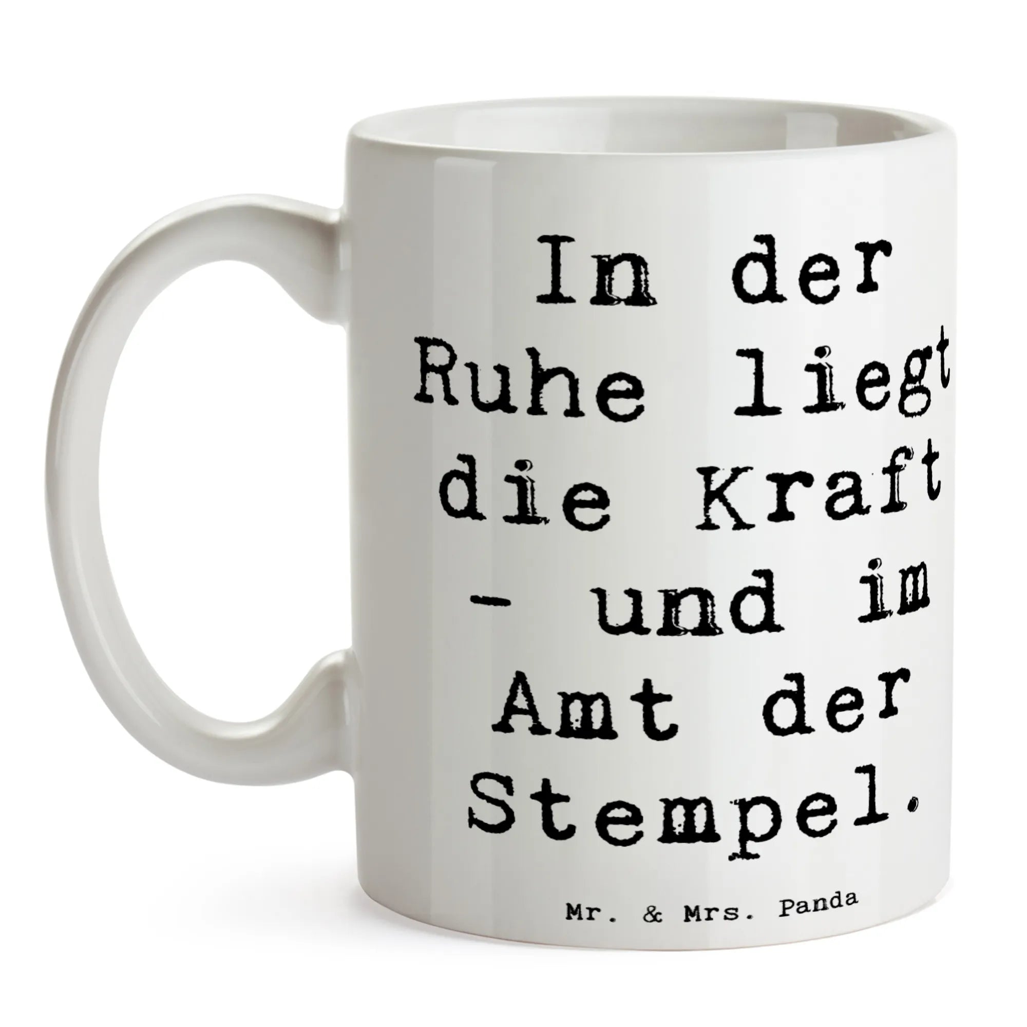 Mit einem zarten Hintergrund in Lavendeltraum und dem Spruch 'In der Ruhe liegt die Kraft - und im Amt der Stempel.' bringt sie eine Portion gute Laune in jeden Büro-Alltag. Egal, ob als Kaffeetasse oder Teetasse, sie lässt sich perfekt für Deine Lieblingsgetränke nutzen. Die Tasse fasst bis zu 325 ml und ist zudem mikrowellen- und spülmaschinenfest, sodass sie praktisch und einfach im Alltag zu handhaben ist.